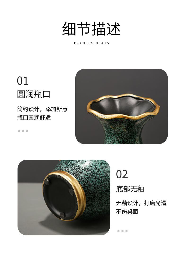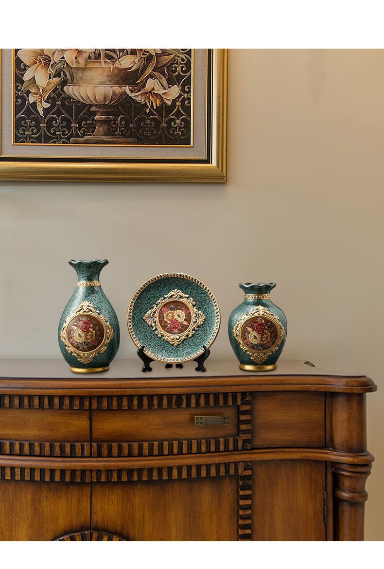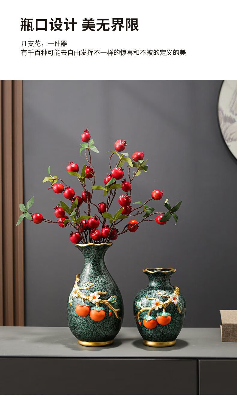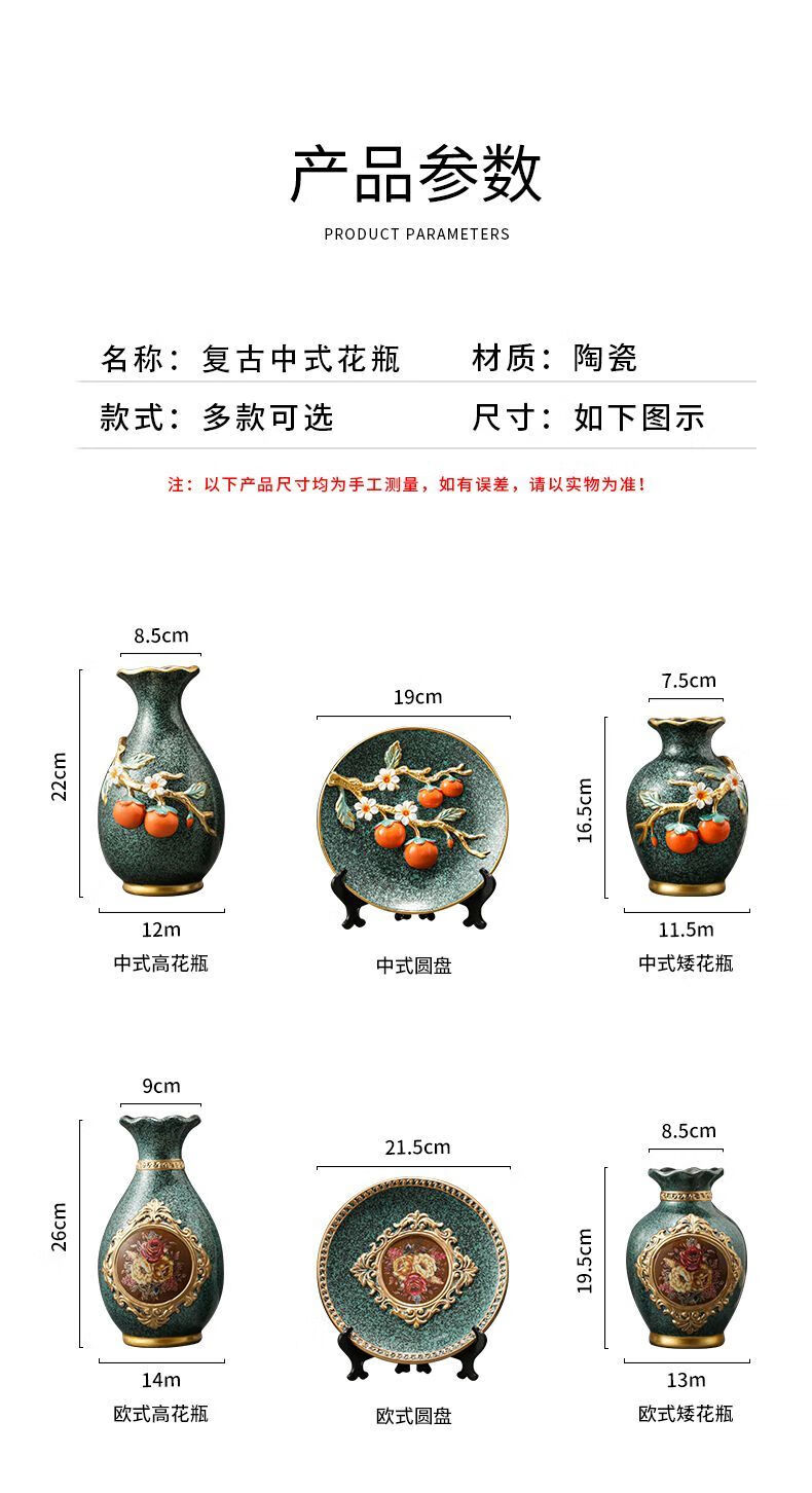 OYKTN新中式养真花陶瓷花瓶三件套立体事事如意客厅玄关电视柜酒柜摆件 A5花瓶大小一对-不含盘