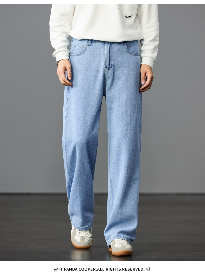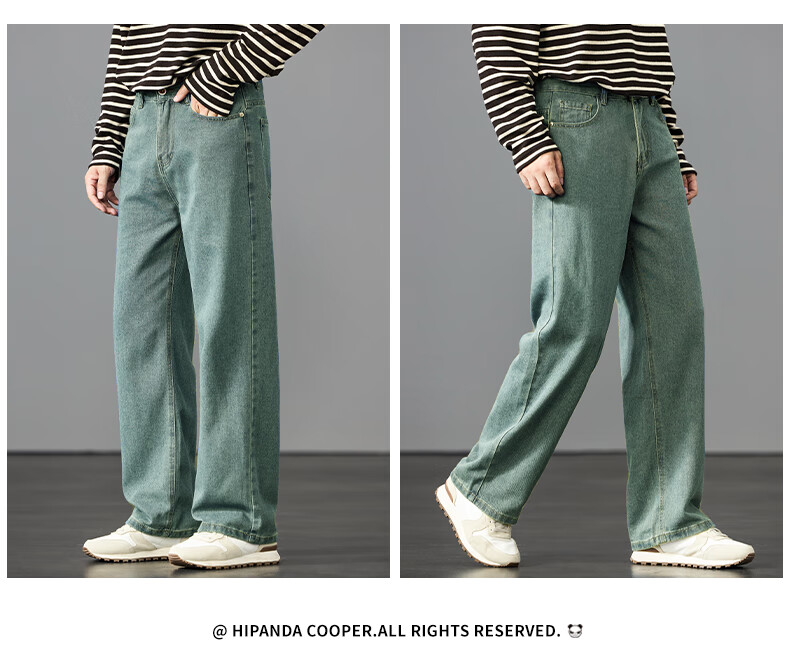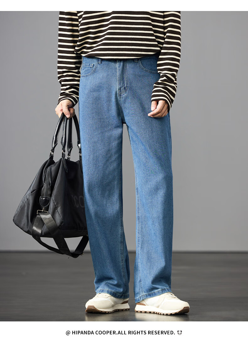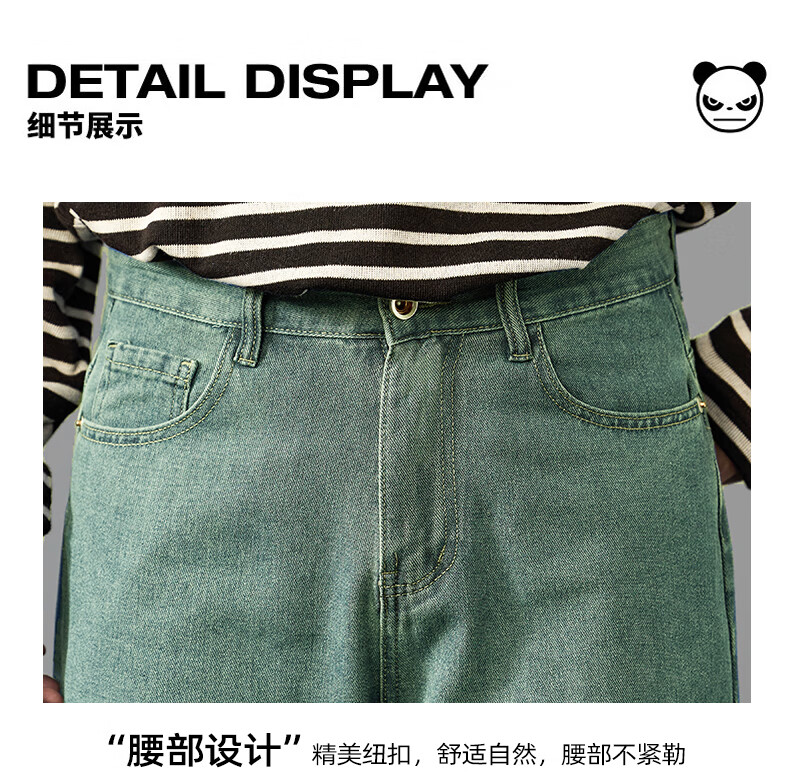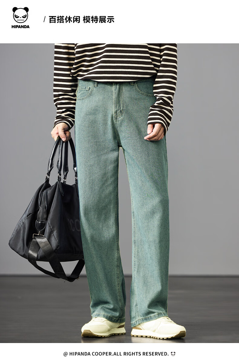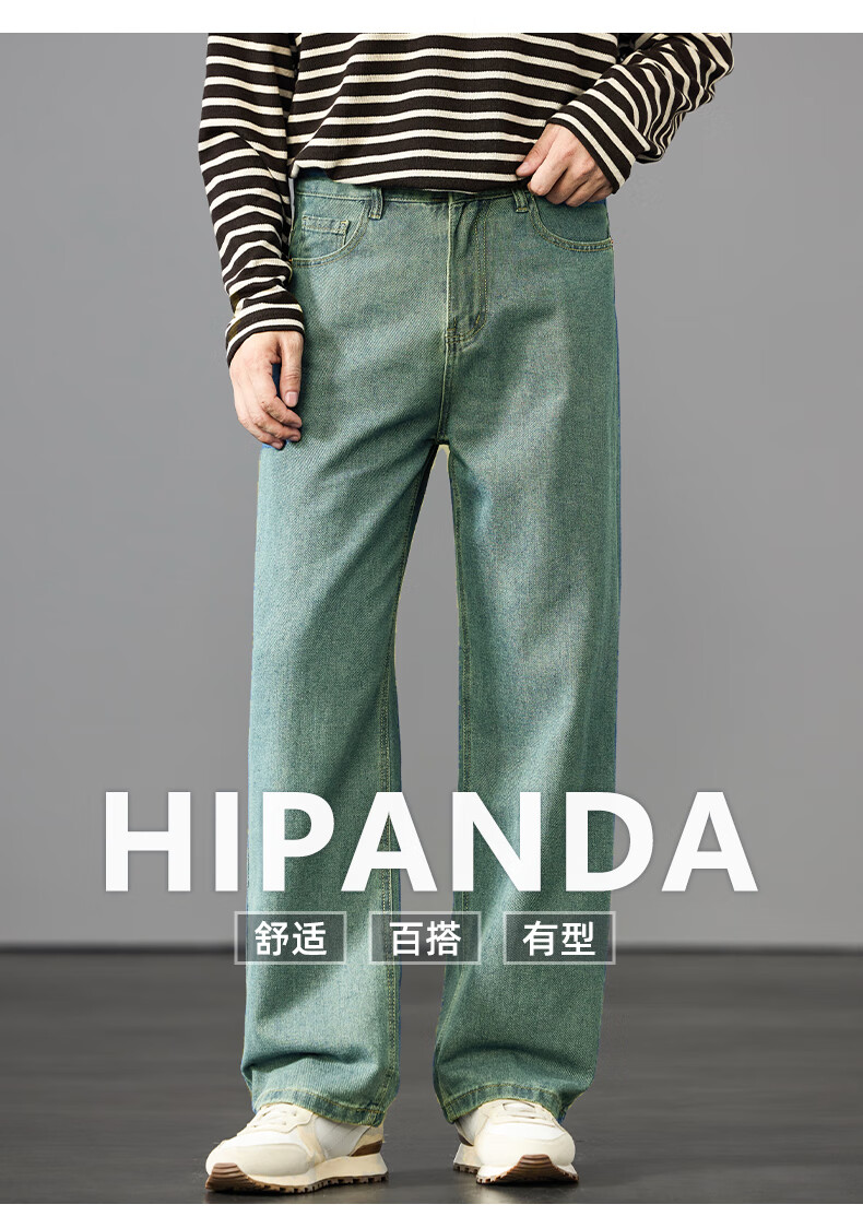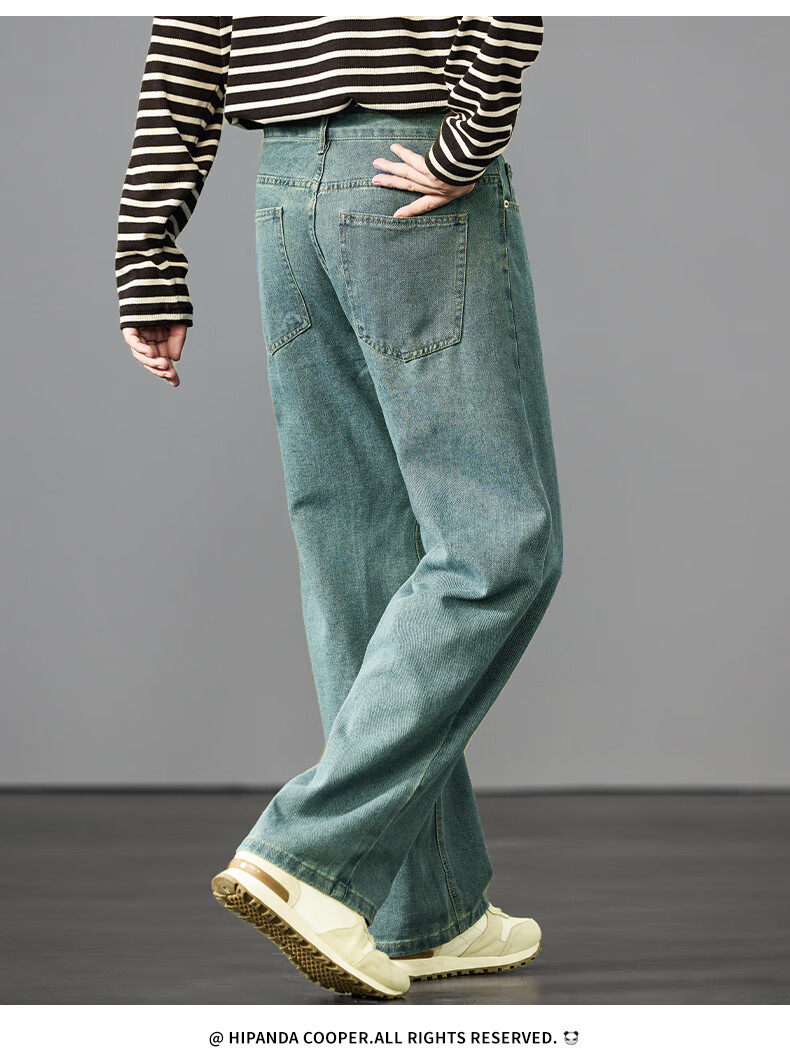 HIPANDA你好熊猫牛仔裤男202年秋冬新款宽松直筒潮流休闲裤男款百搭长裤 复古色 M