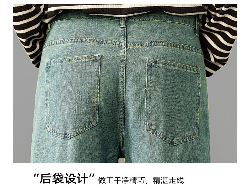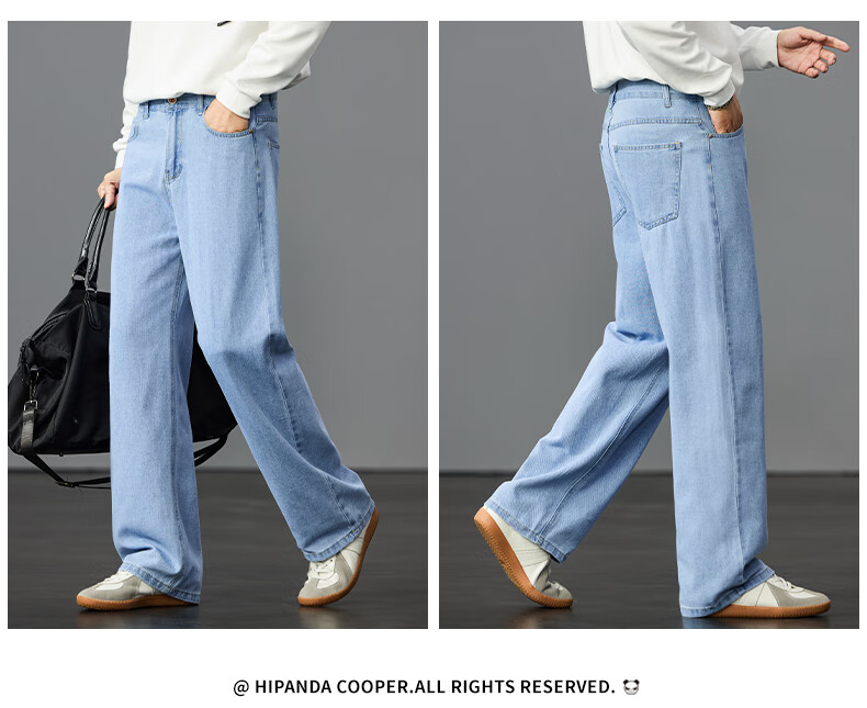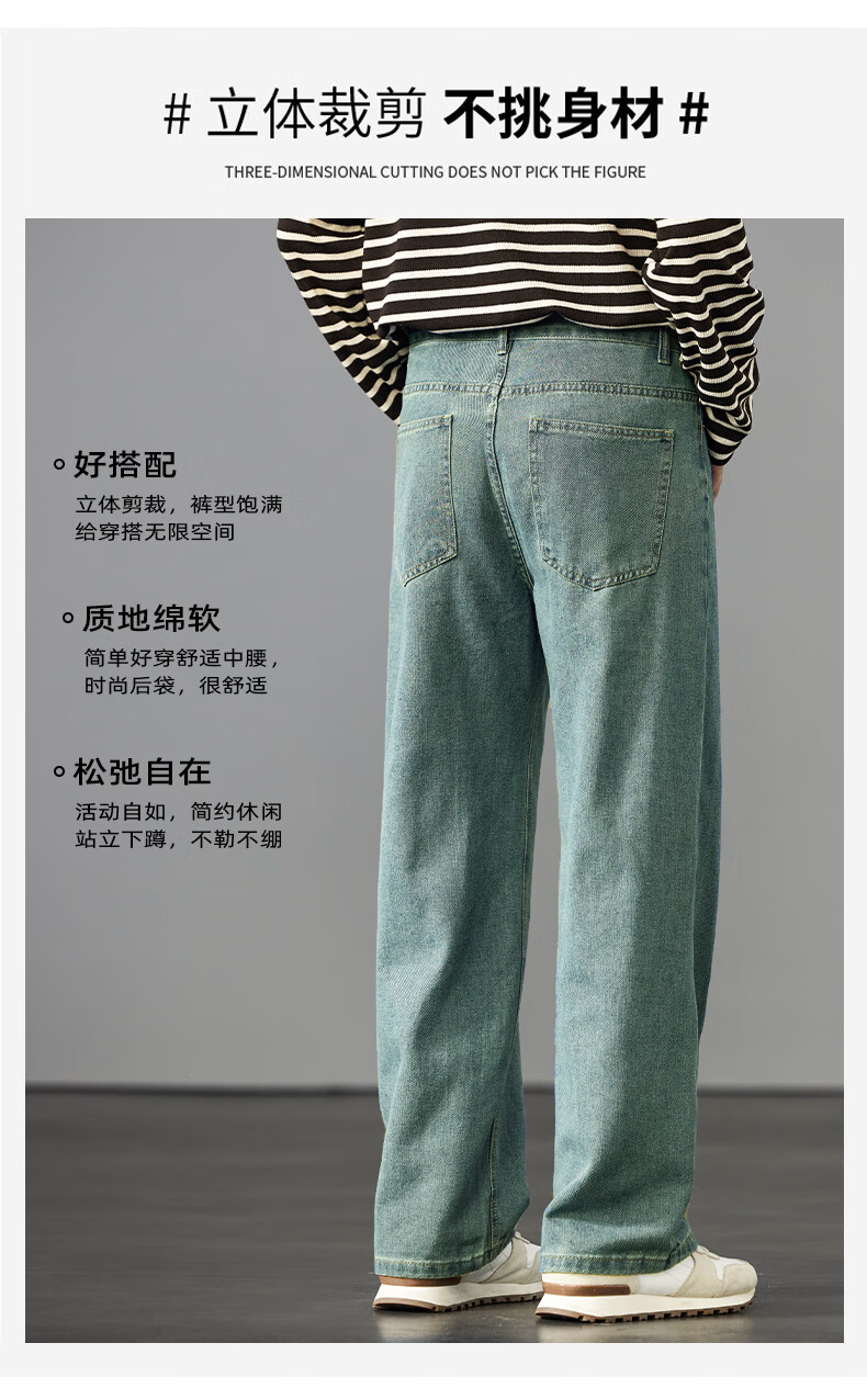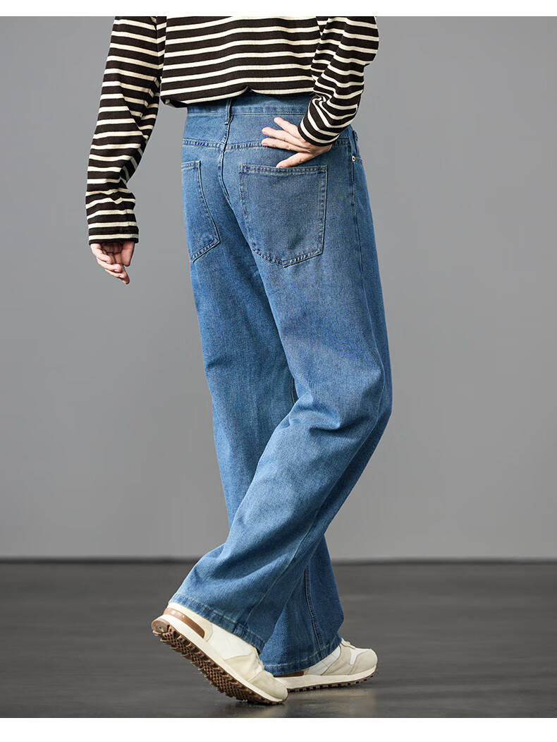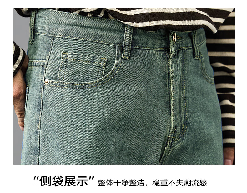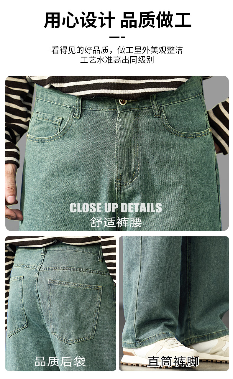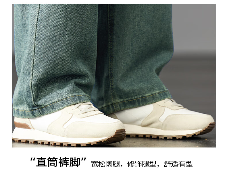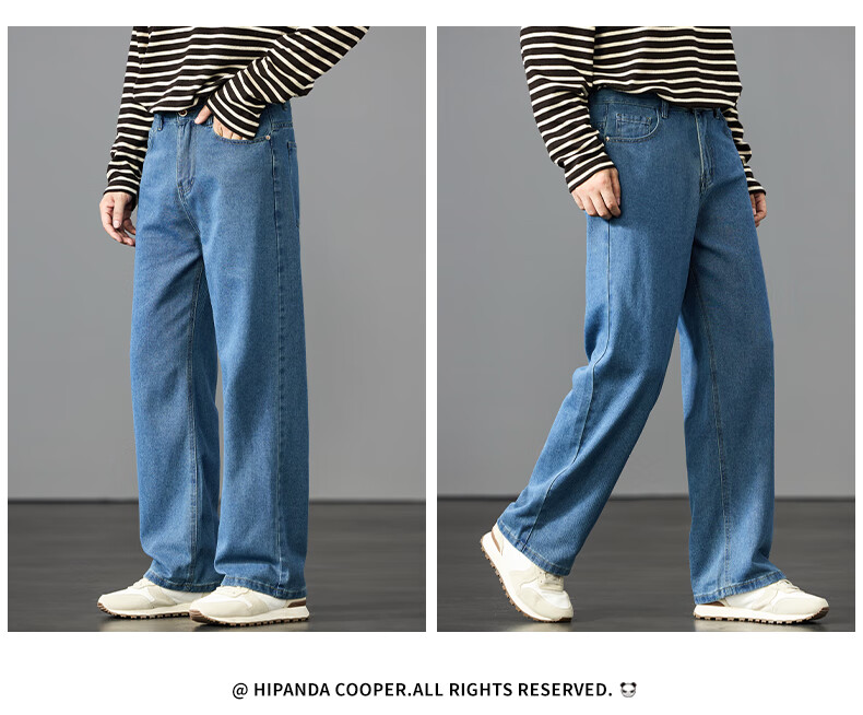 HIPANDA你好熊猫牛仔裤男202年秋冬新款宽松直筒潮流休闲裤男款百搭长裤 复古色 M