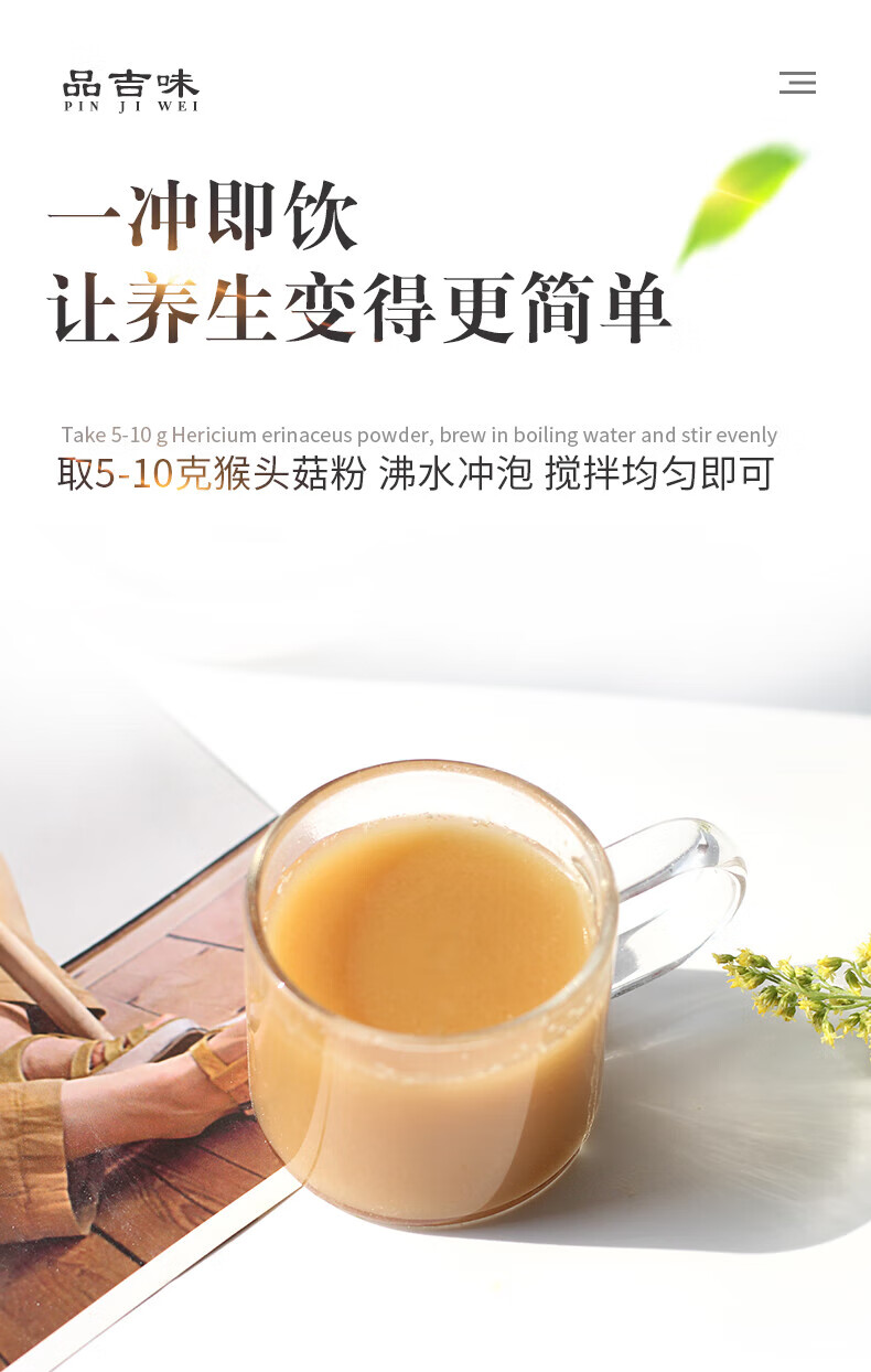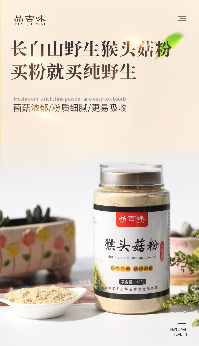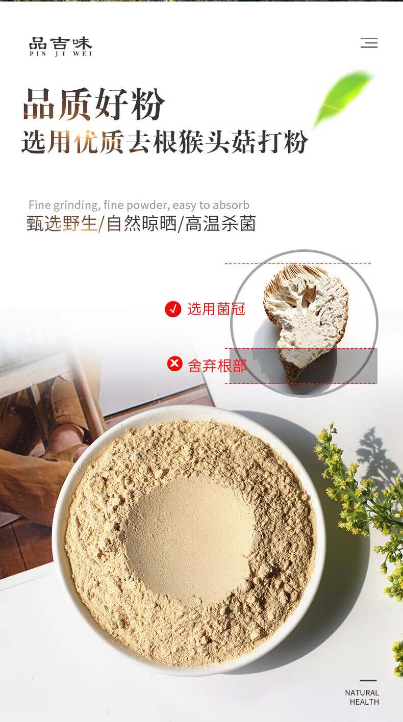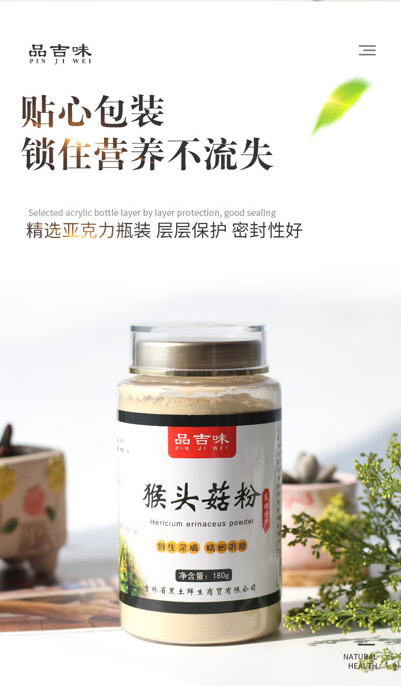 品吉味野生猴头菇纯粉 180g 长白山猴头菇 30天装 养胃护胃早餐米稀食品 野生猴头菇粉1罐体验【推荐3罐】