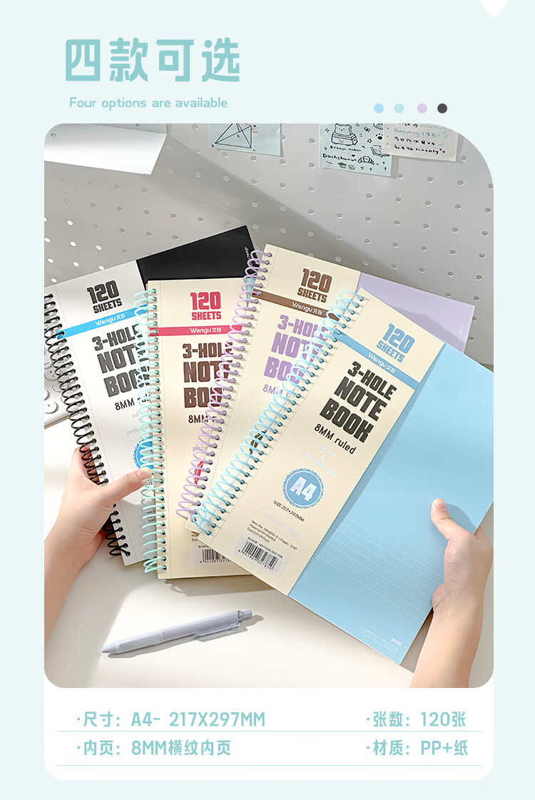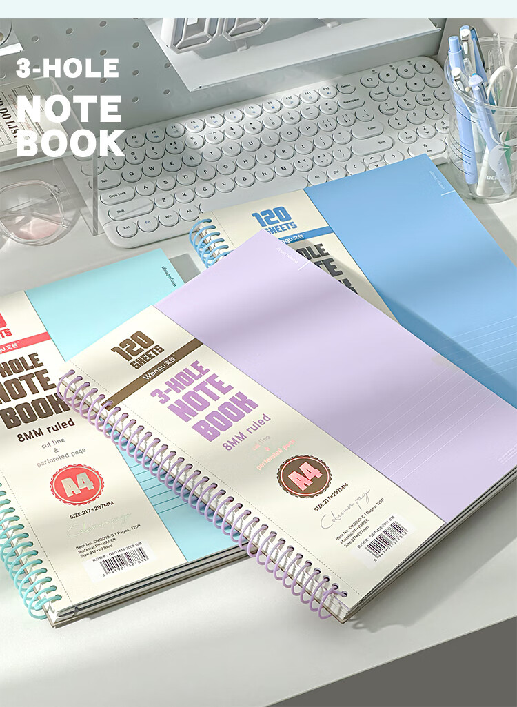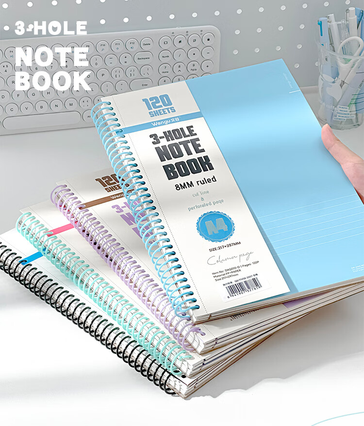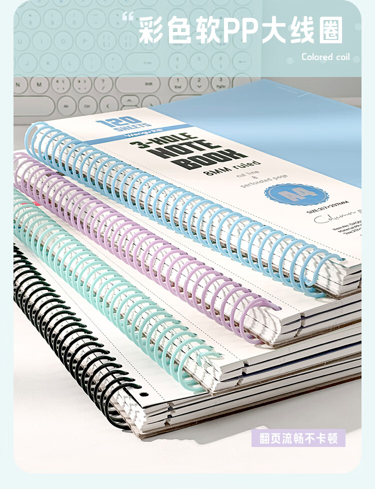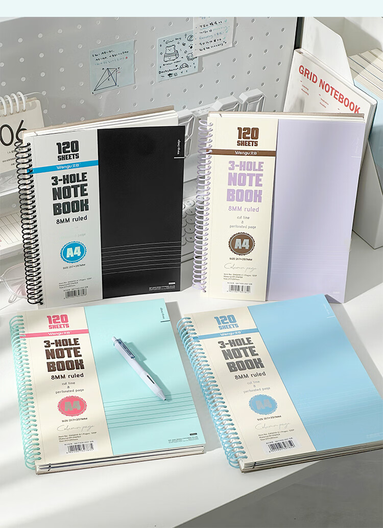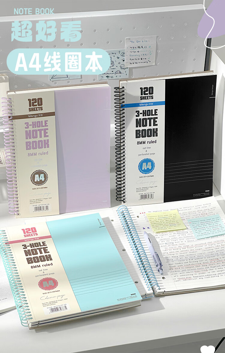 文谷(Wengu)A4-120张分类PP线圈美式本大容量高颜值加厚线圈本可撕线大本高中大学生横线笔记本子 DXQ010紫
