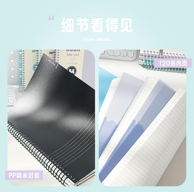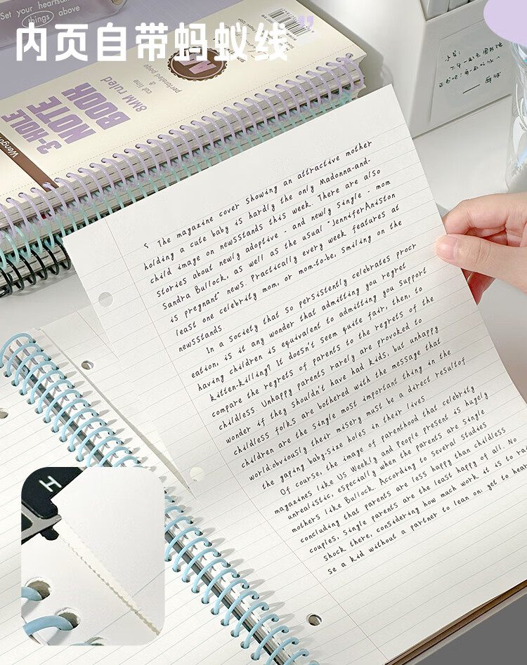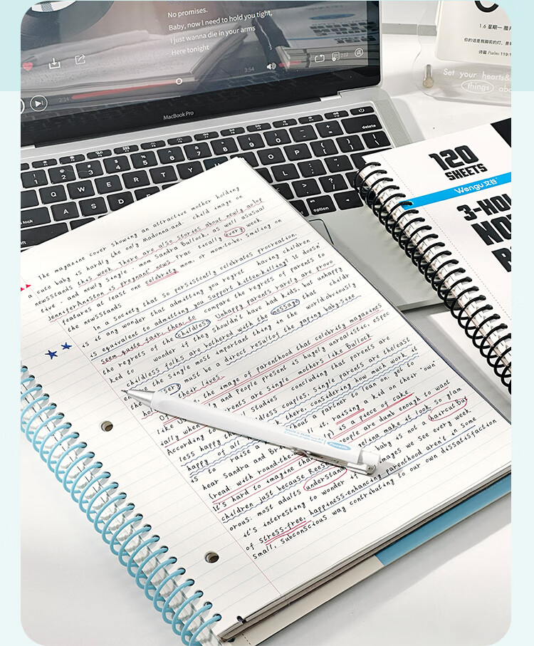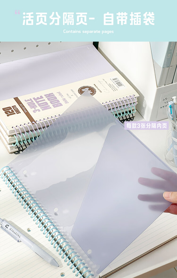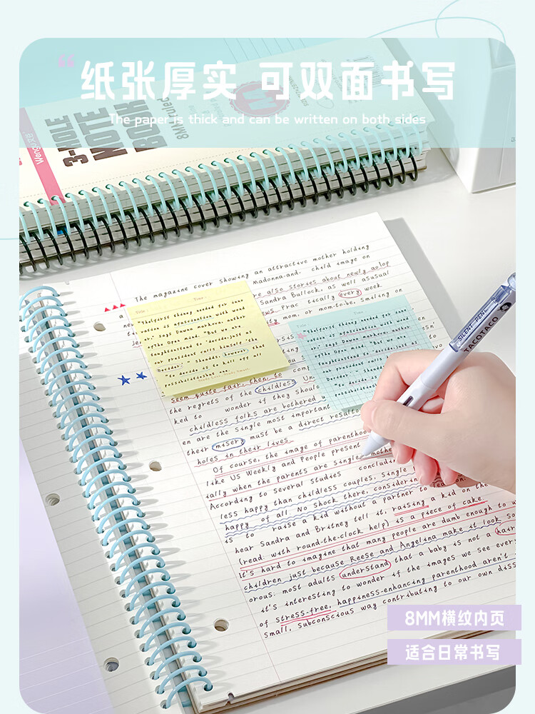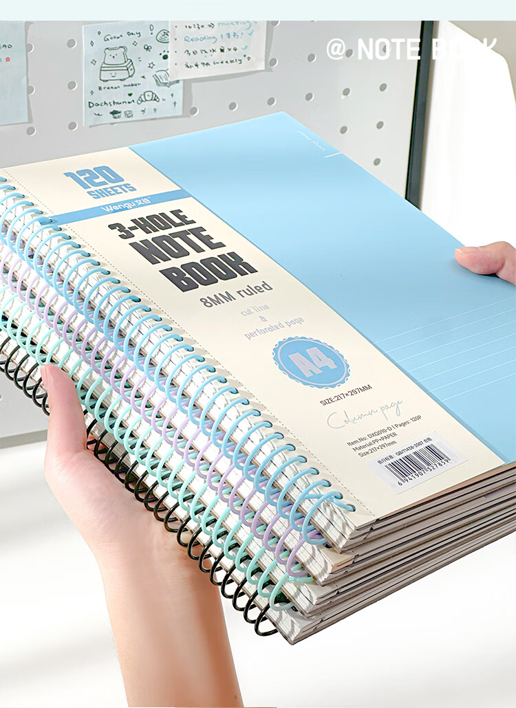 文谷(Wengu)A4-120张分类PP线圈美式本大容量高颜值加厚线圈本可撕线大本高中大学生横线笔记本子 DXQ010紫