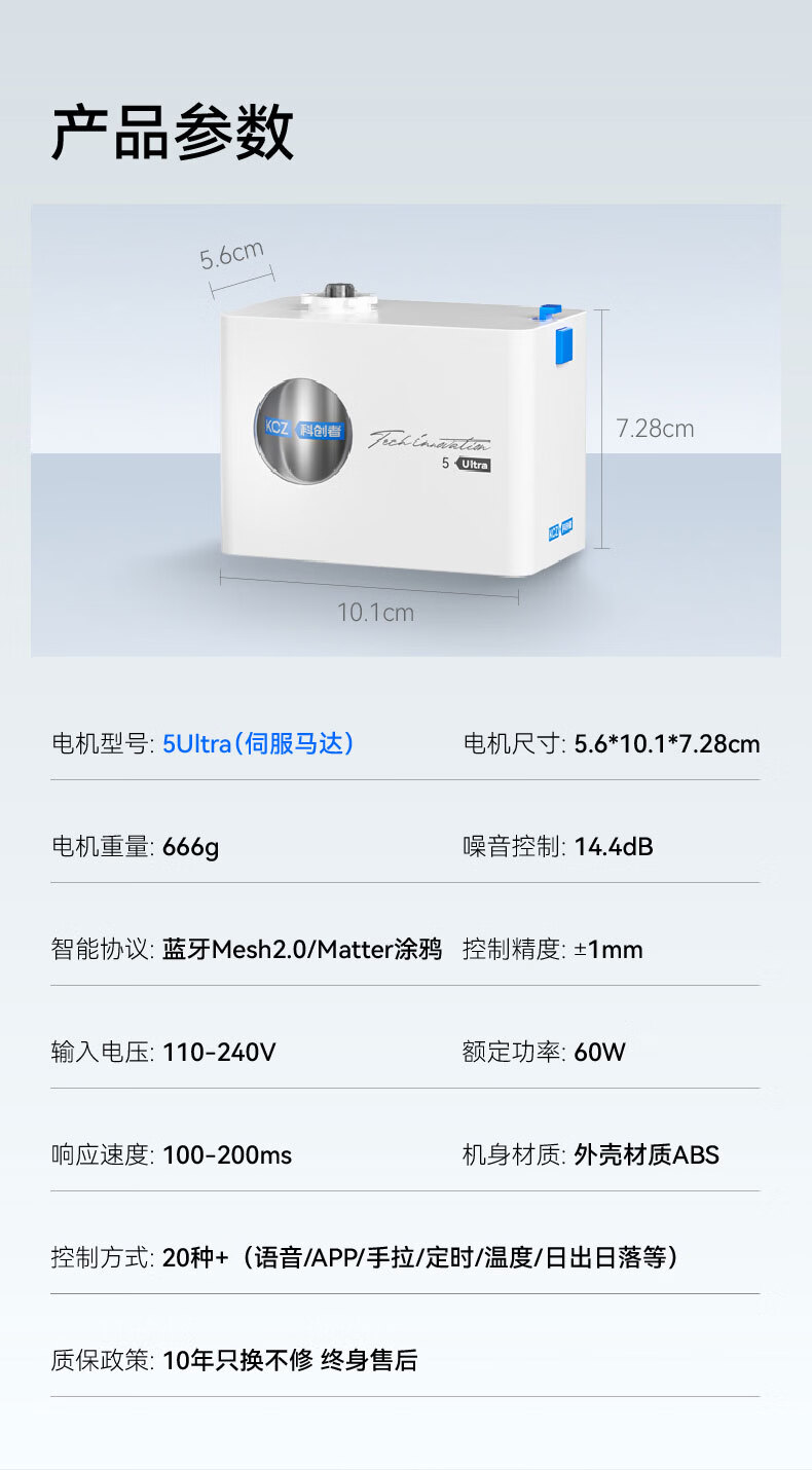 科创者5UItra智静机皇 电动窗帘轨道 智能全自动2026大窗伺服电机马达 5UItra伺服电机+直轨 【包安装】2.0米内