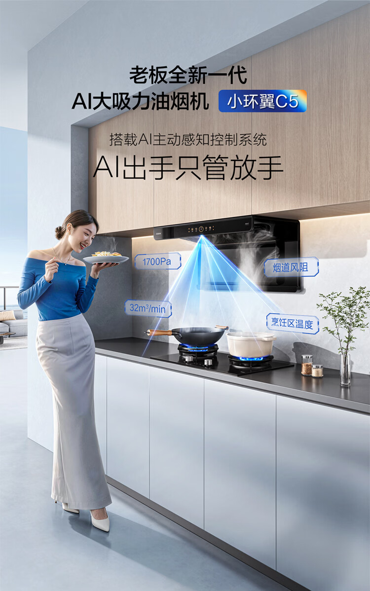 老板小环翼C5行业天花板32大吸力顶侧双吸抽吸排油烟机家用上门安装一级能效静音以旧换新政府补贴