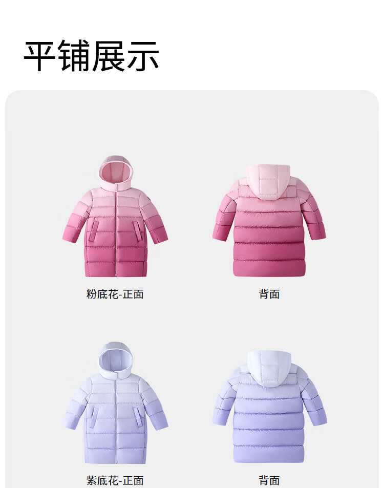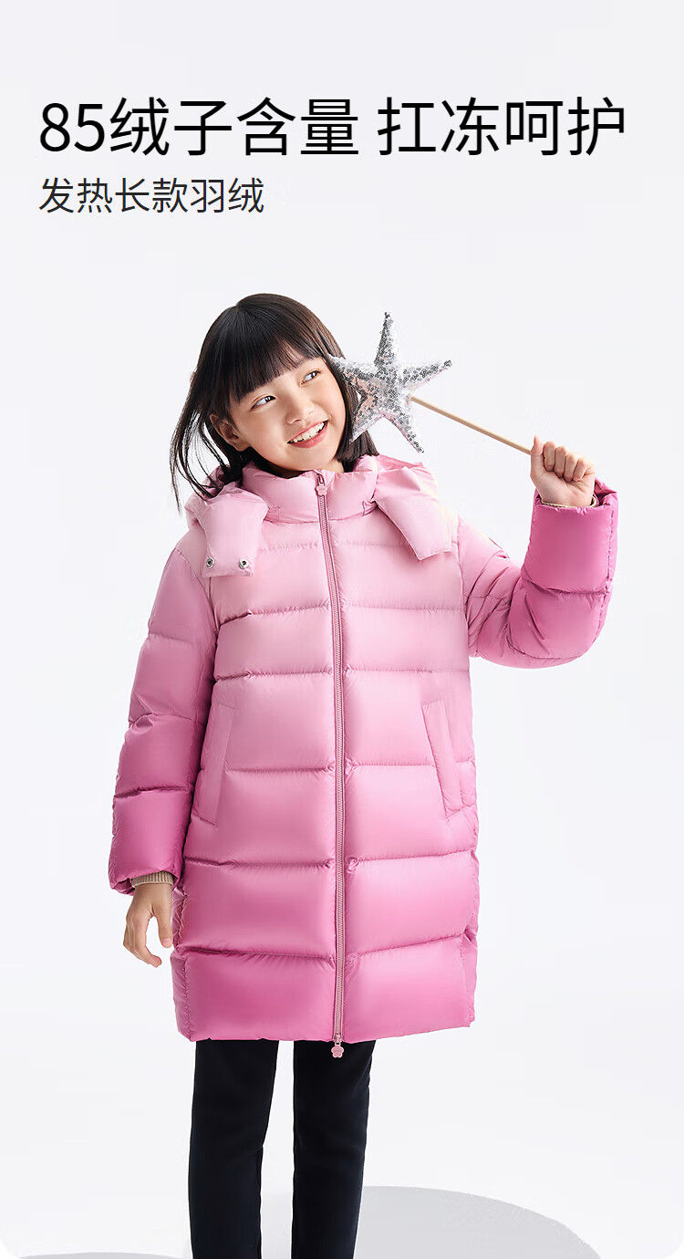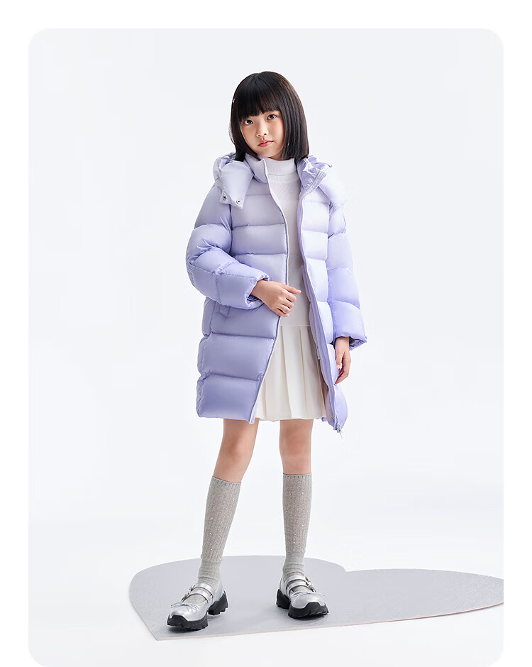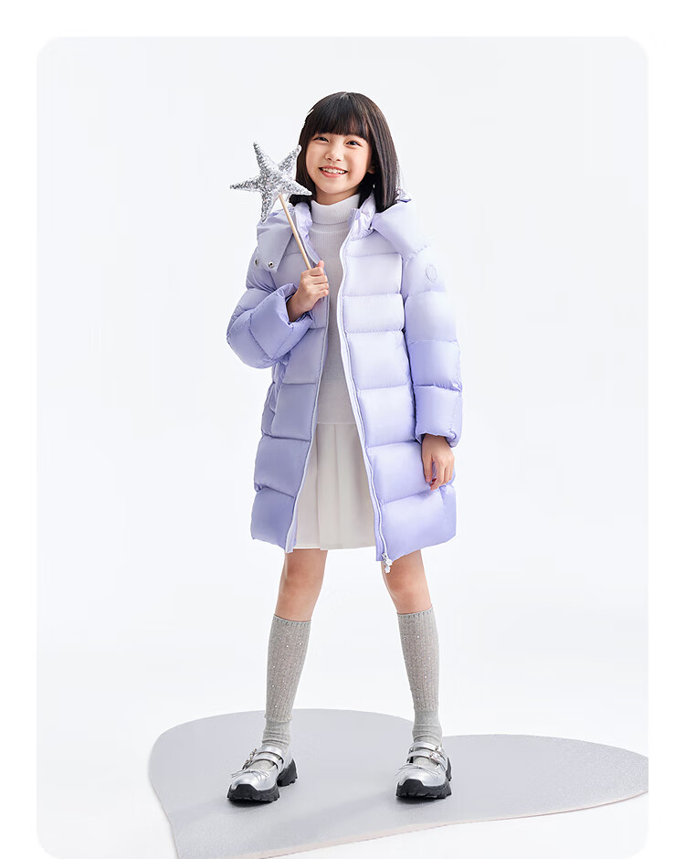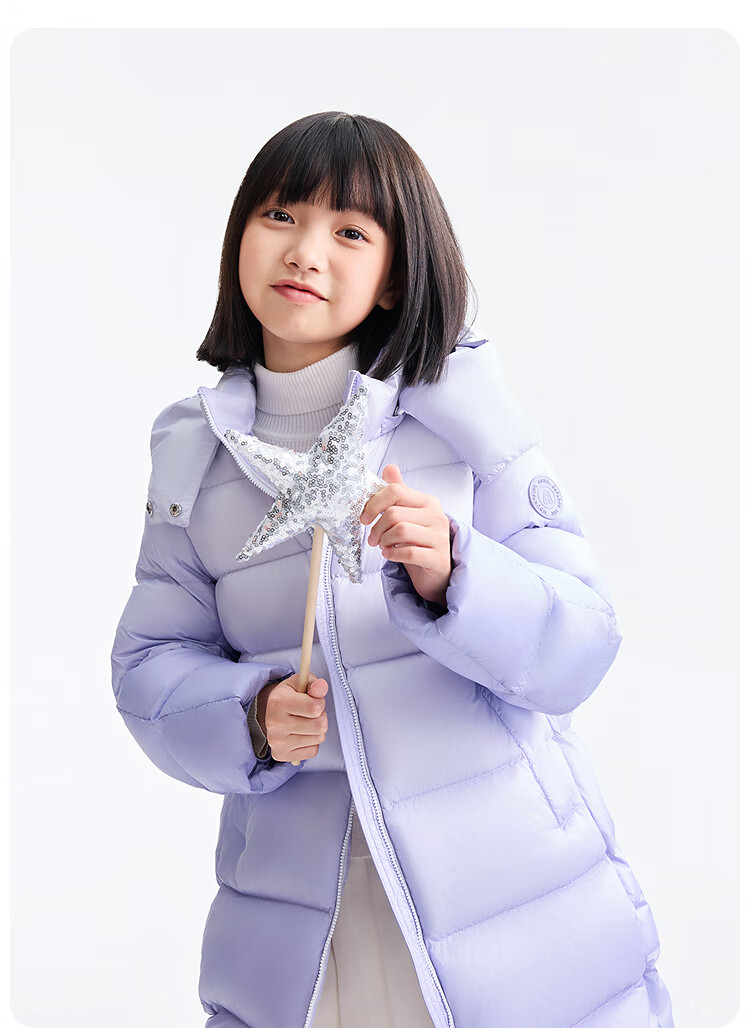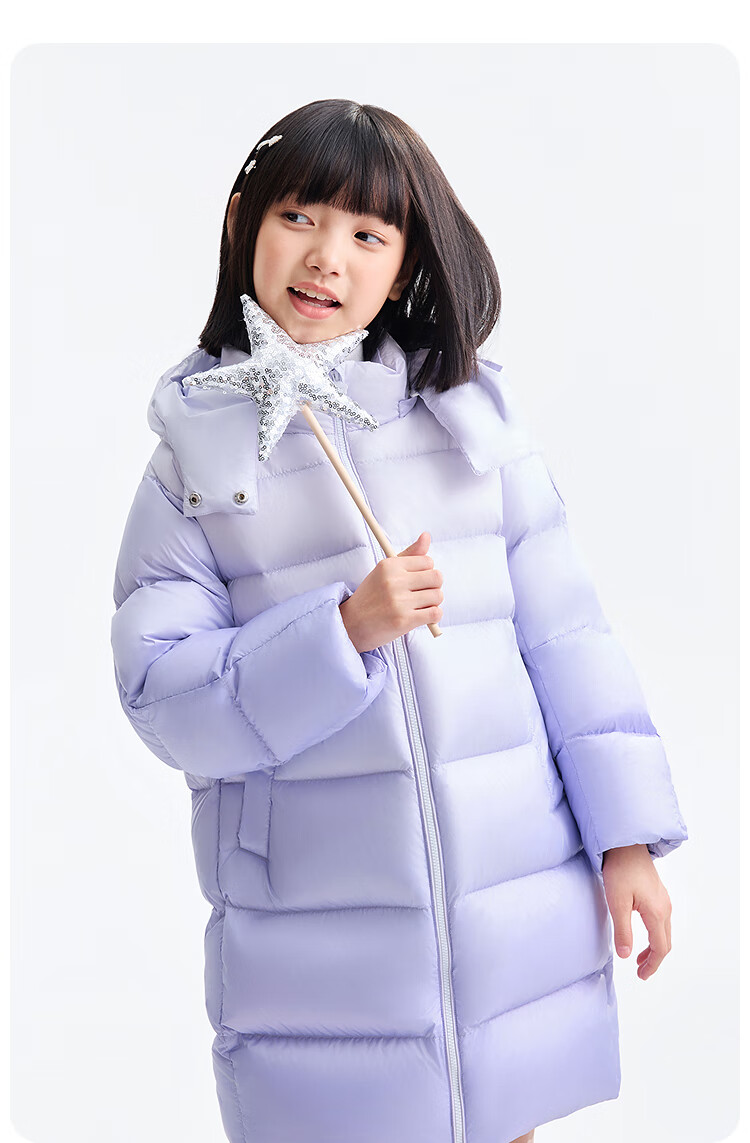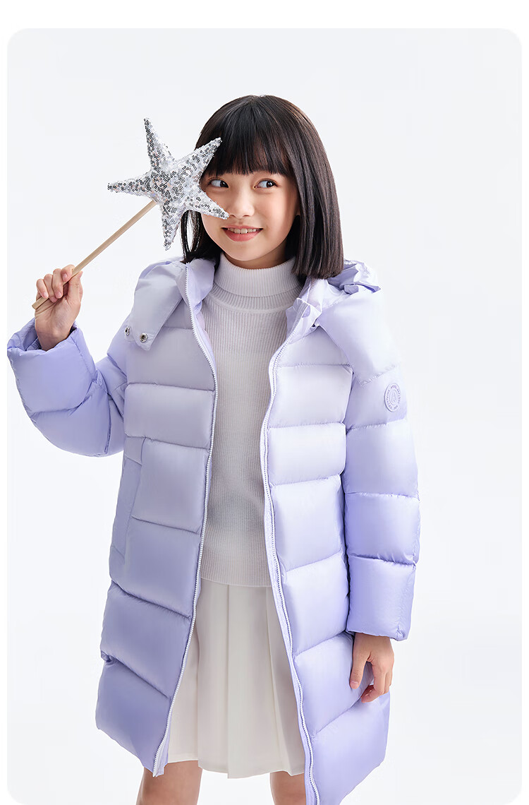 安奈儿(Annil)童装女童长款羽绒服2025冬新款加厚发热 紫底花 140