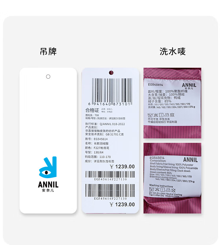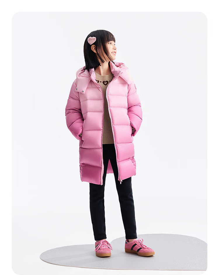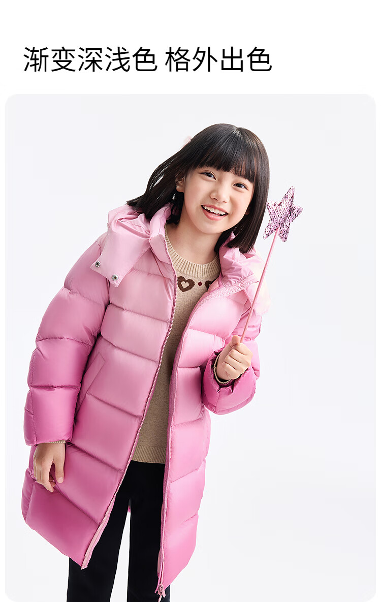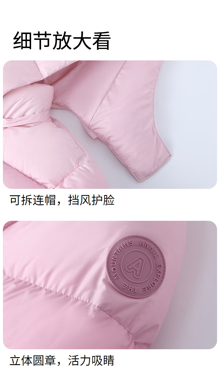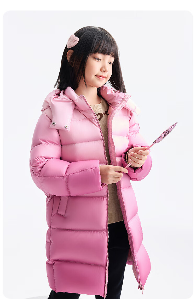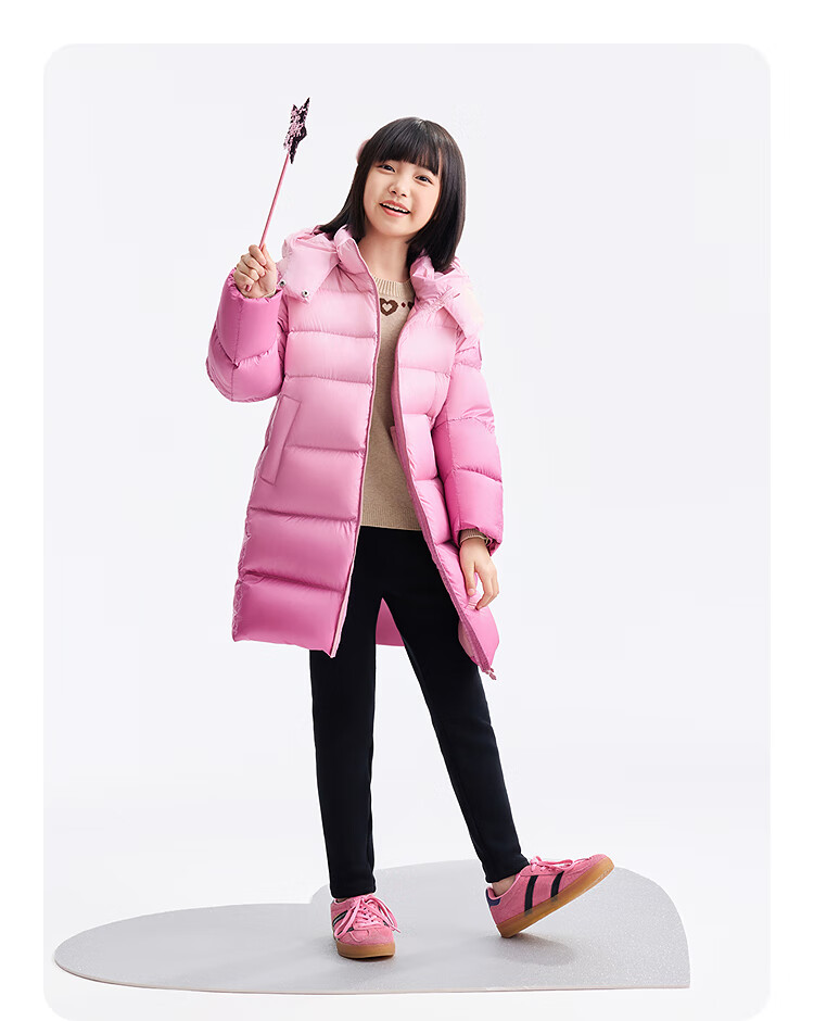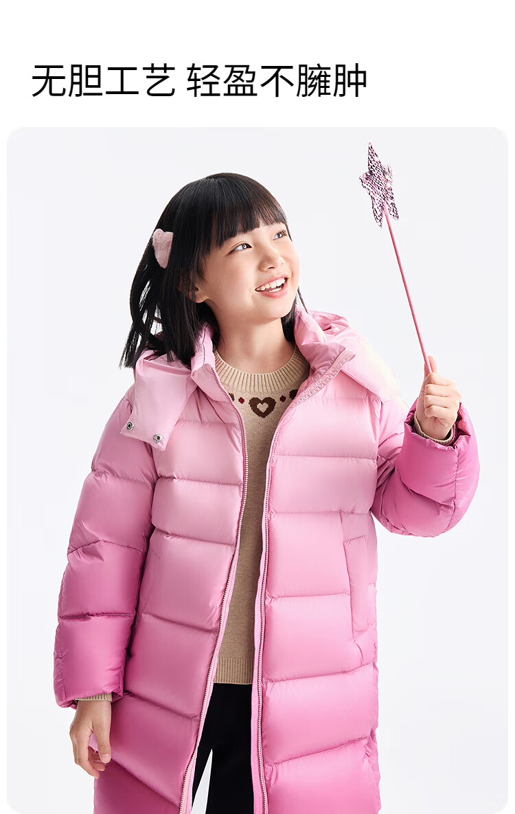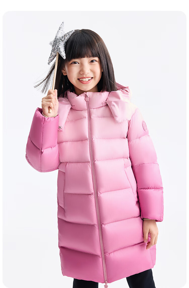 安奈儿(Annil)童装女童长款羽绒服2025冬新款加厚发热 紫底花 140
