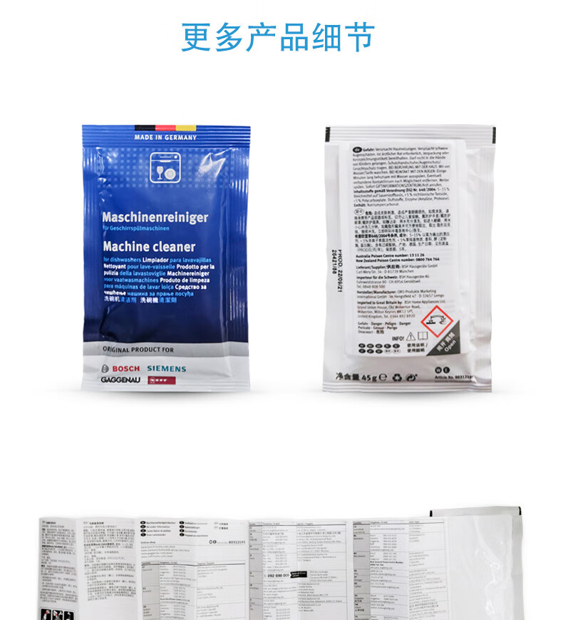 西门子(SIEMENS)洗碗机清洁剂 机体清洁剂专用清洗剂去污除垢除味 德国原装进口 洗碗机清洁剂×1