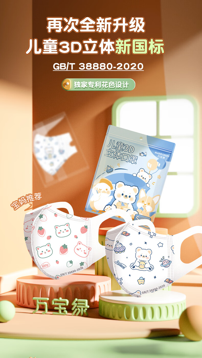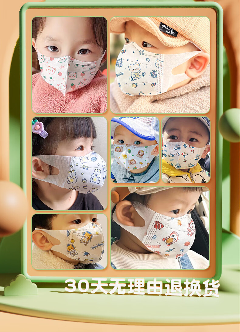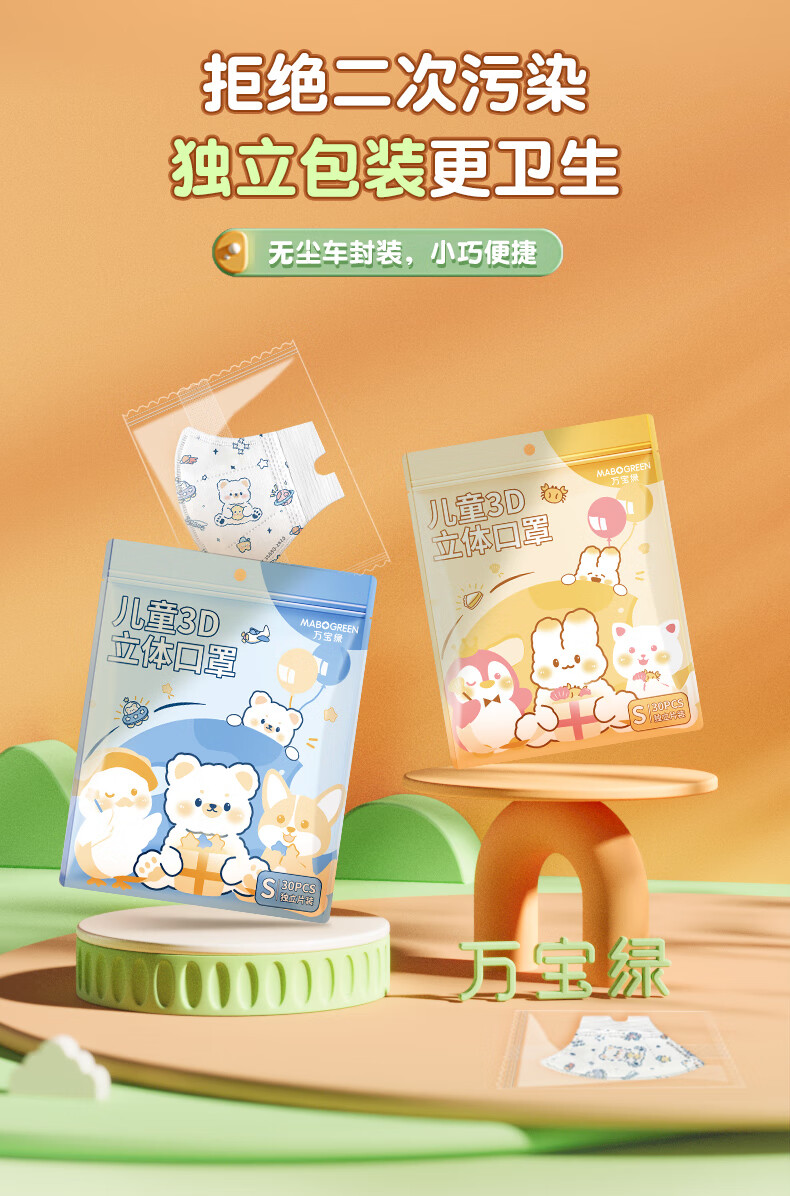 万宝绿 防护儿童口罩3D立体6-12岁透气一次性口罩宝宝婴儿6-12个月0-3岁小学生卡通独立包装 【2-4岁防护】女宝*萌宠混搭色 【30片体验装】*独立包装
