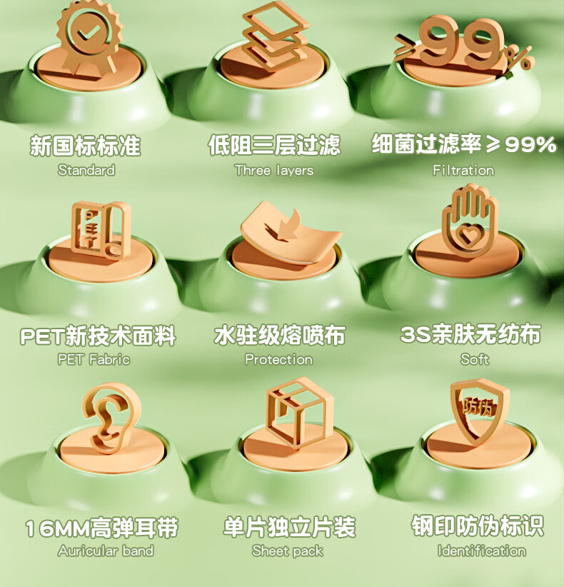 顶格医用外科口罩独立装一次性三层防护过滤成人医疗透气亲肤不勒耳 蓝色 成人款100只【独立装】