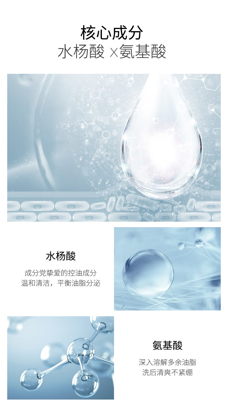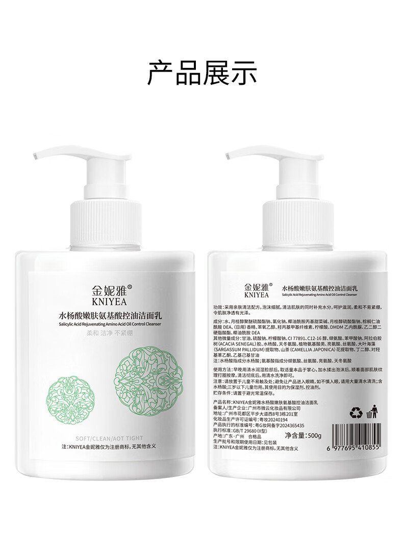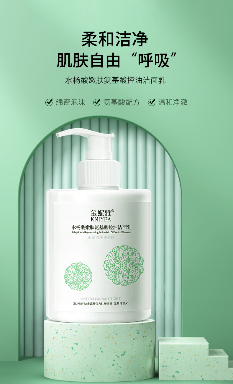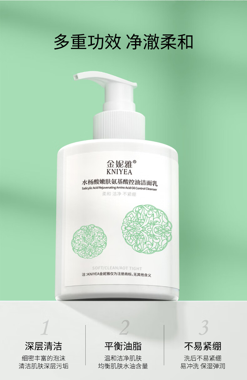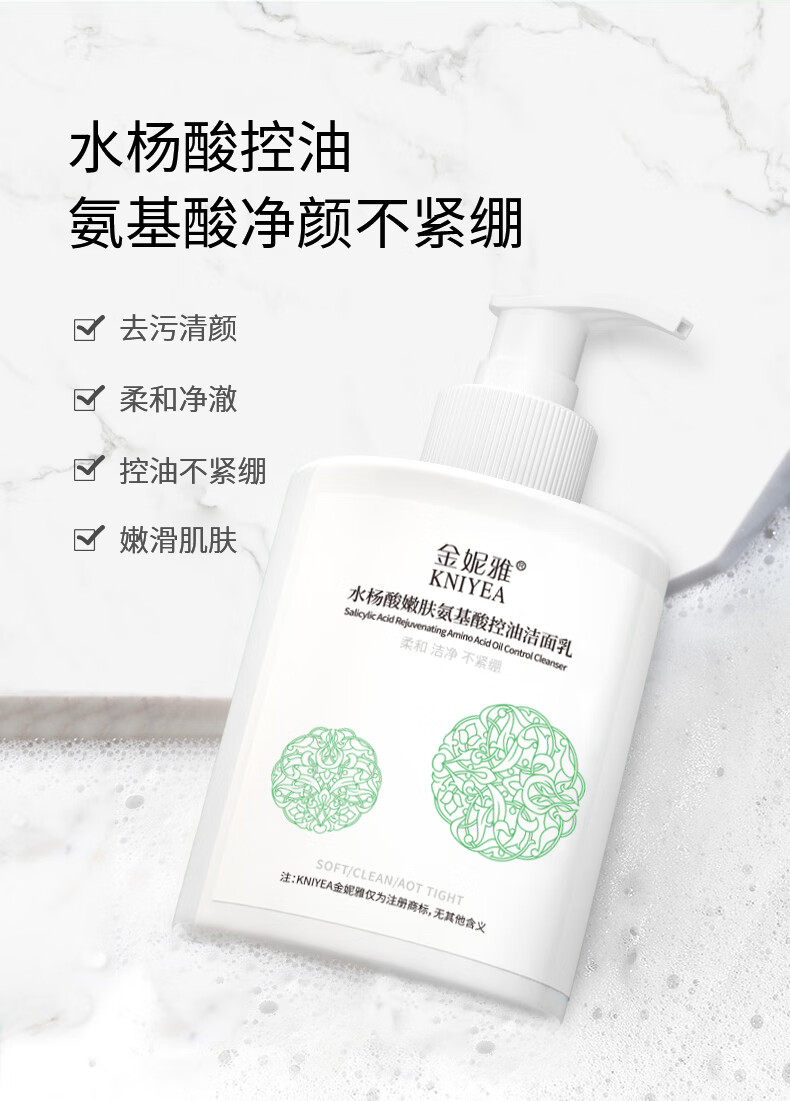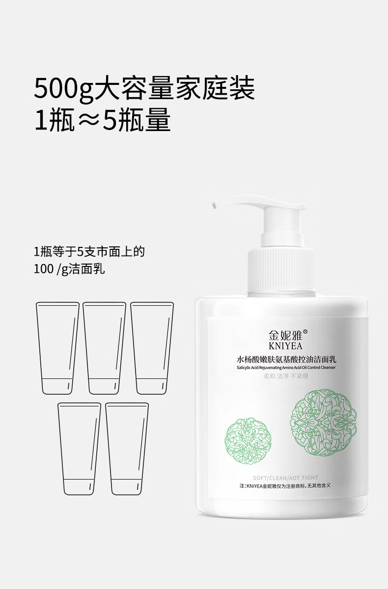 金妮雅水杨酸氨基酸洗面奶男女士温和清洁毛孔补水保湿泡沫洁面乳霜 【拍1发3】清洁氨基酸洗面奶500g