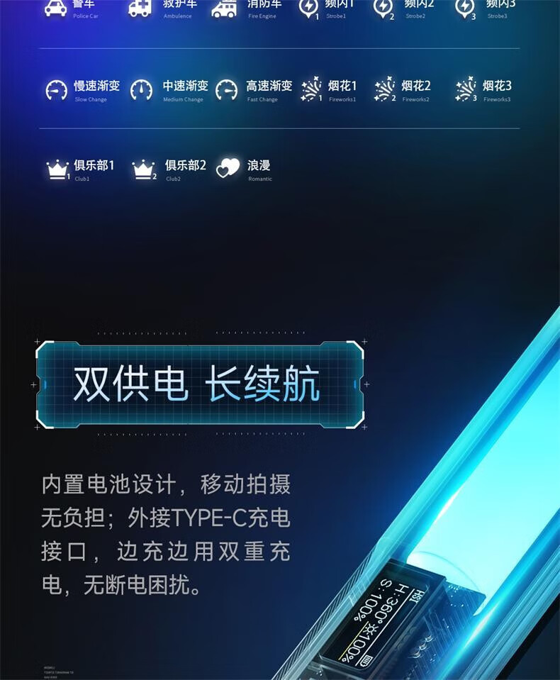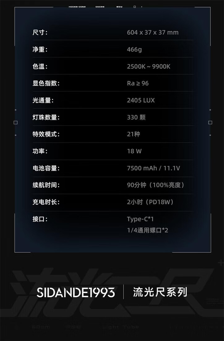 斯丹德(sidande)手持棒灯B600S流光二尺摄影补光灯RGB打光灯拍照柔光灯棒外拍便携vlog拍摄直播间背景氛围 流光四尺 LINK(120厘米*无线遥控) 标配+0.5米灯架