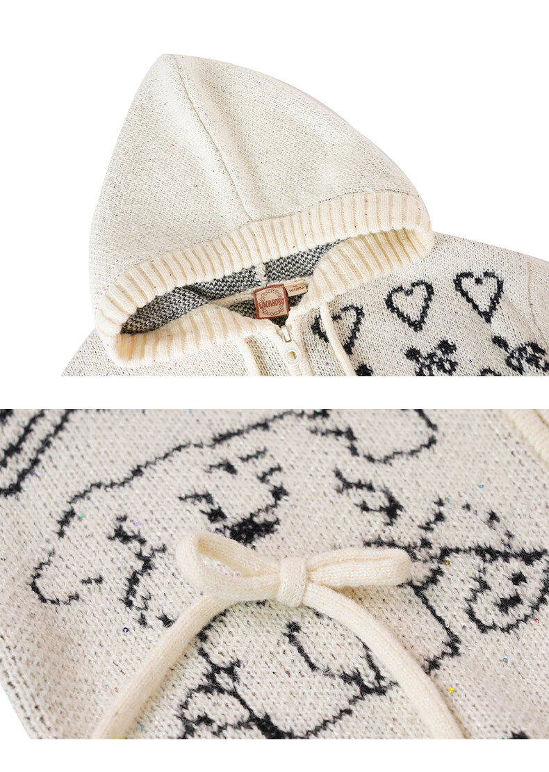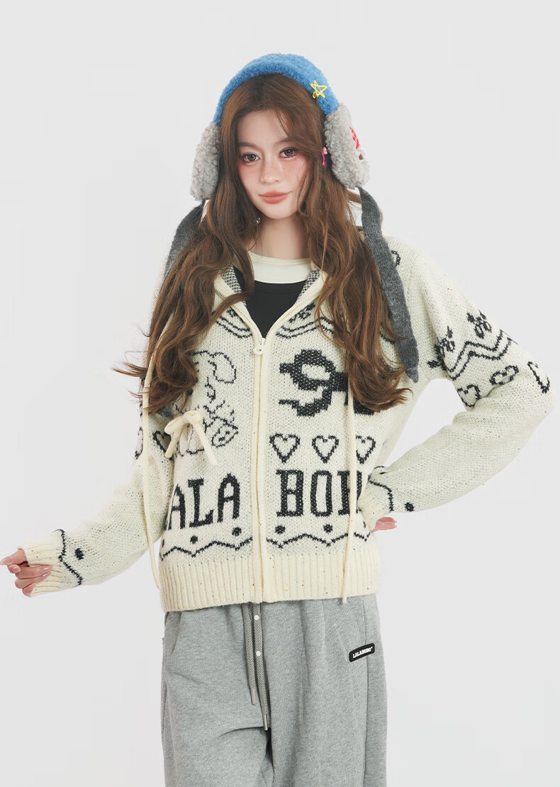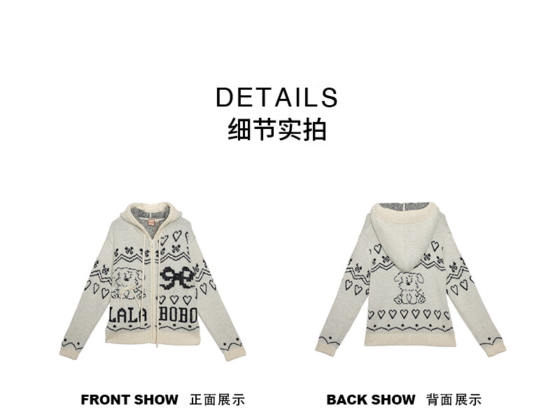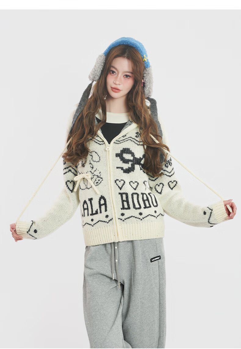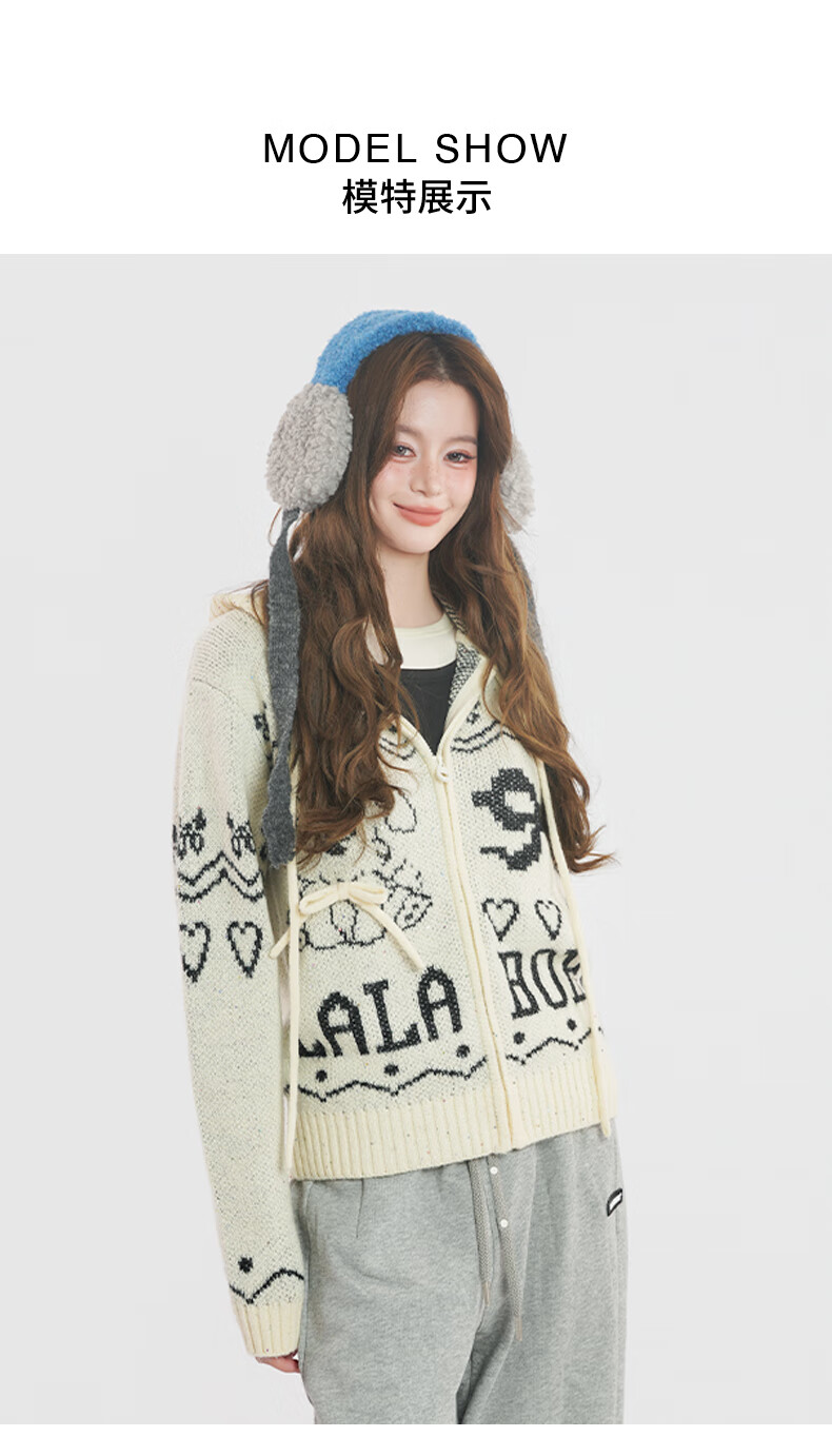 LALABOBO【商场同款】毛织开衫25年秋冬新潮原创针织慵懒风保暖女装外套 米白 M