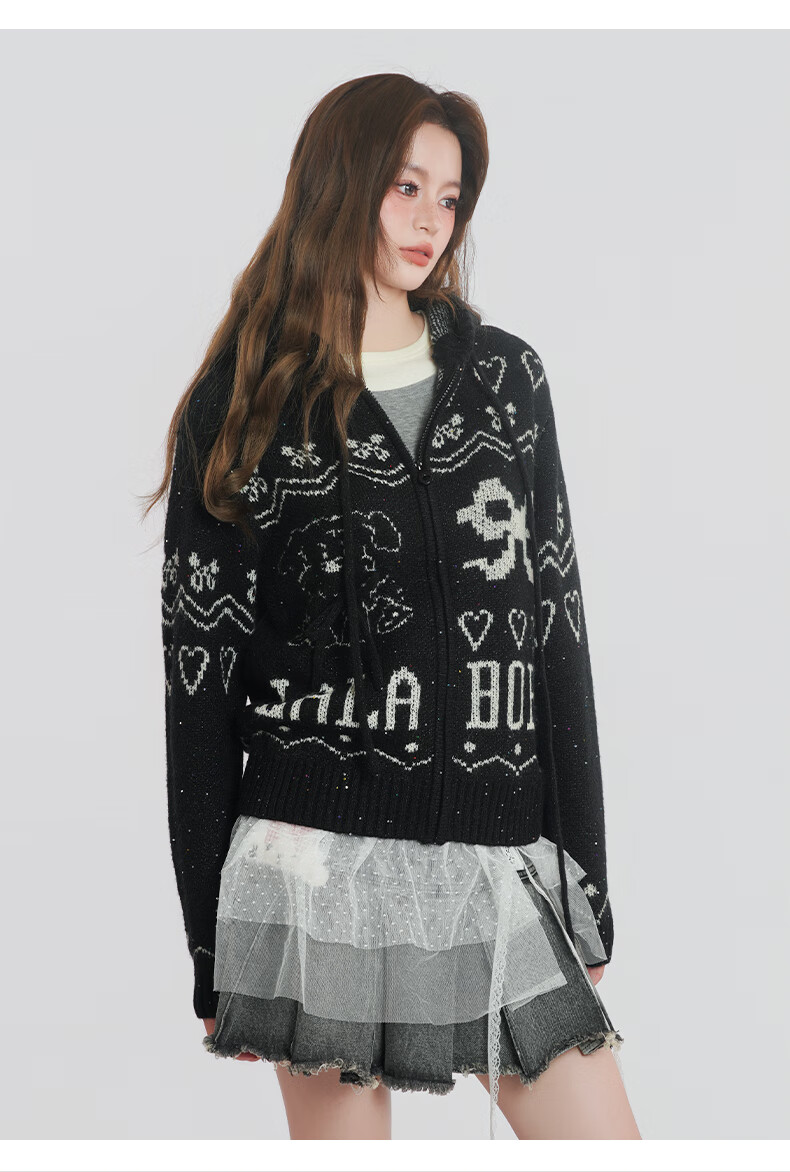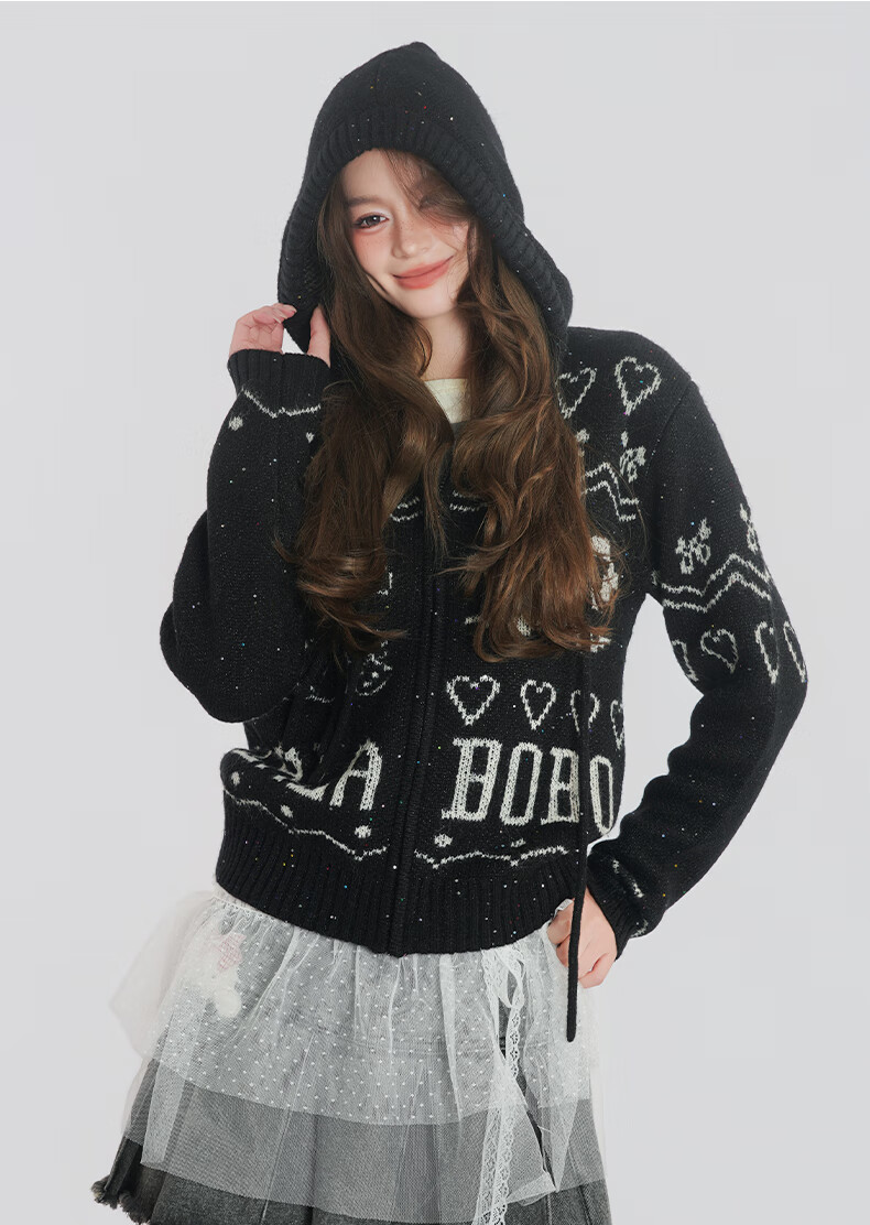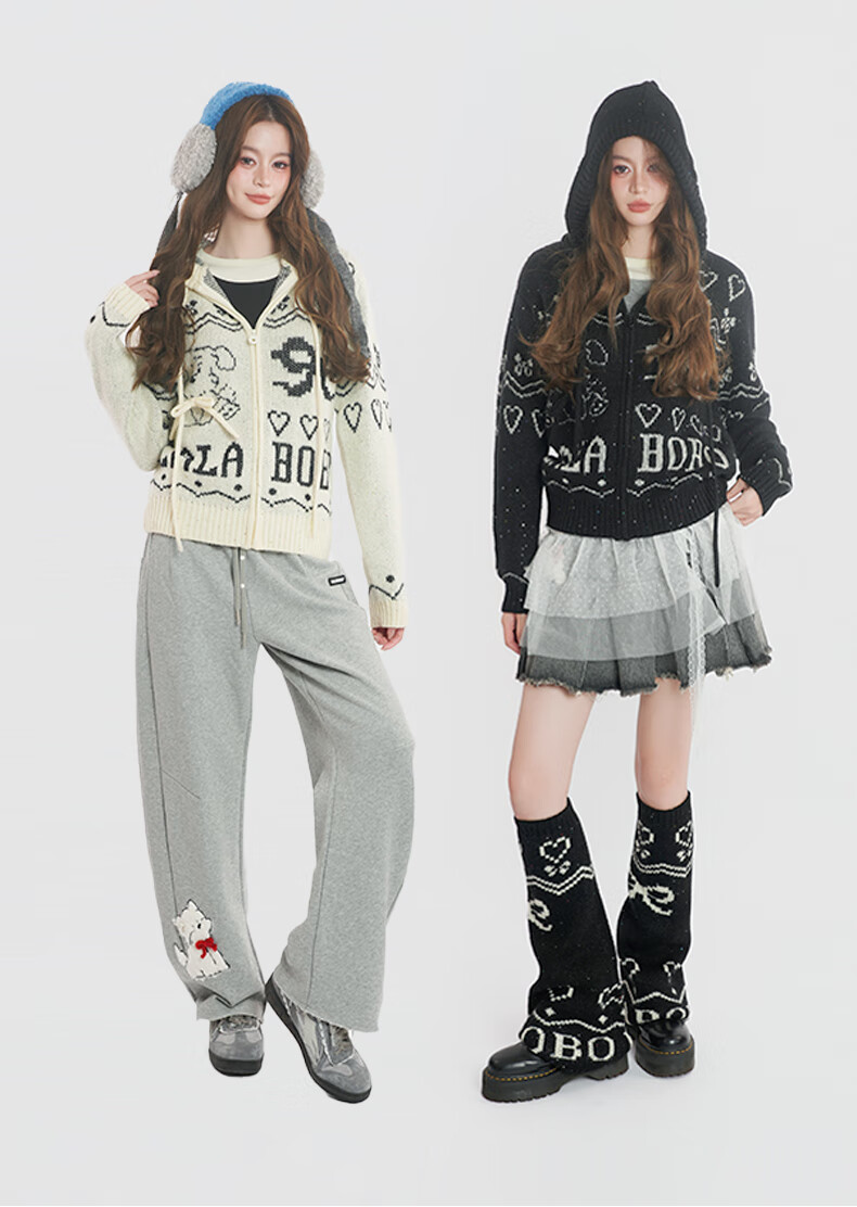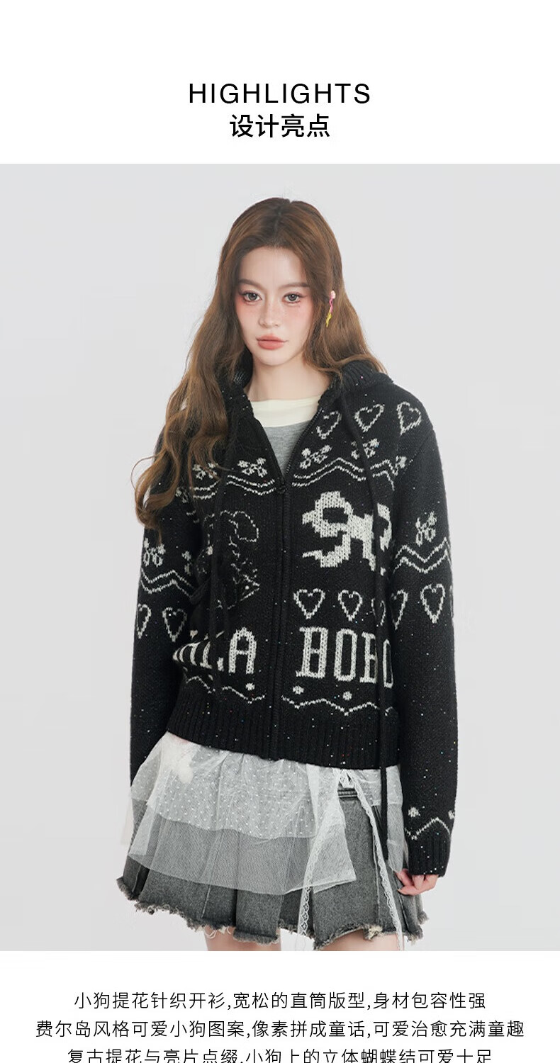 LALABOBO【商场同款】毛织开衫25年秋冬新潮原创针织慵懒风保暖女装外套 米白 M