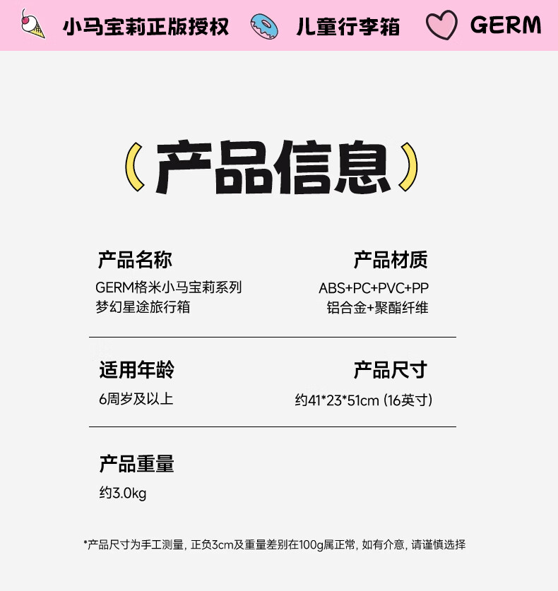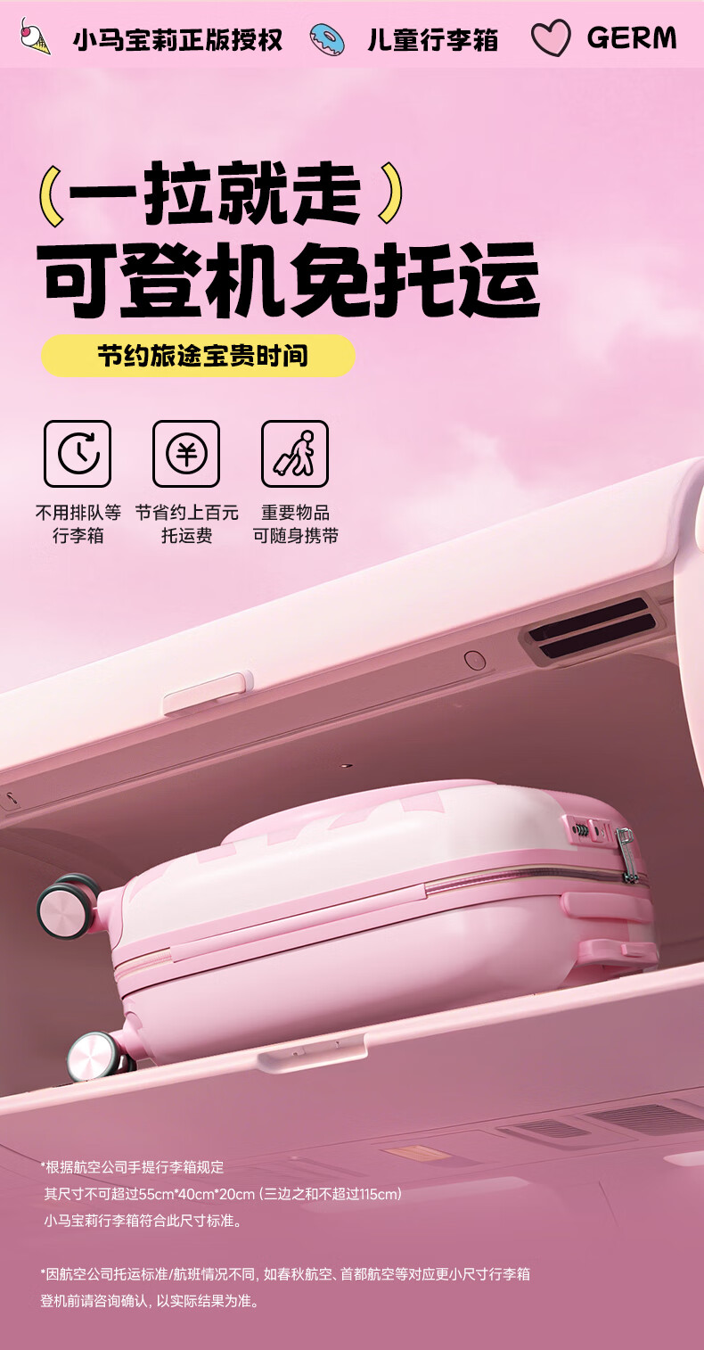 格米(germ)小马宝莉儿童行李箱高颜值儿童拉杆箱旅行箱小型密码可登机箱子 紫悦紫