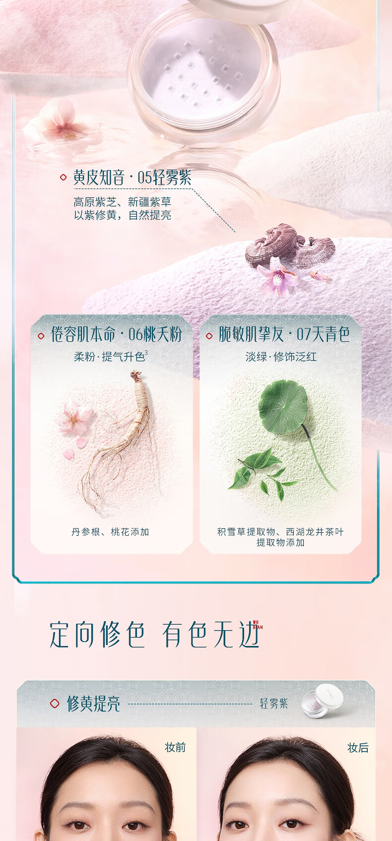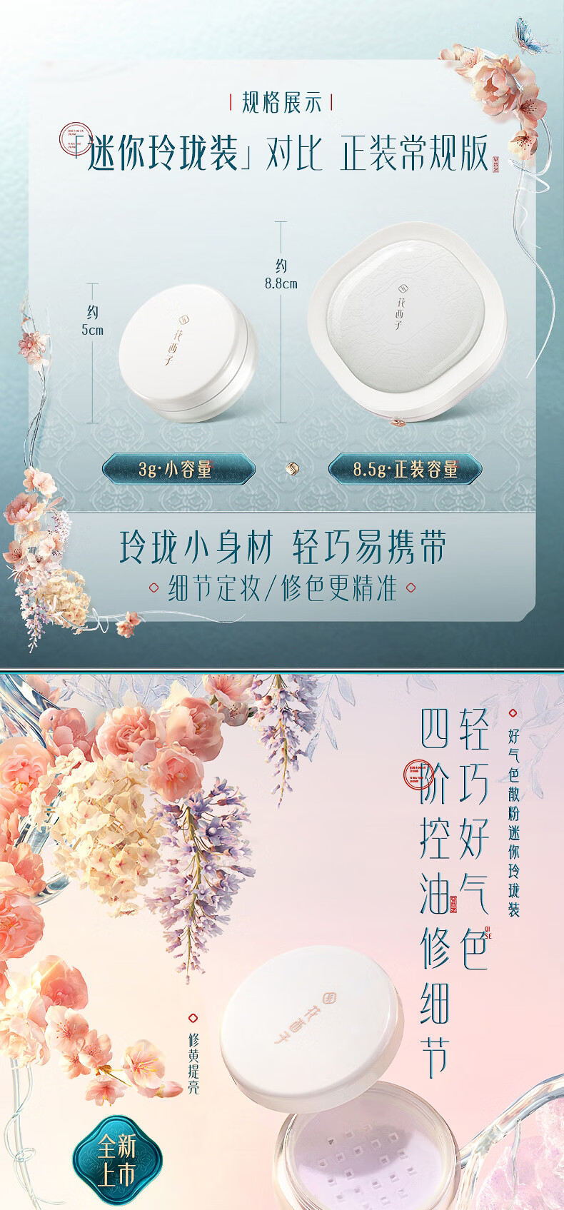 花西子好气色散粉小黛伞妆前随行装热卖尝鲜装差旅便携快速补妆新手入门 蜜粉05轻雾紫-3g+小黛伞05花西紫-5g
