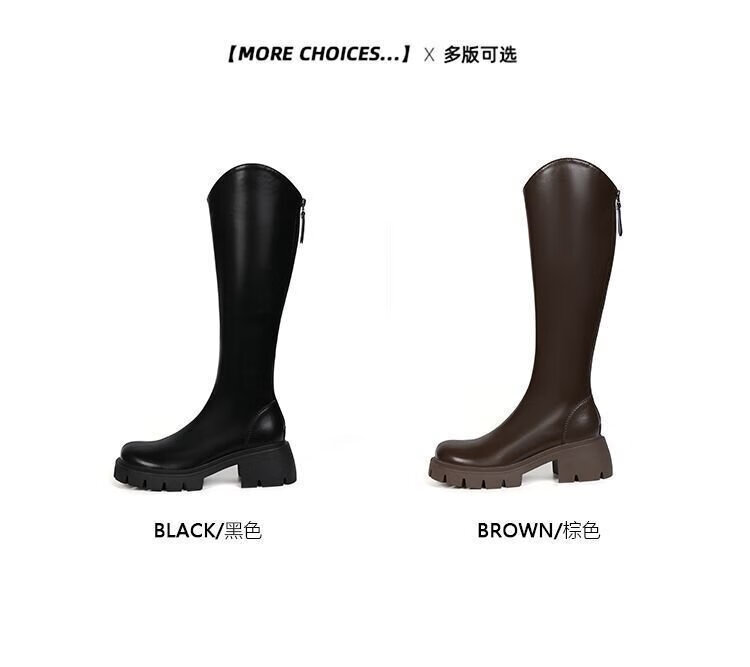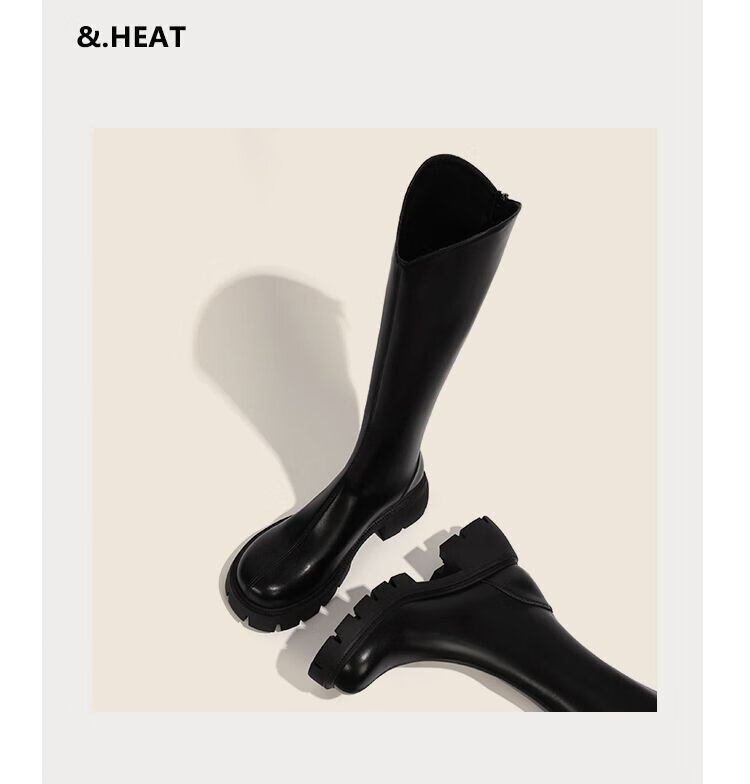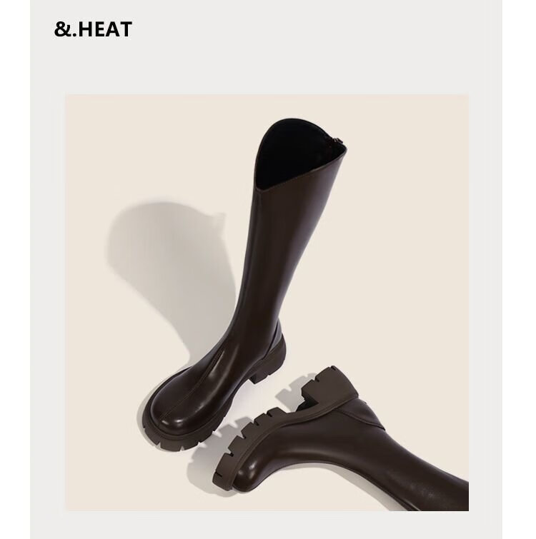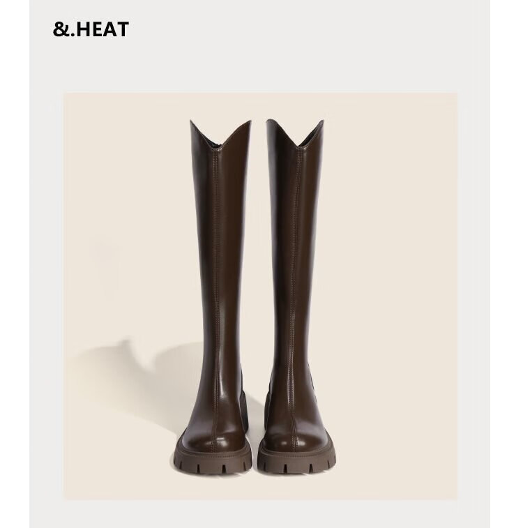 星期六(St&Sat)星期六骑士靴女2023秋冬新款时尚厚底圆头拉链长筒靴 卡其色 38