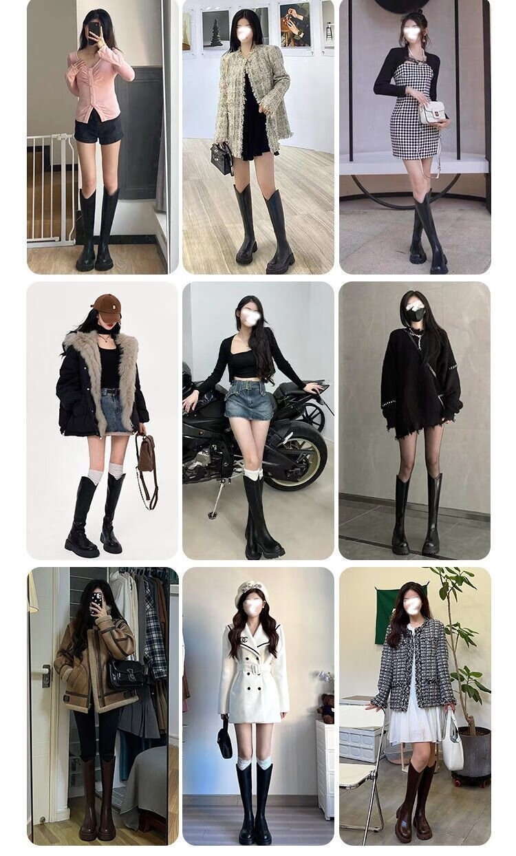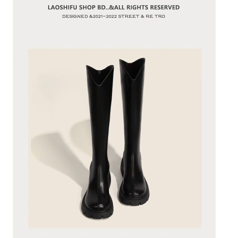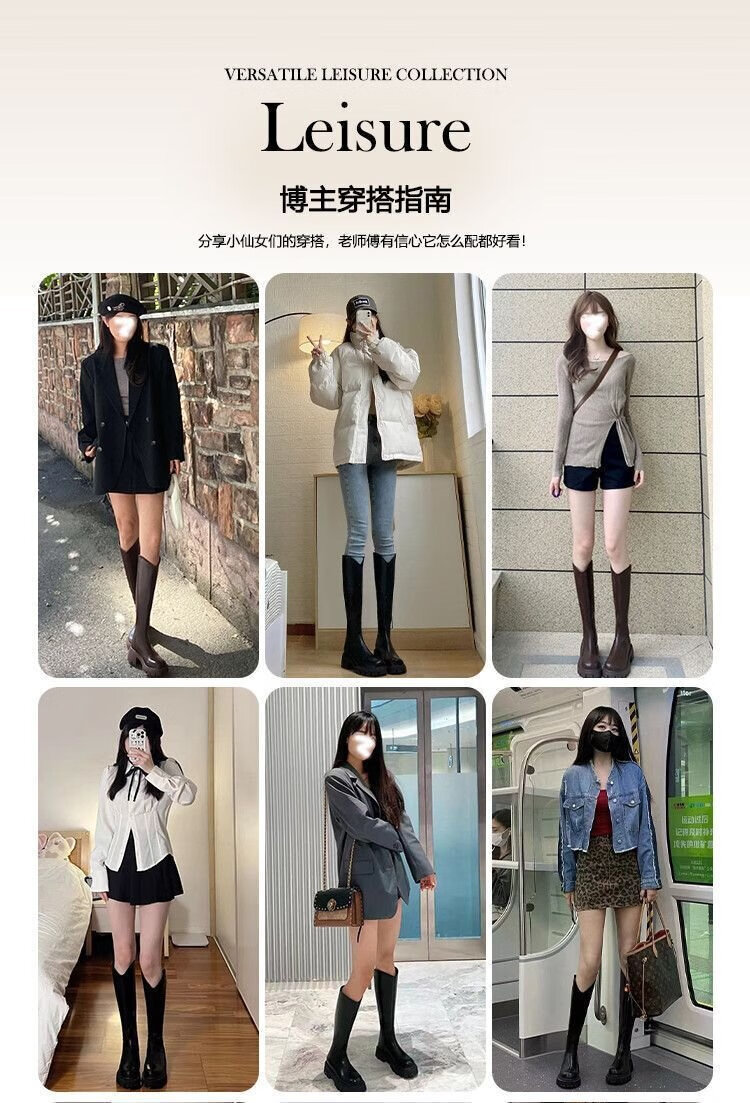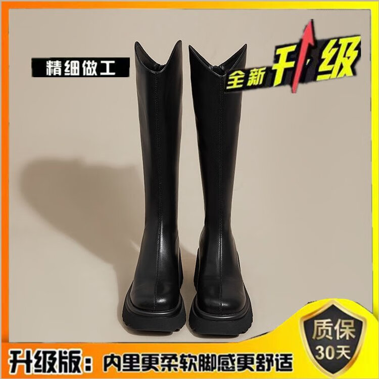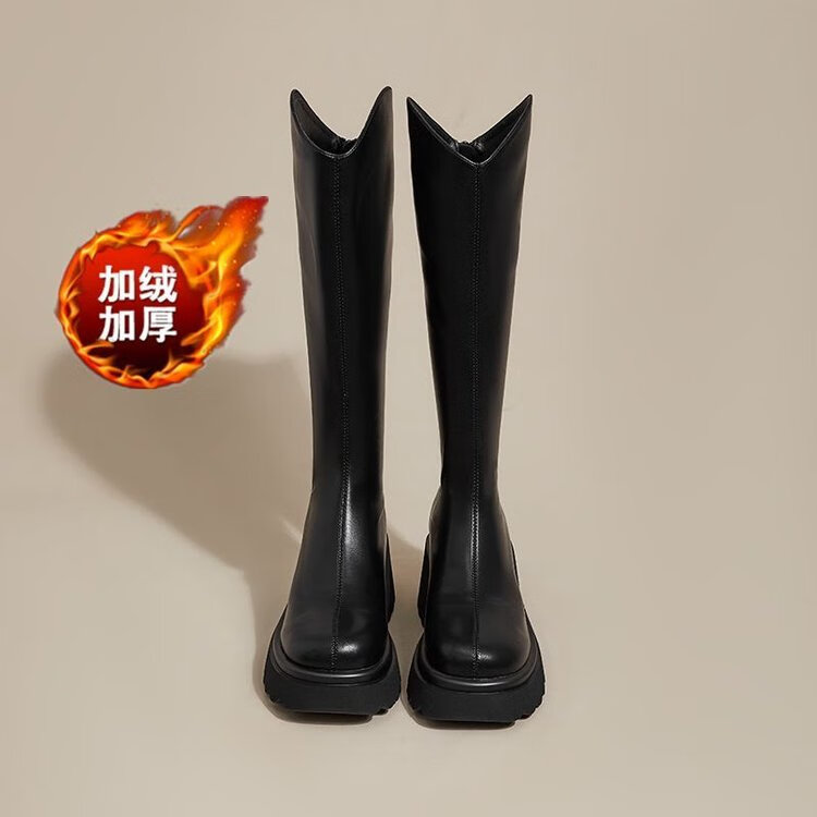 回力四季马丁靴女长筒靴2025秋冬新款瘦瘦不过膝厚底高筒骑士靴小个子长靴 黑色加绒 加绒 37