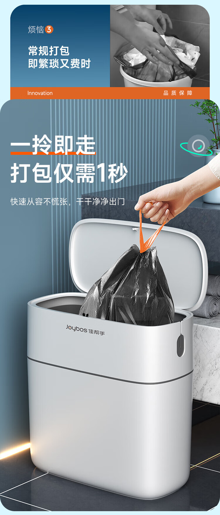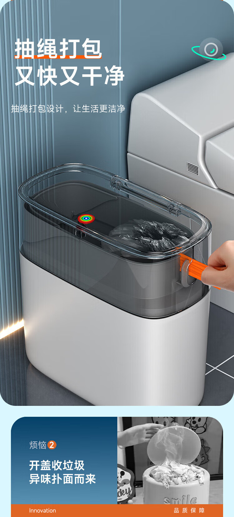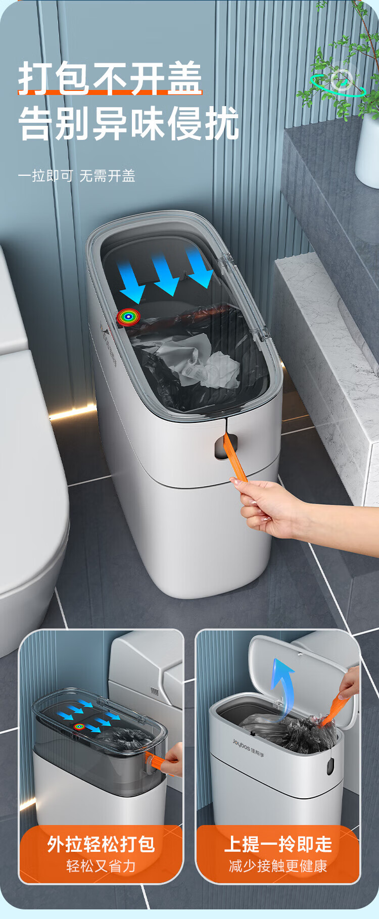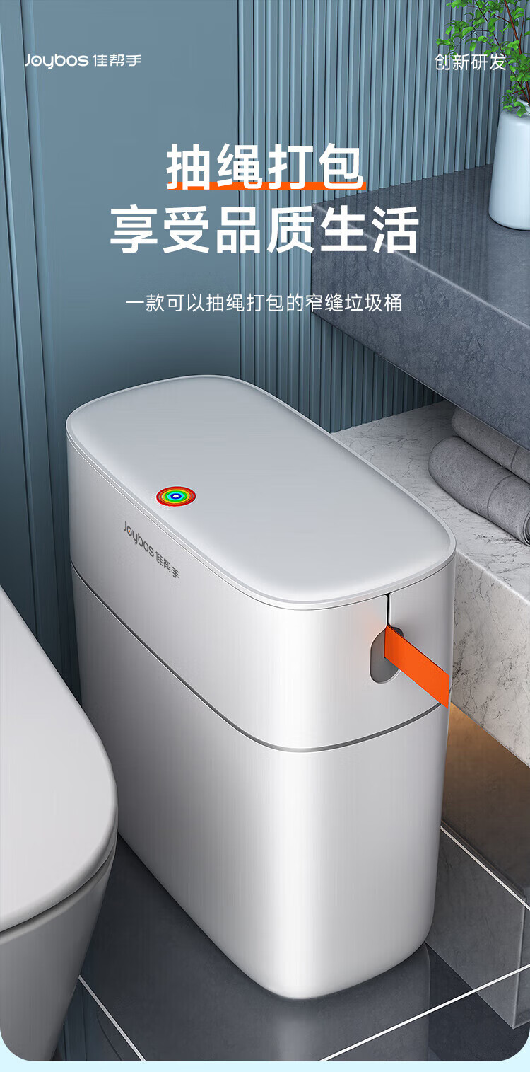 佳帮手抽绳打包卫生间垃圾桶带盖家用大号卧室客厅厨房厕所夹缝垃圾篓 【包邮】抽绳打包款-大盖 12.9L -2只装
