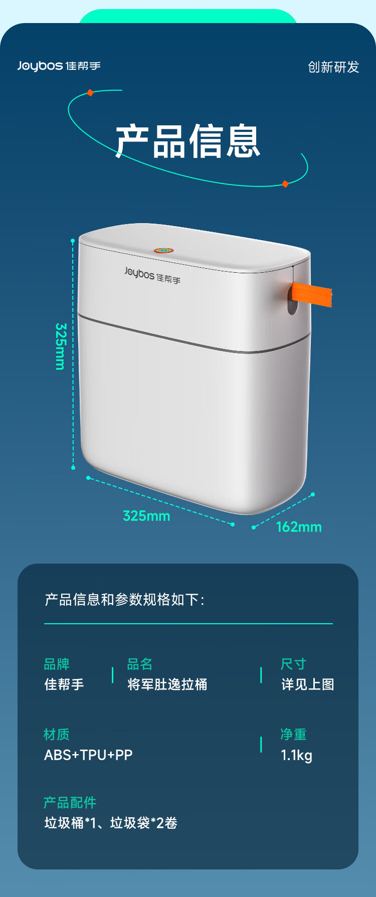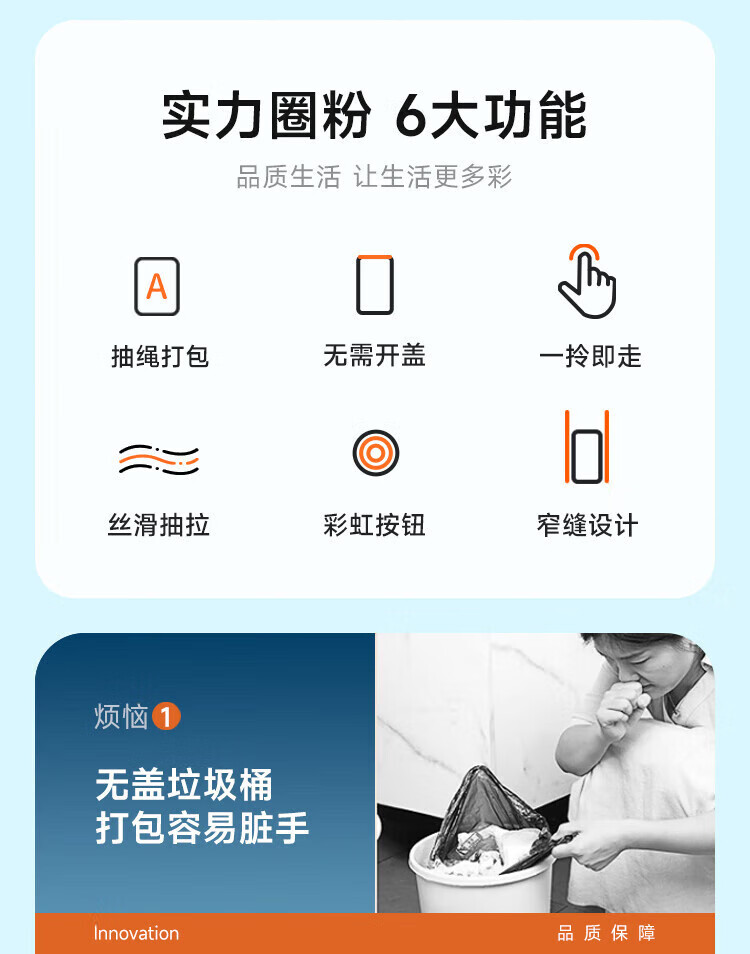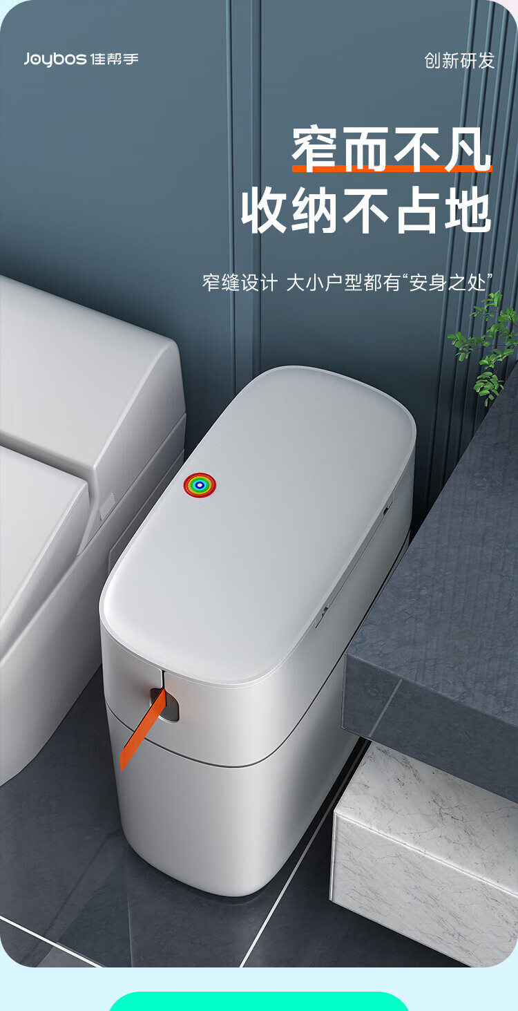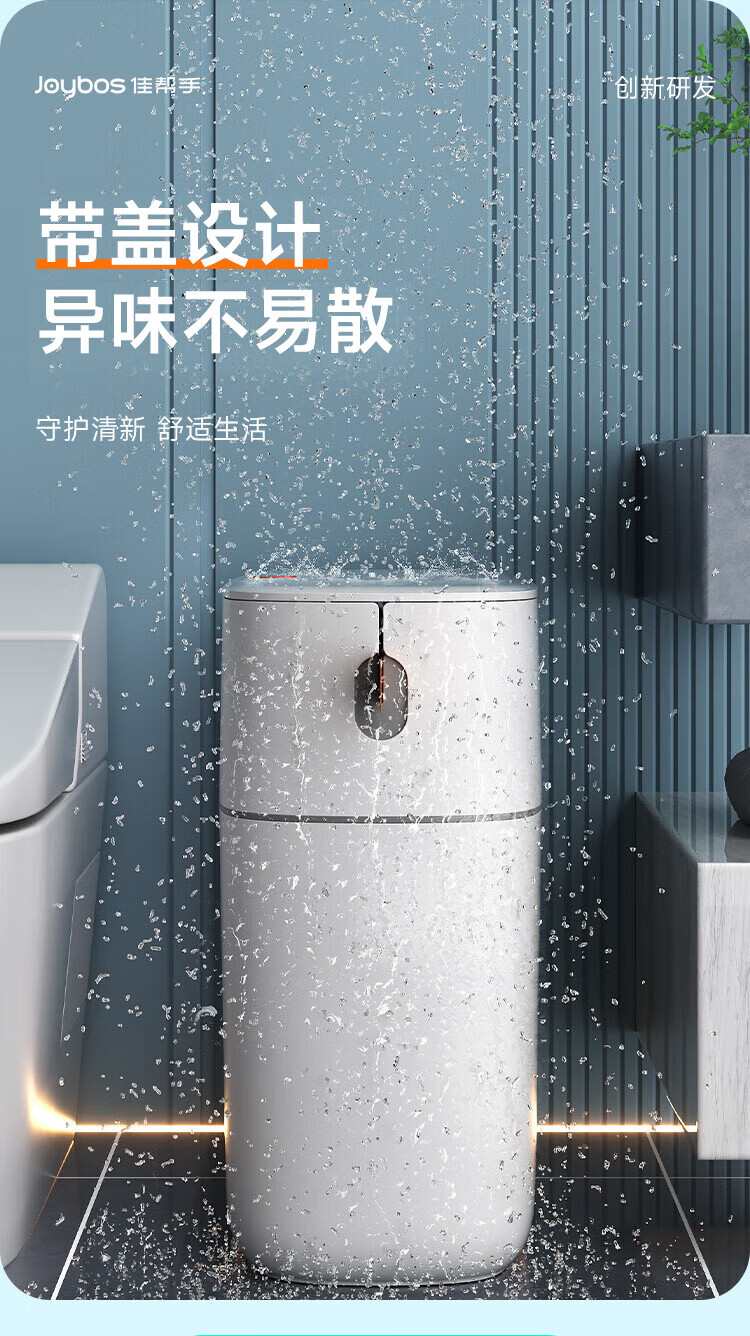 佳帮手抽绳打包卫生间垃圾桶带盖家用大号卧室客厅厨房厕所夹缝垃圾篓 【包邮】抽绳打包款-大盖 12.9L -2只装