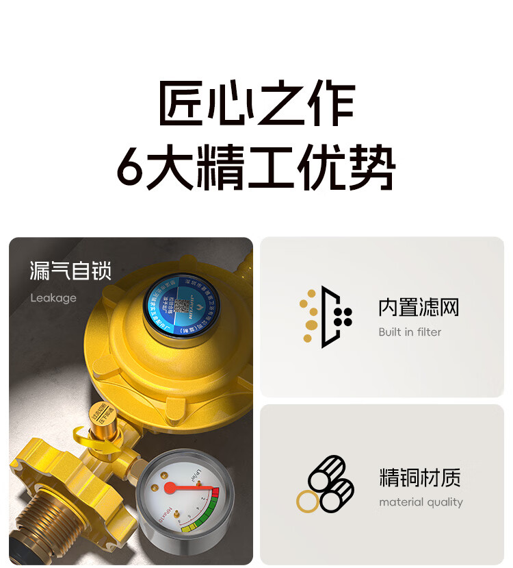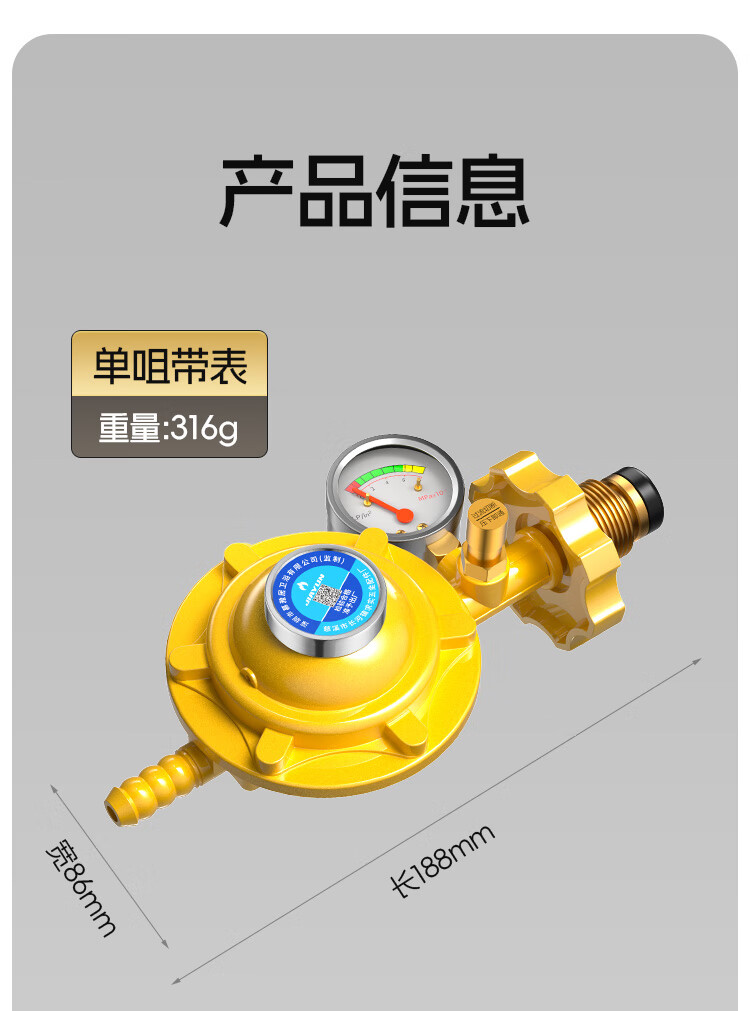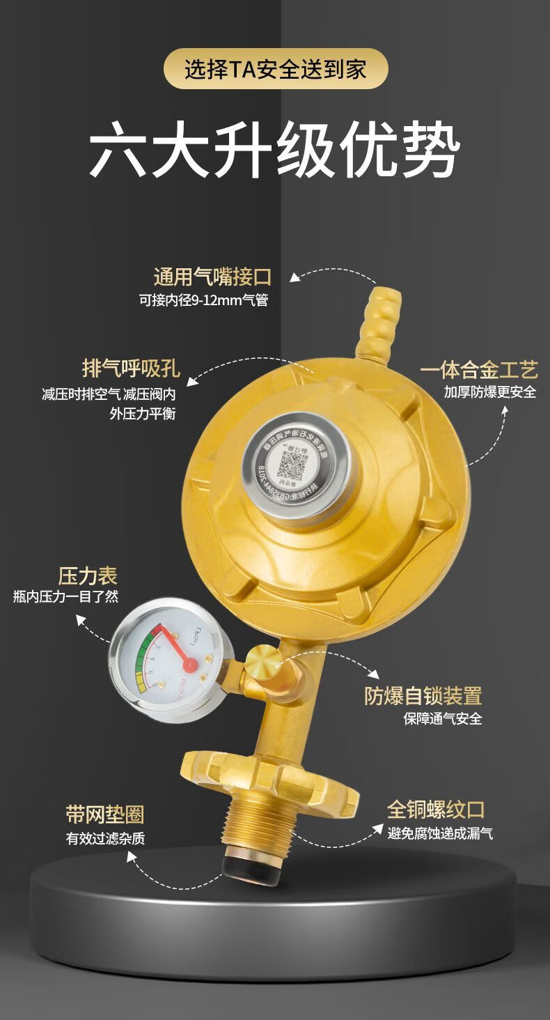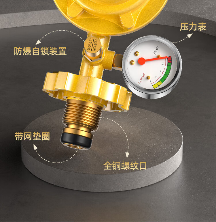 胖东来同款家用国标液化气防爆煤气减压阀煤气罐安全阀动关闭锁燃 【无表-灰蓝标随机发】