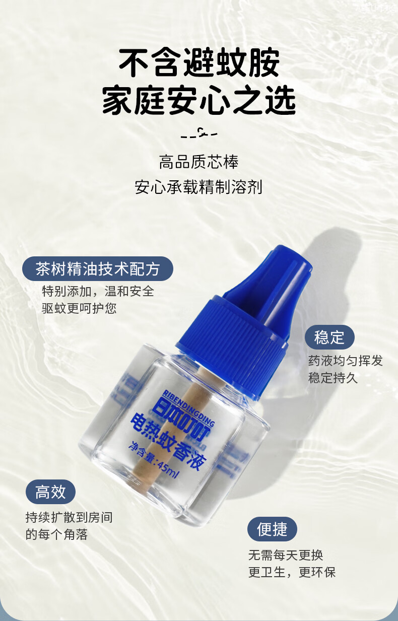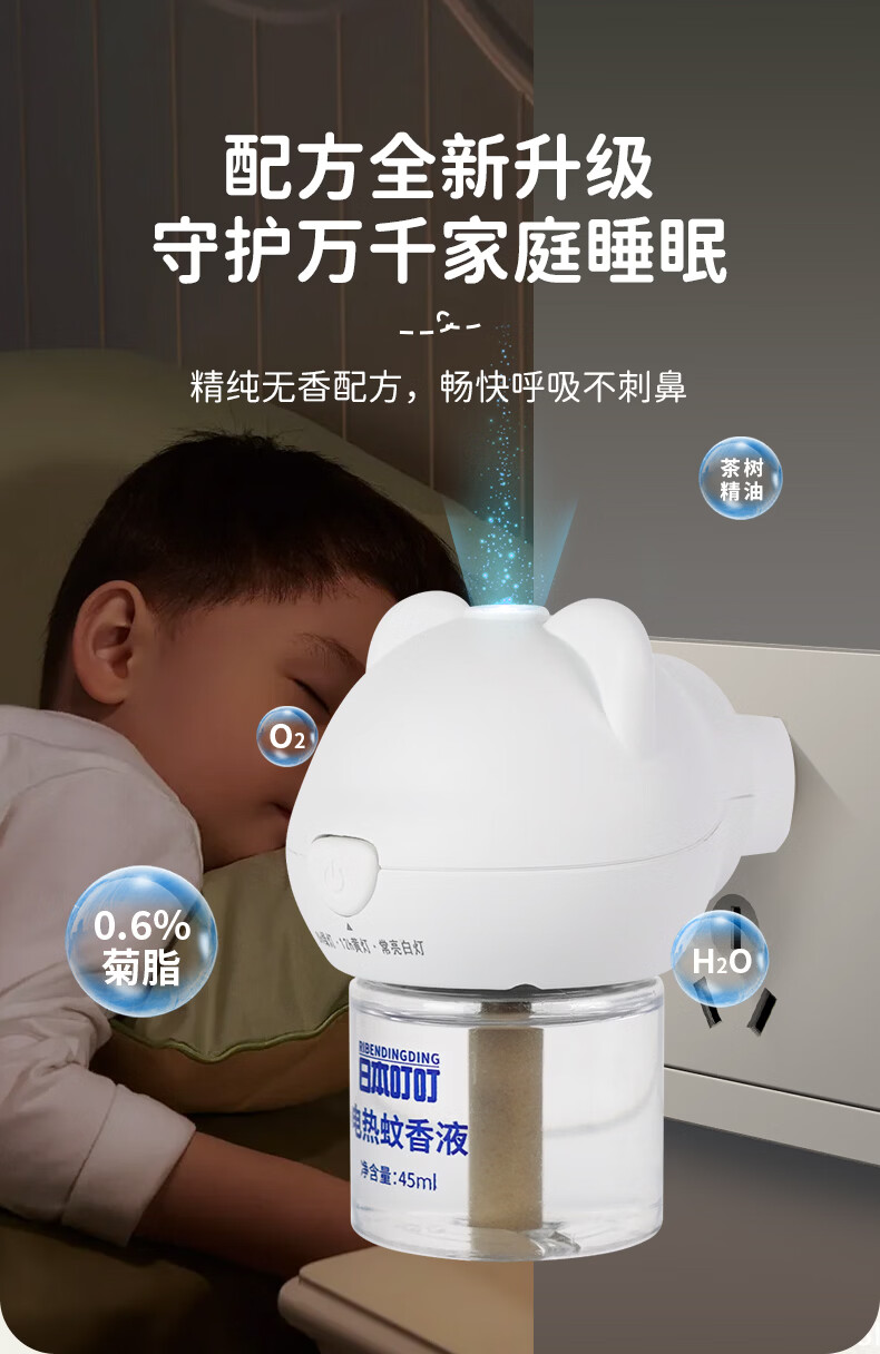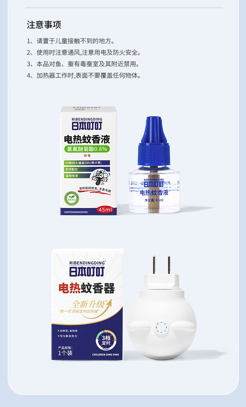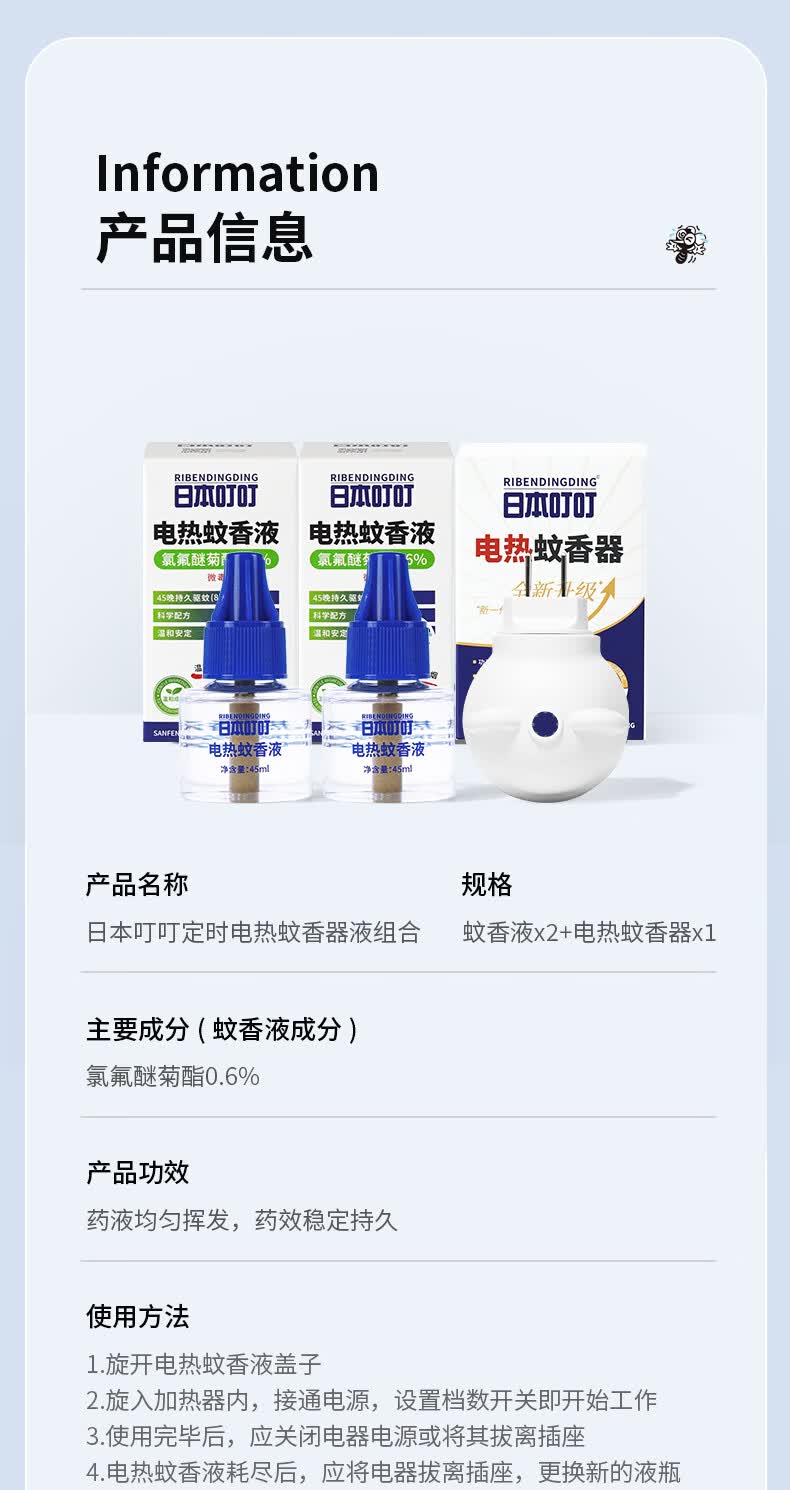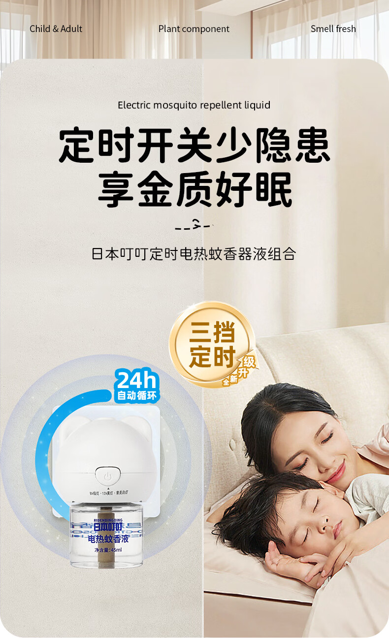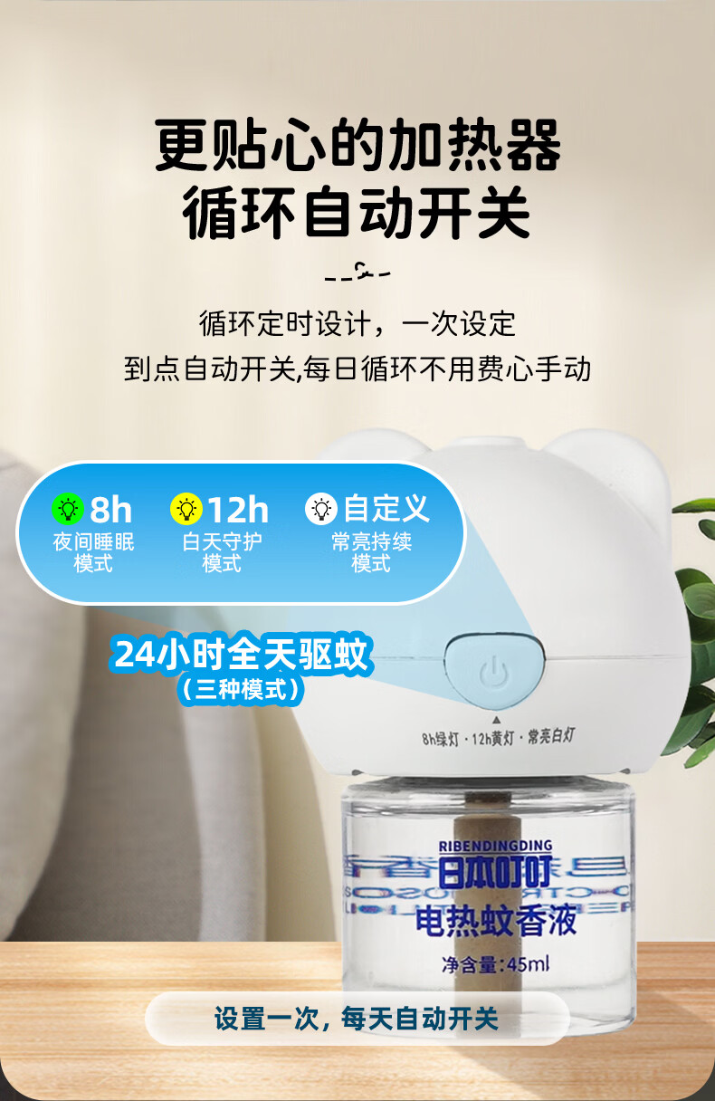 日本叮叮电蚊香液驱蚊液婴儿孕妇防蚊灭蚊90晚1器2液45ml定时无香型