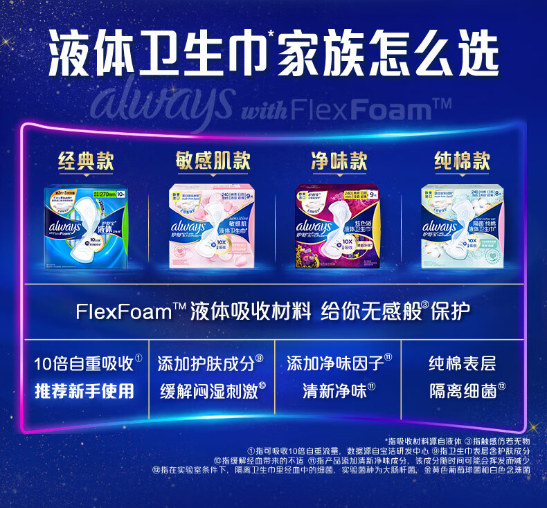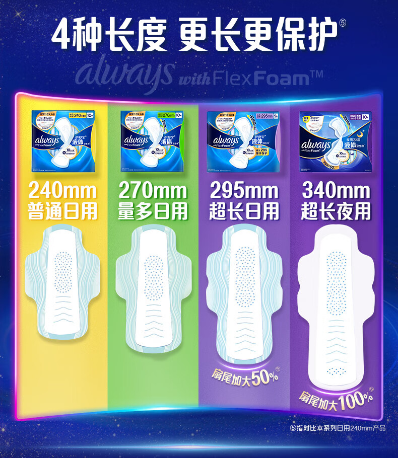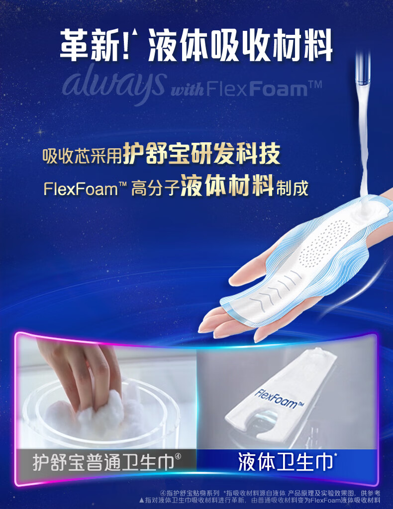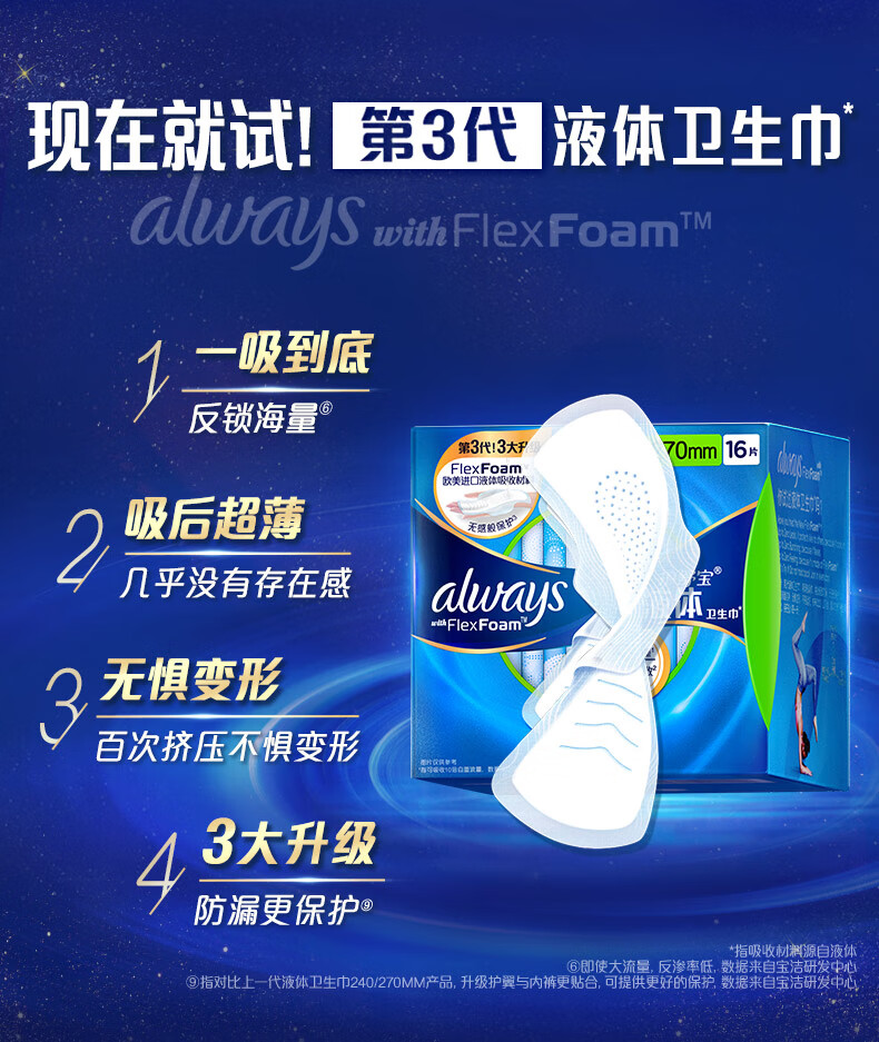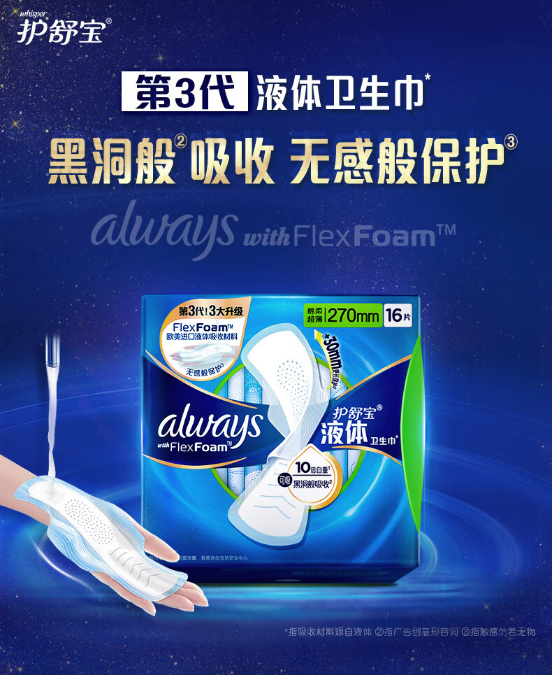 护舒宝液体卫生巾16片加长270mm量多日用姨妈巾无感保护京东自营
