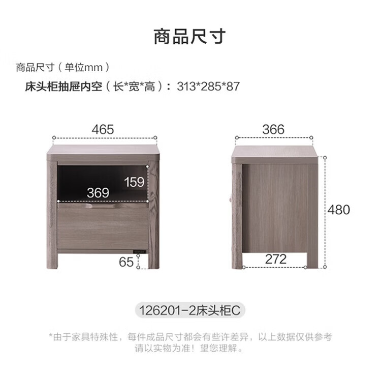 全友(QUANU)【迷瞪清仓货盘】【床头柜合集】卧室收纳储物小柜子抽屉式床头柜 127701-2床头柜D*1