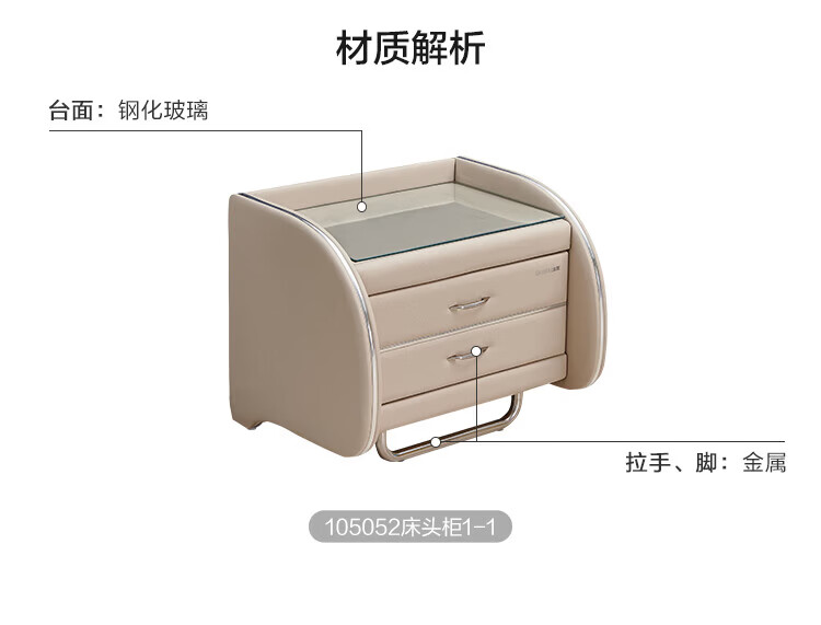 全友家居现代简约茉伊真皮床轻奢高级感2026年新款头层牛皮软包靠背床 【牛皮 | 米白 | 平移+上翻开合电动储物款】 1.8米x2米 床+床头柜*1