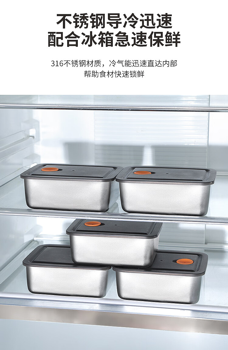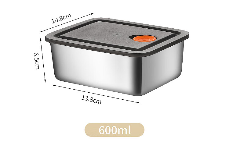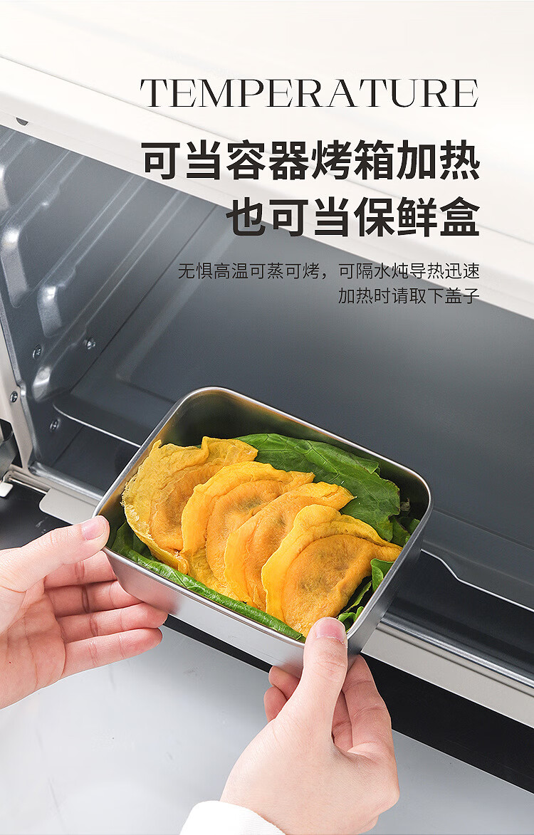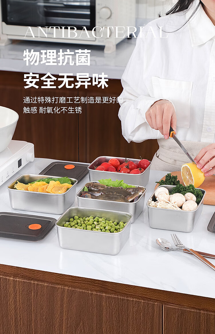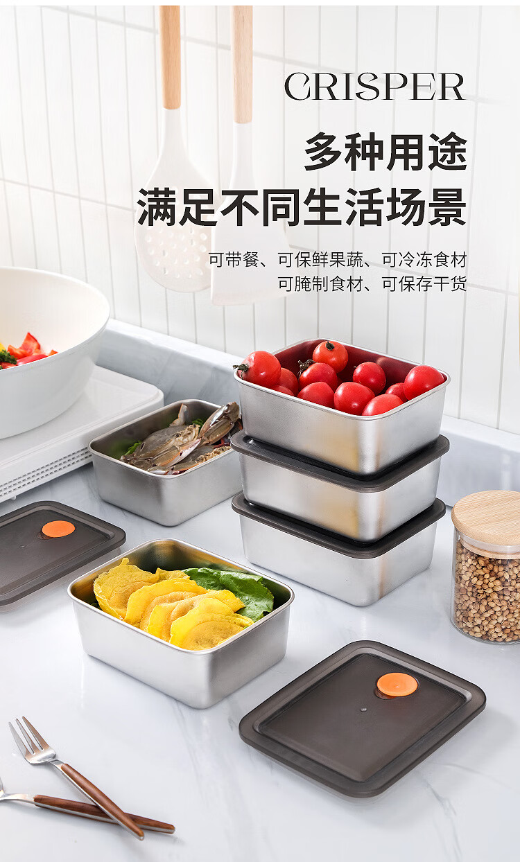 不锈钢保鲜盒水果盒便当盒冰箱专用密封收纳盒家用饭盒 不锈钢无盖(一个装)