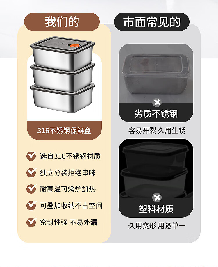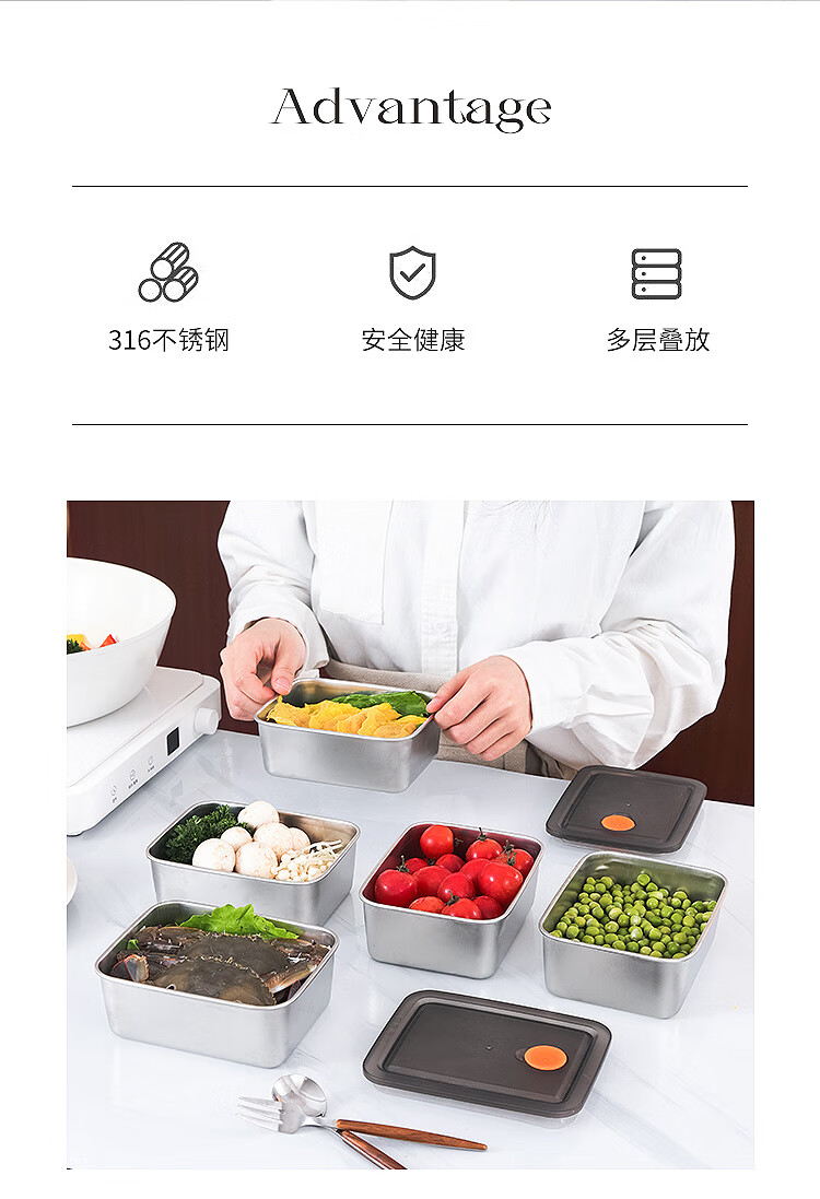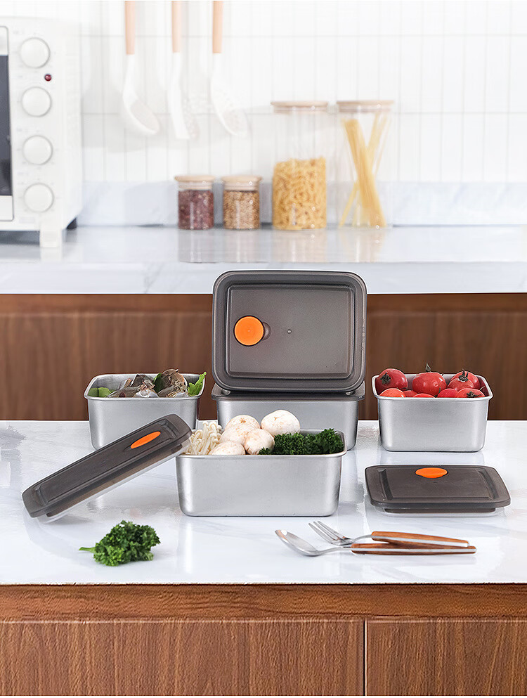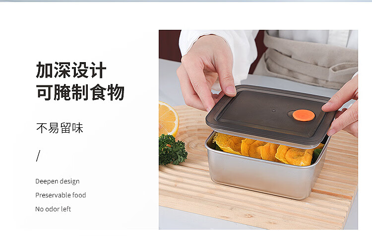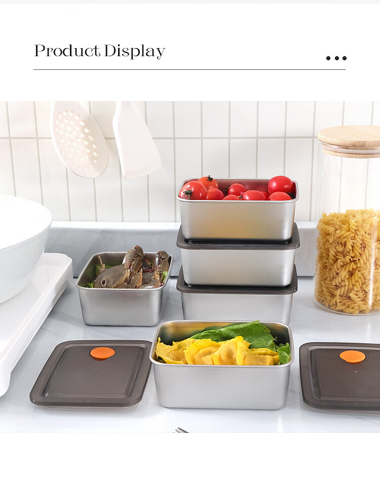 不锈钢保鲜盒水果盒便当盒冰箱专用密封收纳盒家用饭盒 不锈钢无盖(一个装)