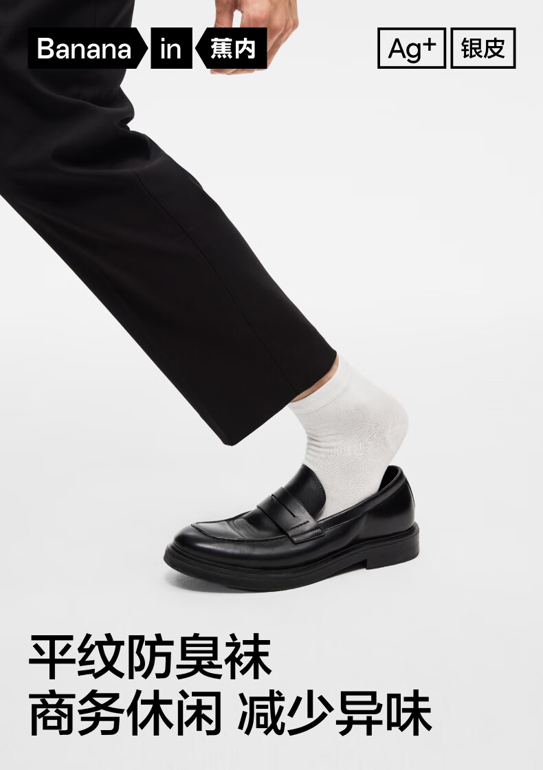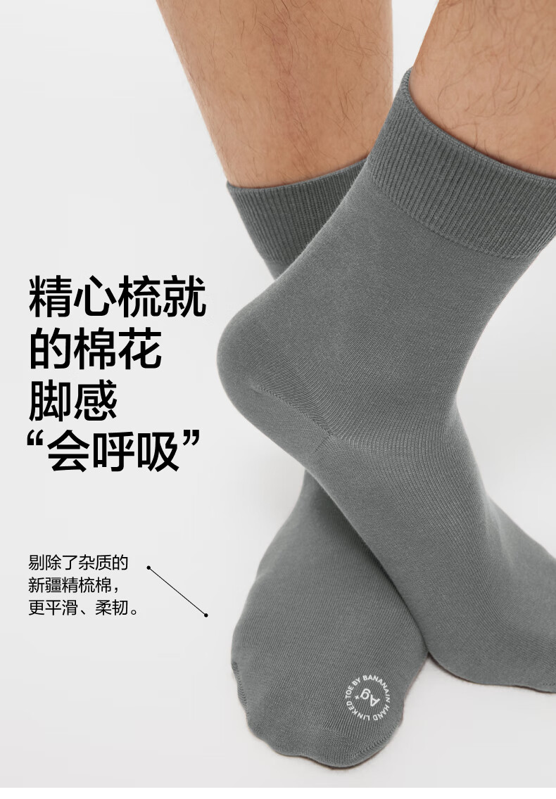 蕉内银皮301S袜子男士新疆精梳棉7A抗菌防臭商务休闲透气秋冬中筒5双