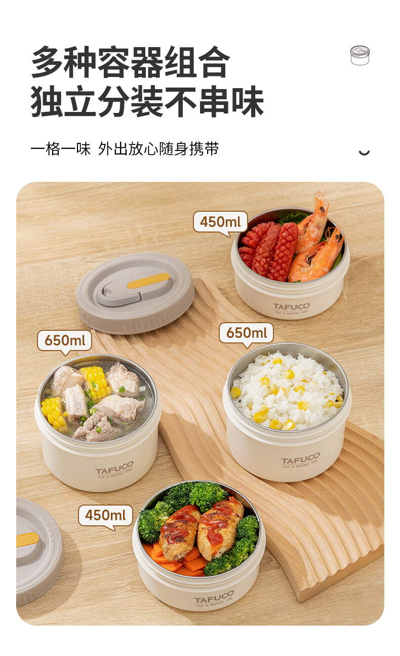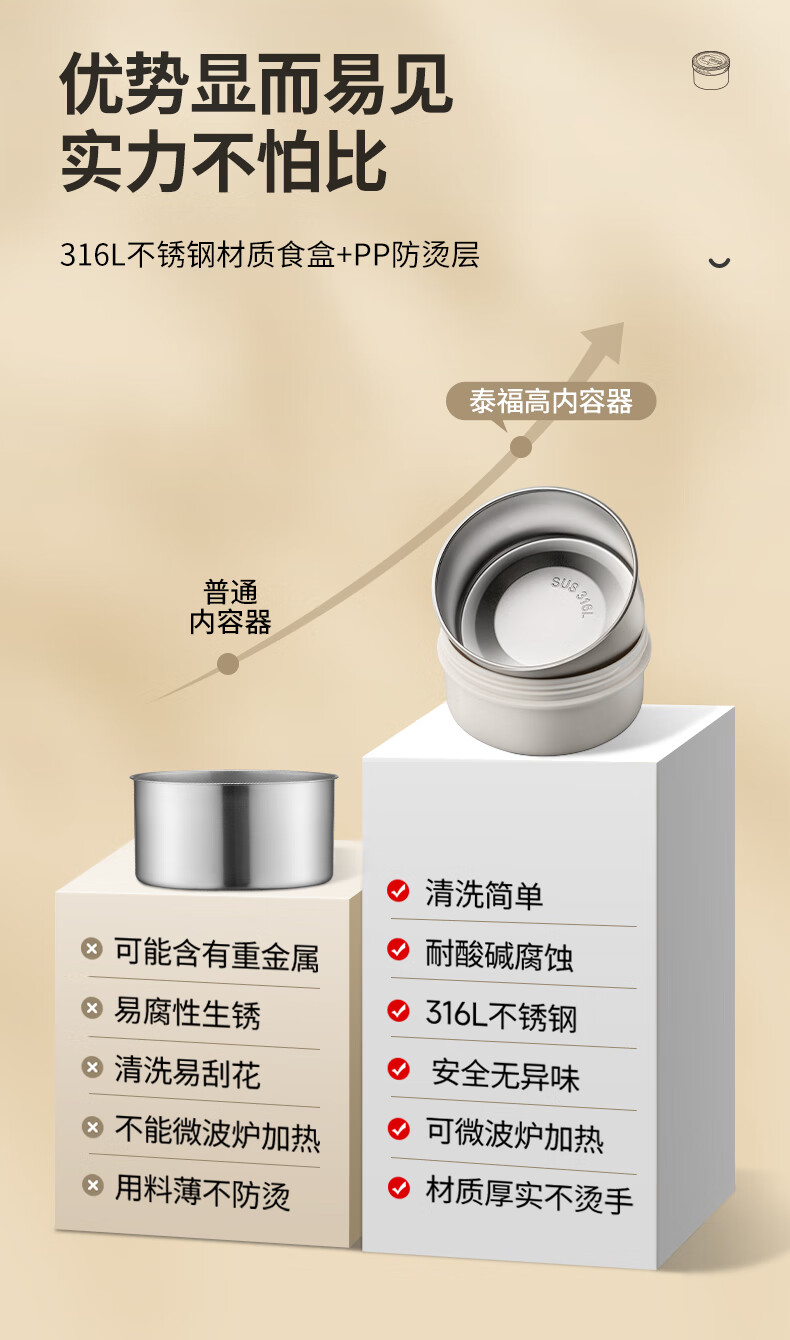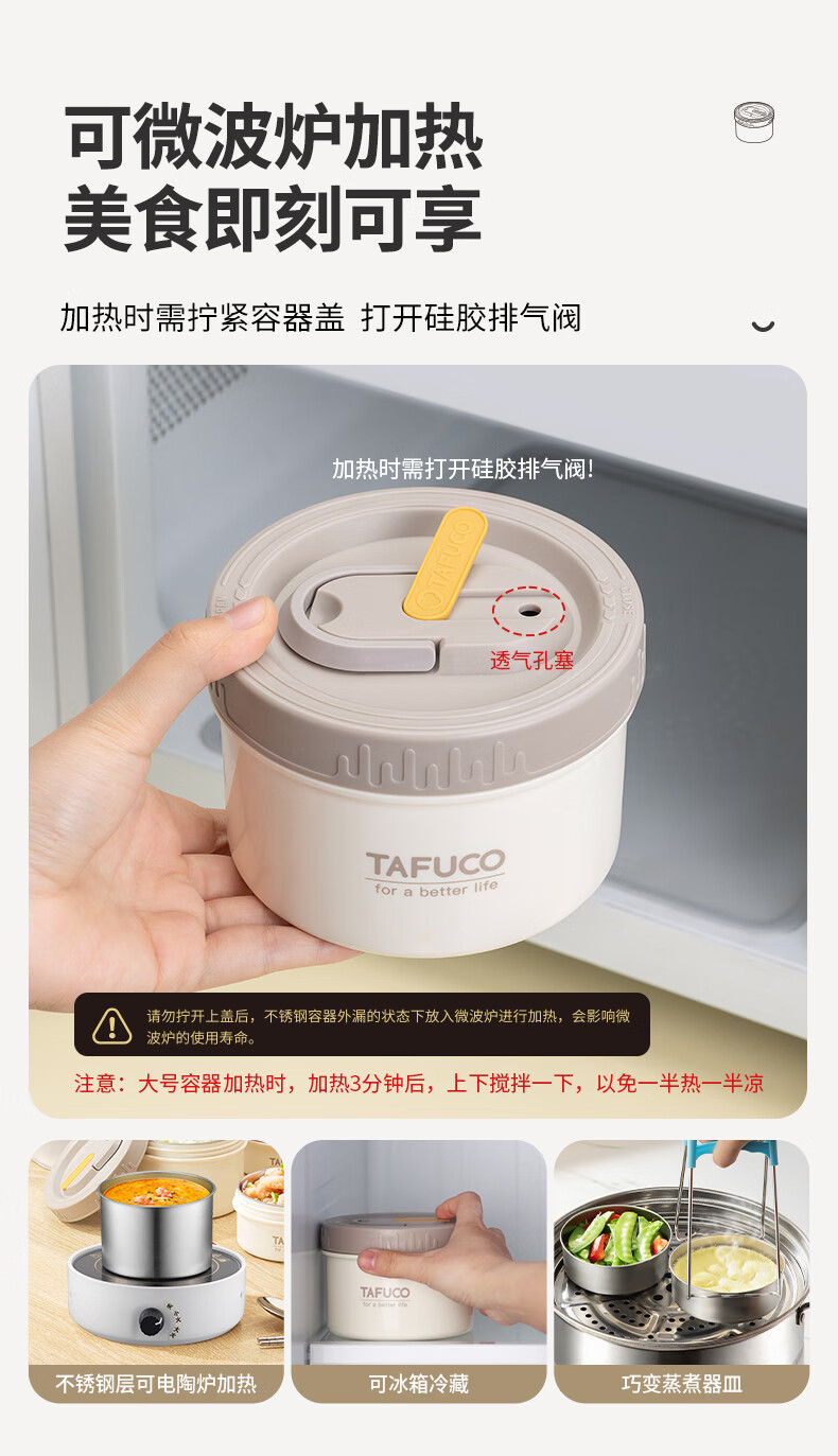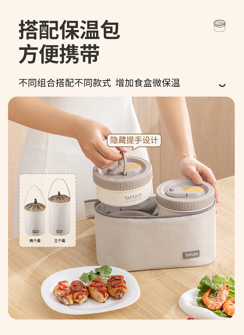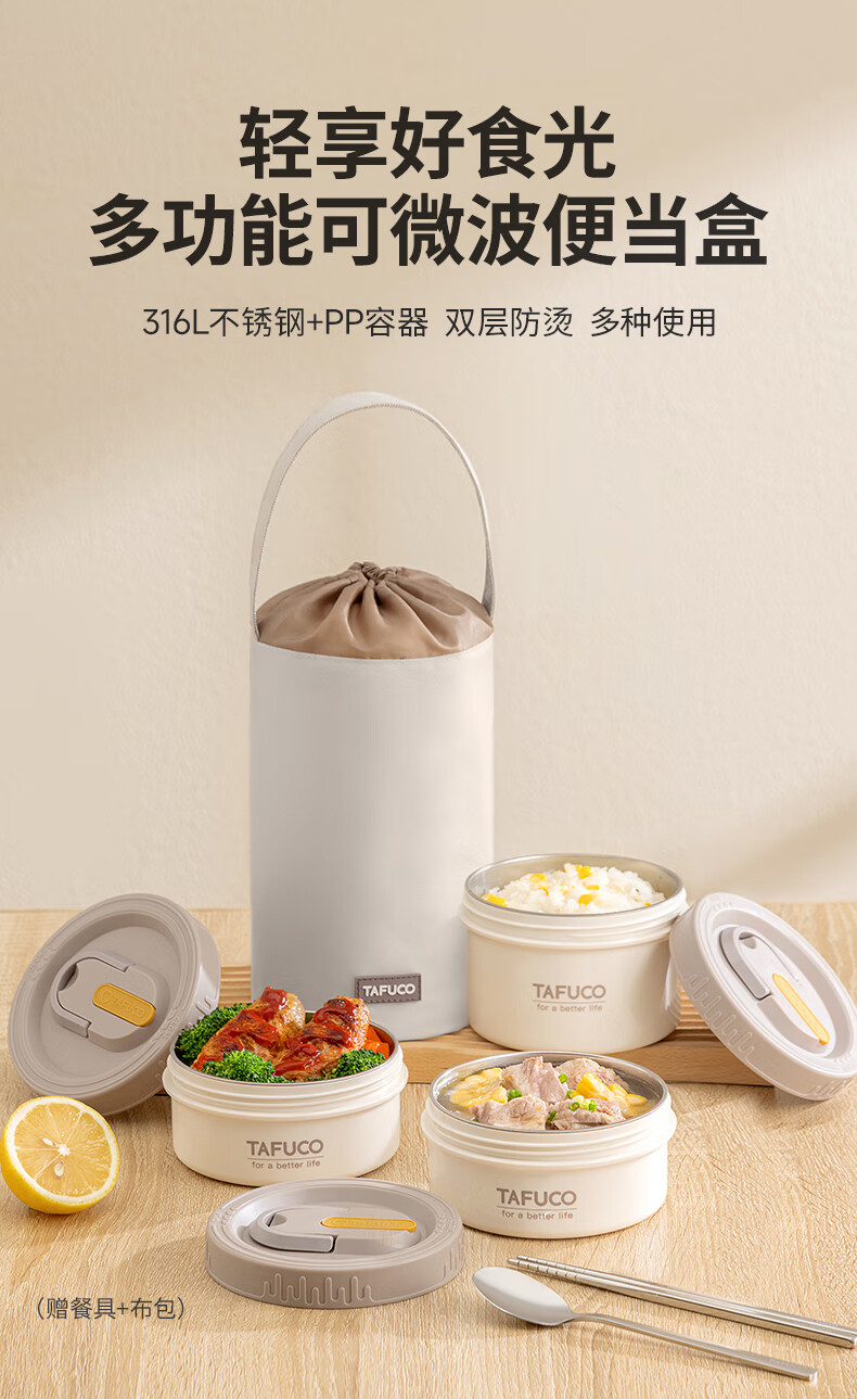 泰福高(TAFUCO)饭盒上班族带饭餐盒316不锈钢碗带盖便携微波便当盒食堂打饭T5392