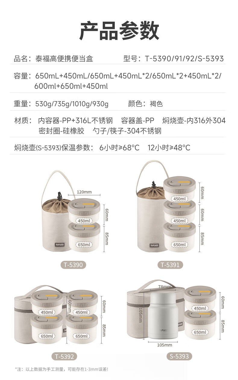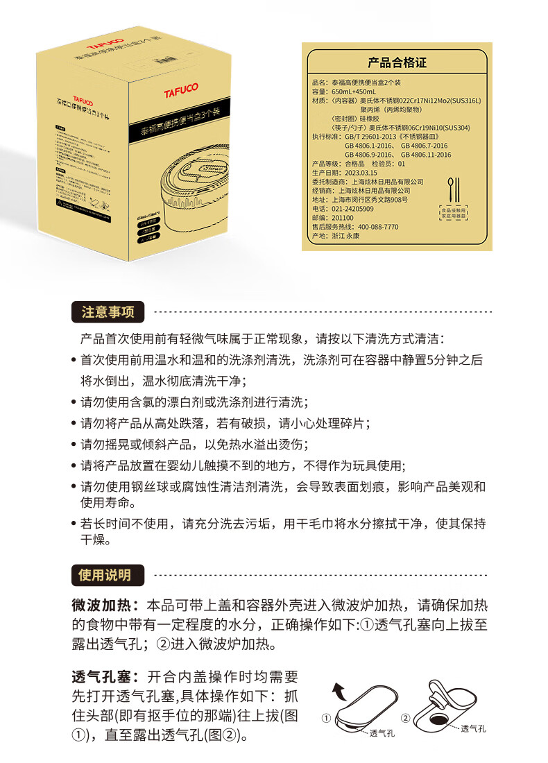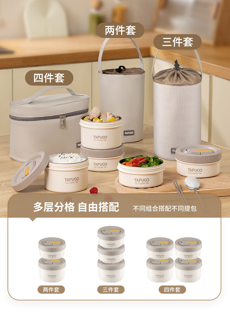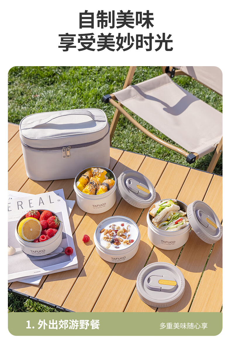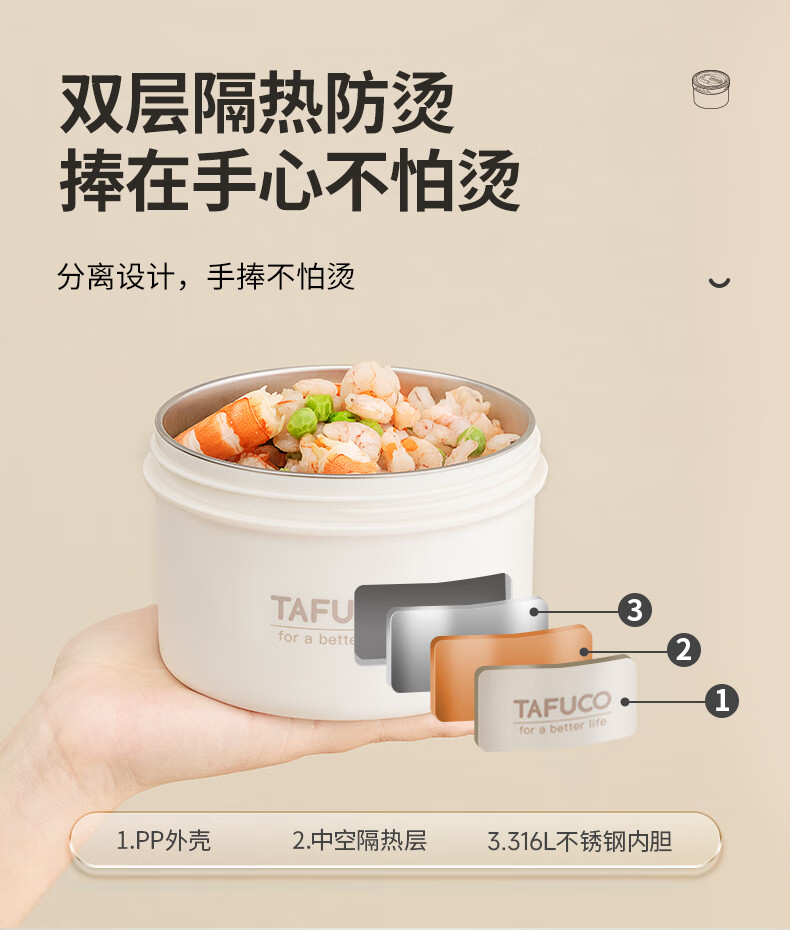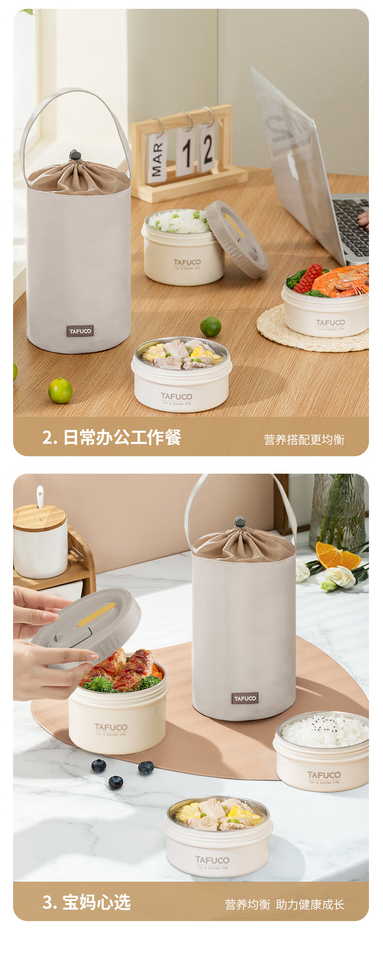 泰福高(TAFUCO)饭盒上班族带饭餐盒316不锈钢碗带盖便携微波便当盒食堂打饭T5392