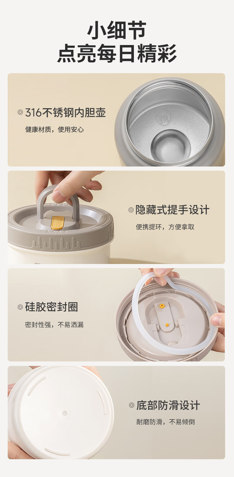 杯具熊(BEDDYBEAR) 焖烧罐316焖罐儿童保温焖烧杯学生保温饭盒便当盒外出焖粥罐 樱花焖烧罐500ml
