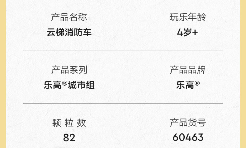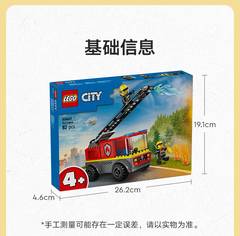 乐高(LEGO)积木拼装城市系列60463 云梯消防车男孩儿童玩具生日圣诞礼物