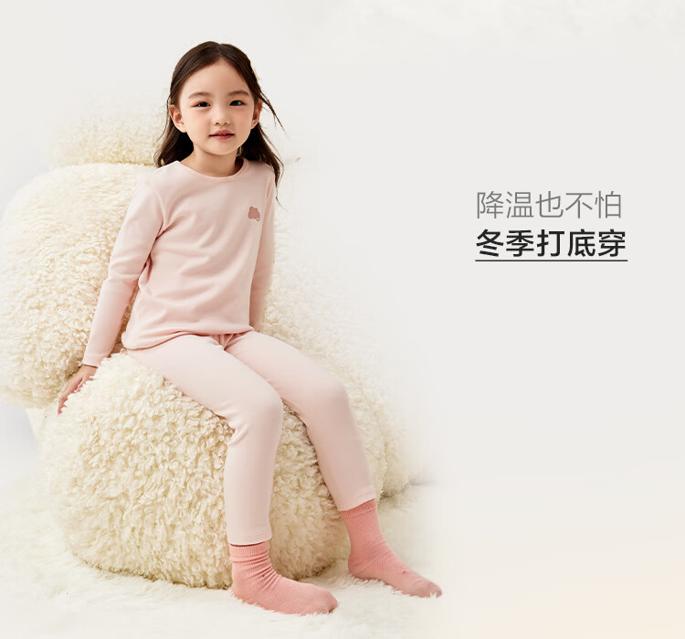 巴拉巴拉女童内衣套装秋冬季加厚儿童保暖秋衣秋裤中大童内搭打底睡衣童装 梦幻粉60334 120