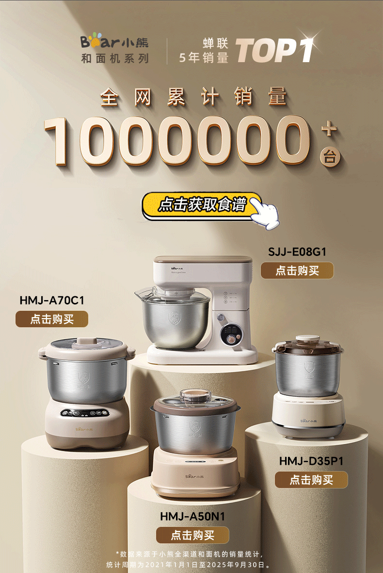 小熊(Bear)和面机家用 揉面机 厨师机 全自动多功能智能和面搅面机 面包面粉发酵醒面HMJ-A50N1 5L 政府补贴