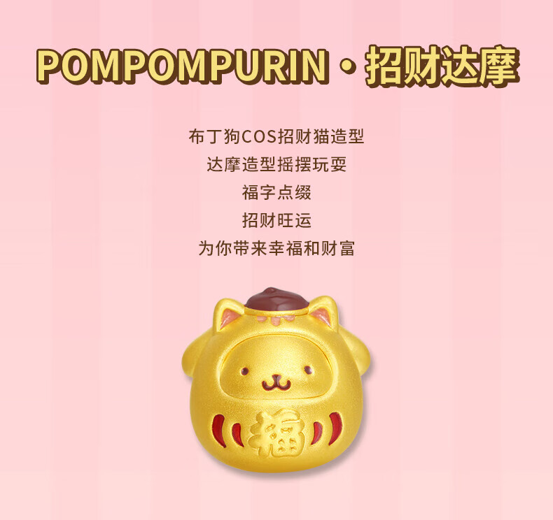 潮宏基 三丽鸥布丁狗黄金转运珠女足金珠子小版正版联名可DIY手链手绳TK 国王布丁狗(小版)