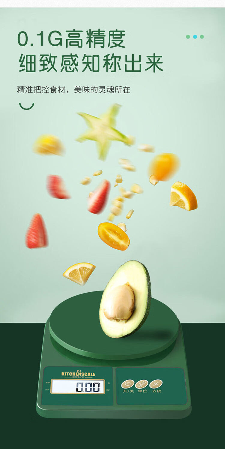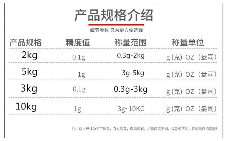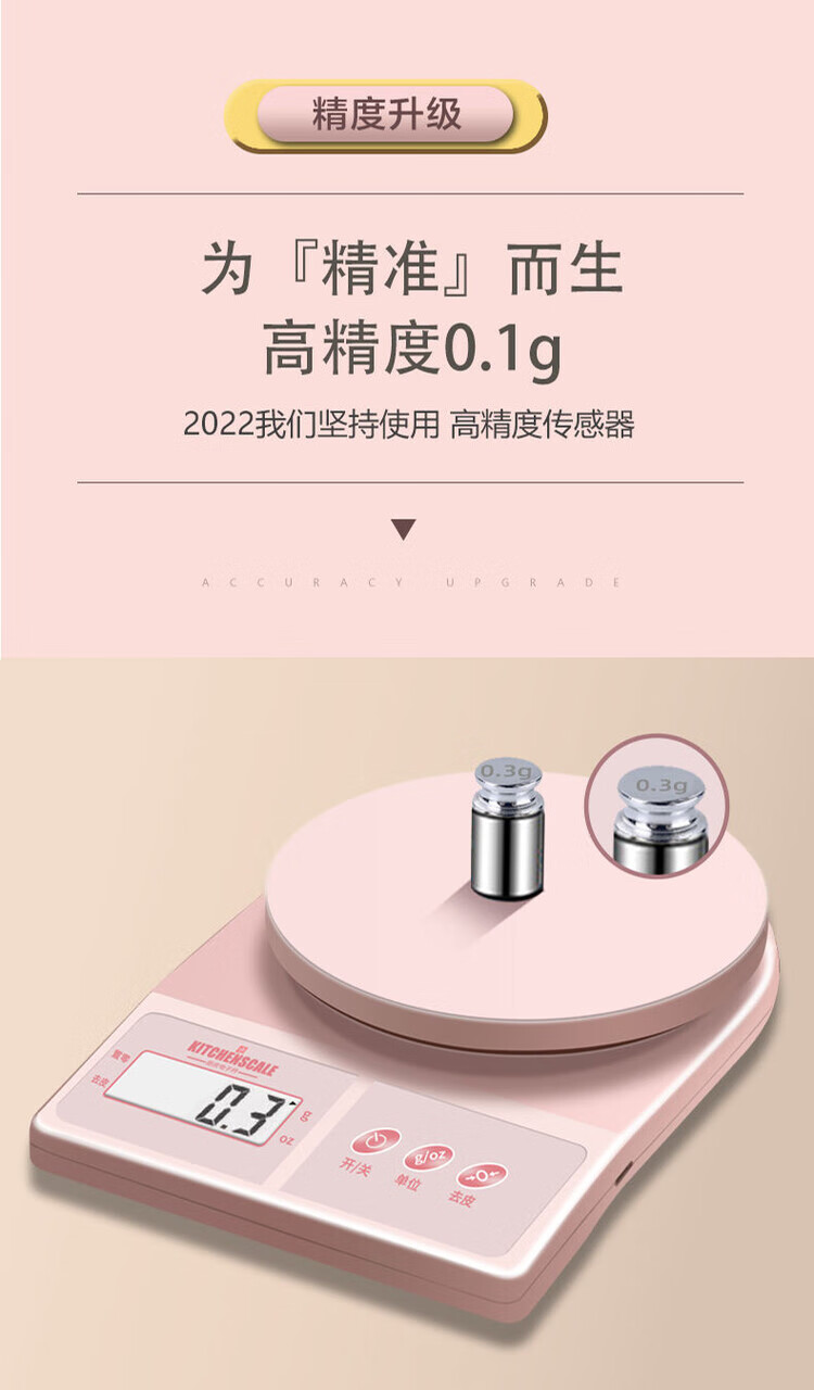 LZJV厨房秤烘焙电子秤克秤家用小型0.1g-3g食品称高精度克重小秤 10kg/1g粉电池