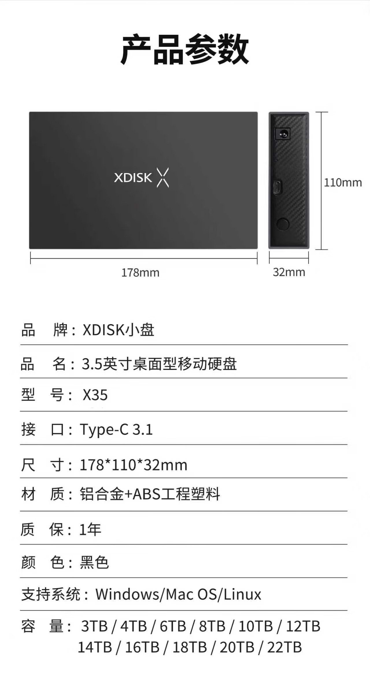 小盘(XDISK)6TB移动硬盘USB3.1桌面硬盘TypeC外接电脑电视游戏硬盘金属3.5英寸硬盘家庭数据仓库