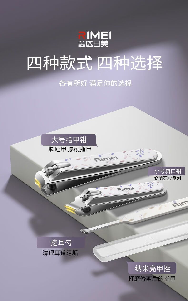 金达日美指甲剪套装平口斜口指甲刀修甲美甲的专用工具指甲钳全套修剪工具 薰衣草指甲钳套装