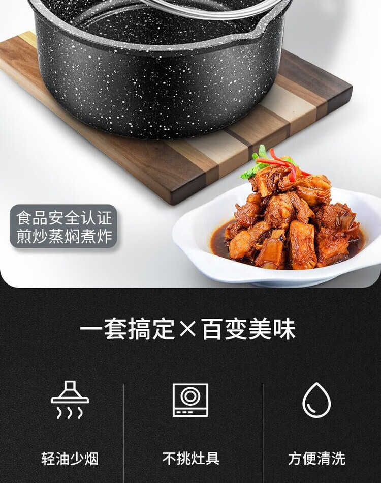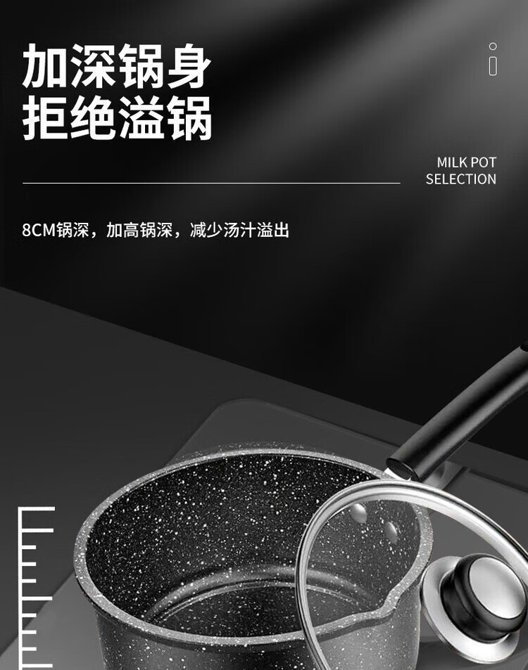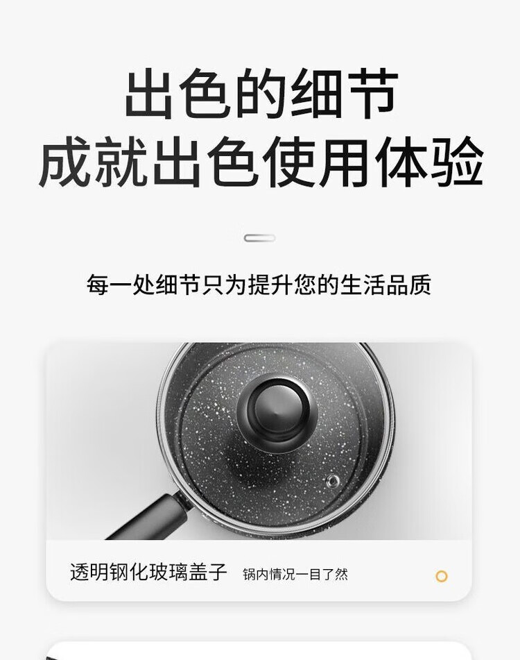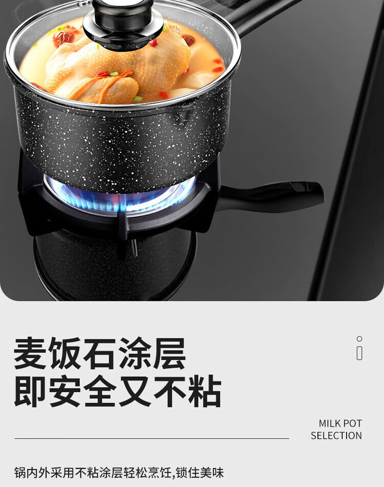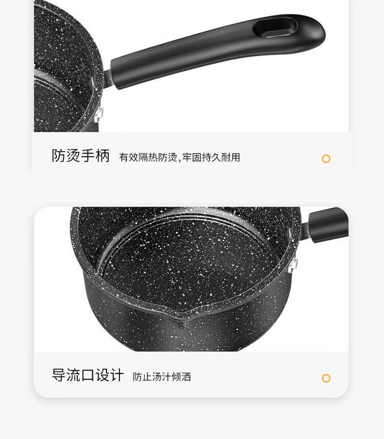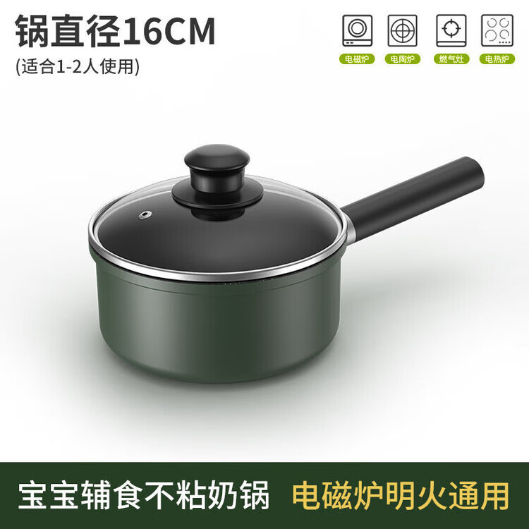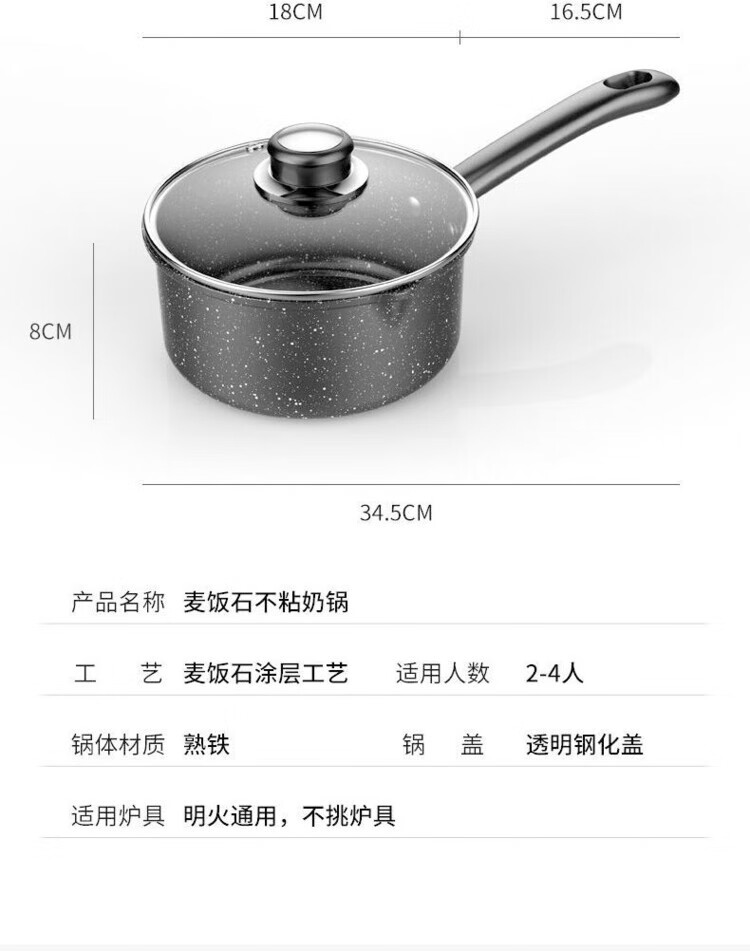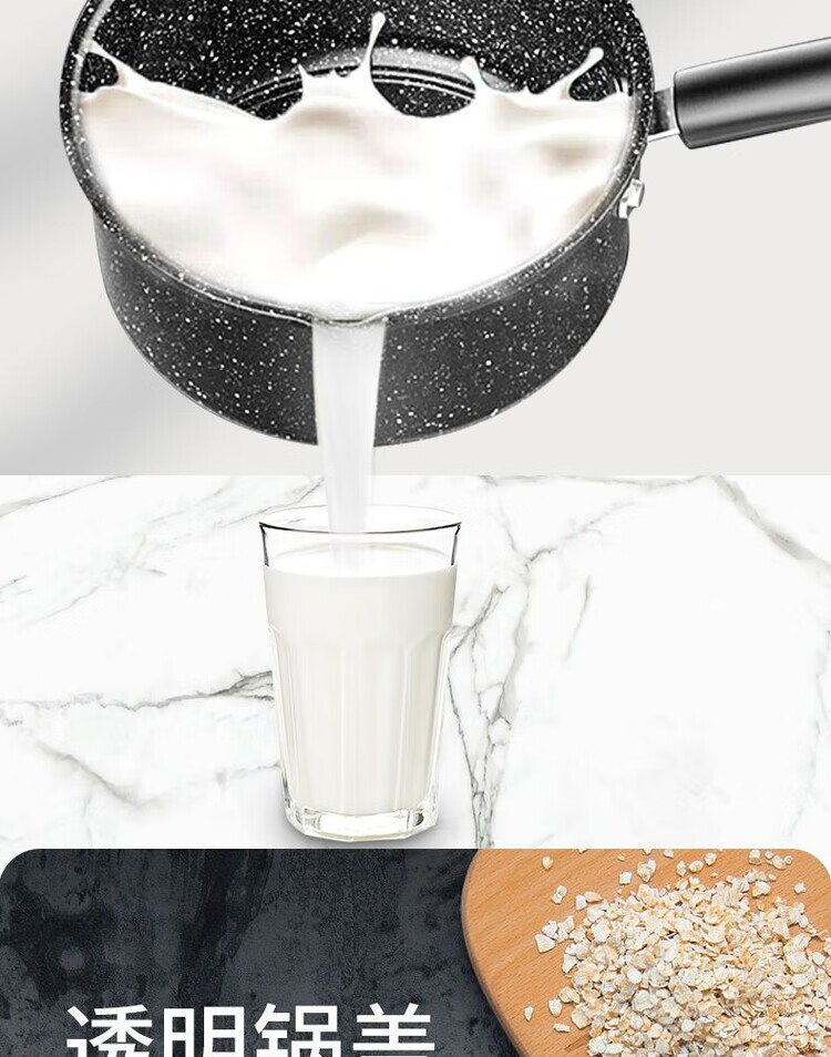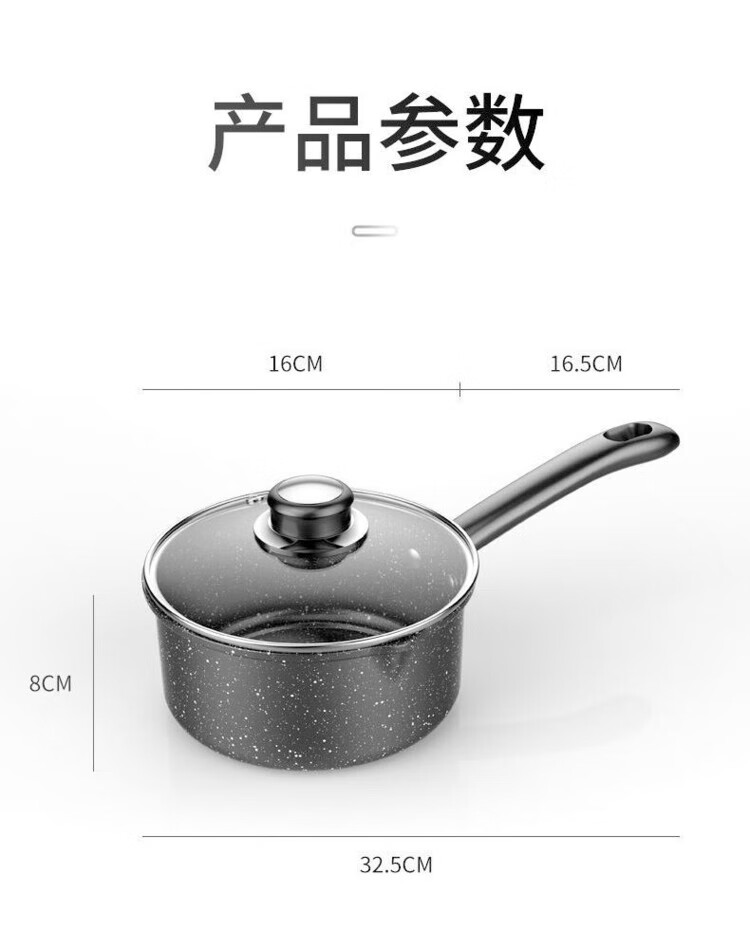 花沐禧雪平锅小奶锅泡面锅不粘锅家用小锅麦饭石宝宝辅食锅汤锅煎煮一体 加厚款【锅】+盖】 20cm