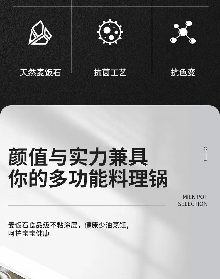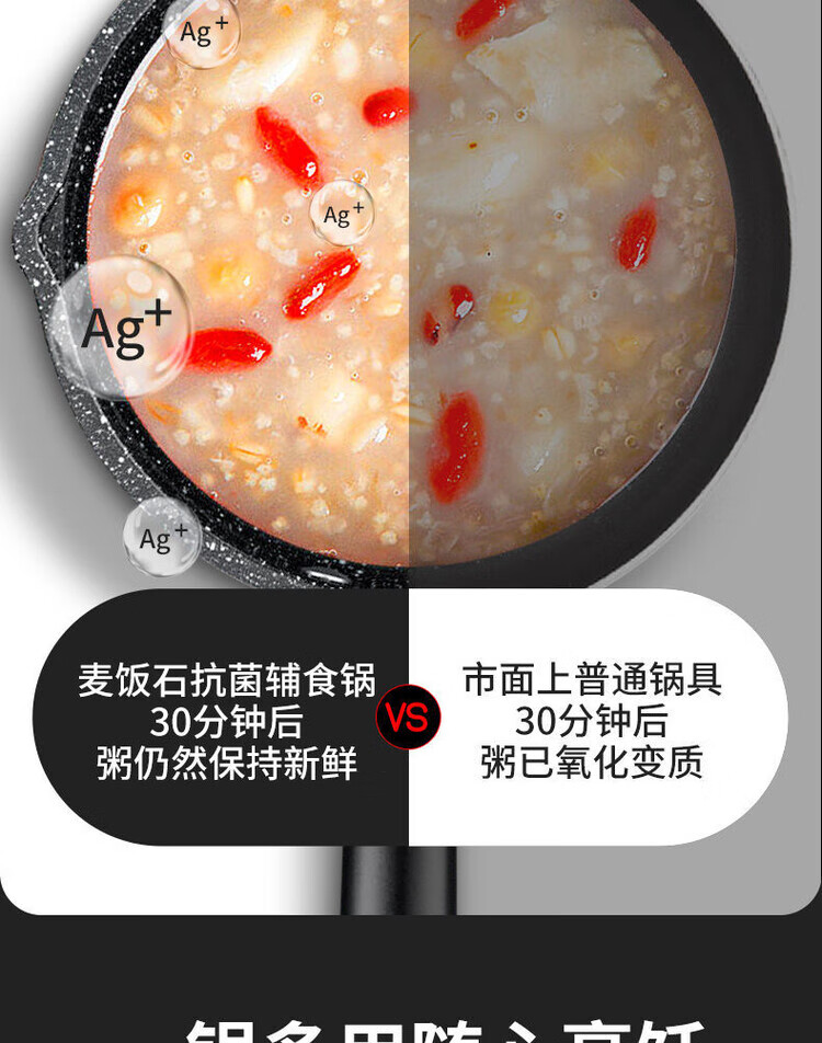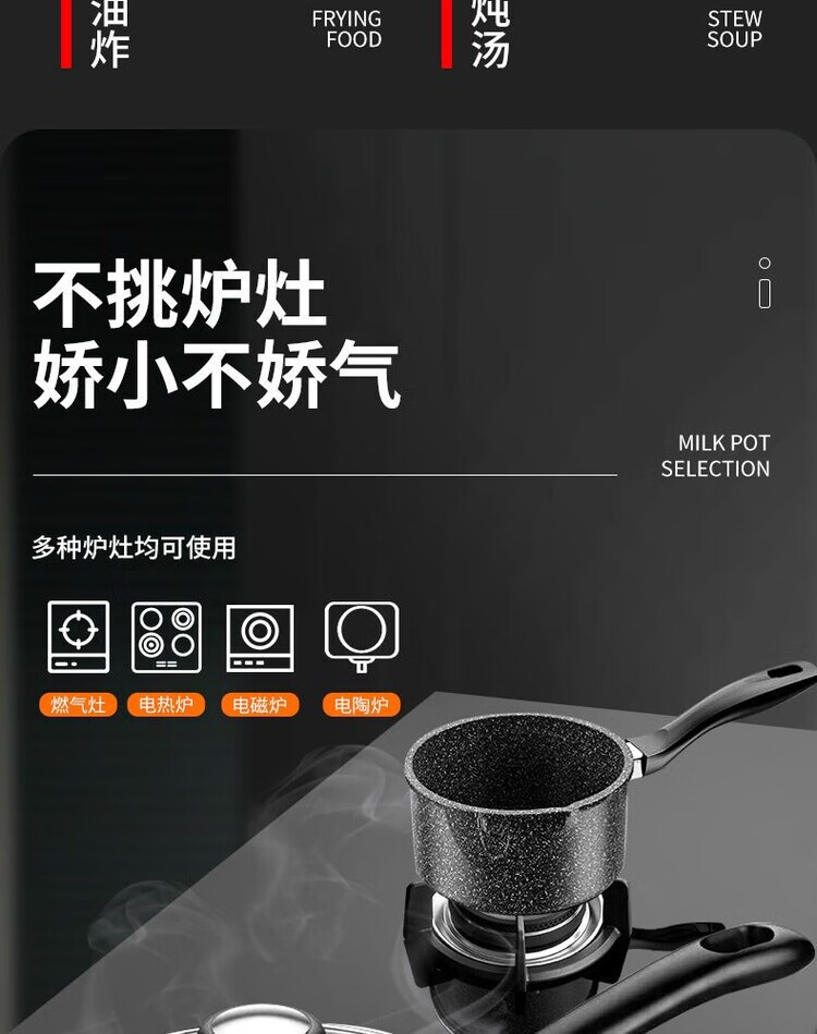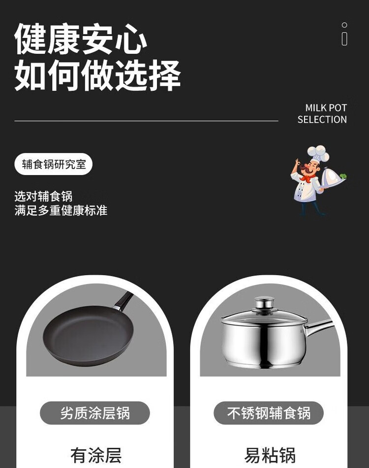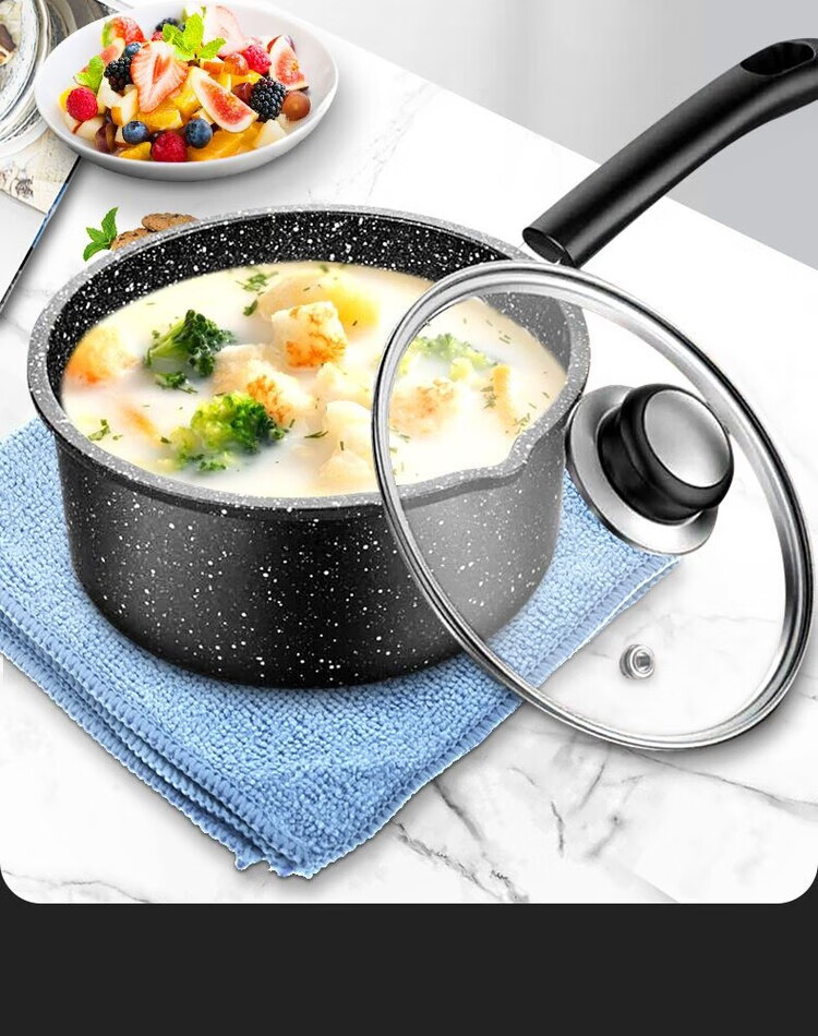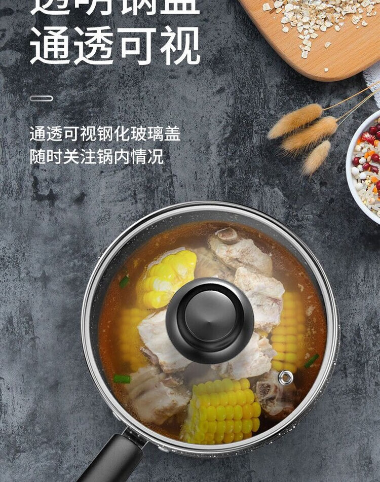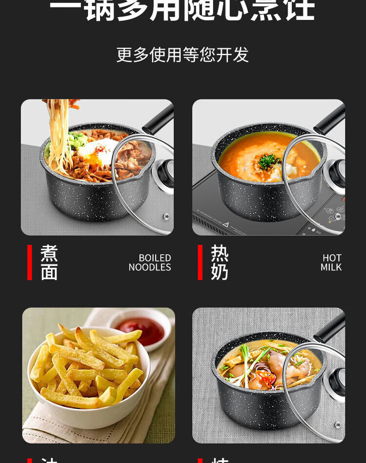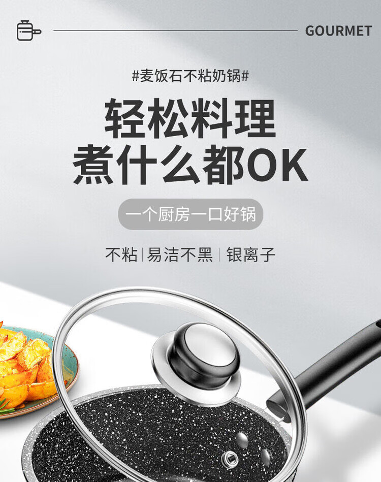 花沐禧雪平锅小奶锅泡面锅不粘锅家用小锅麦饭石宝宝辅食锅汤锅煎煮一体 加厚款【锅】+盖】 20cm