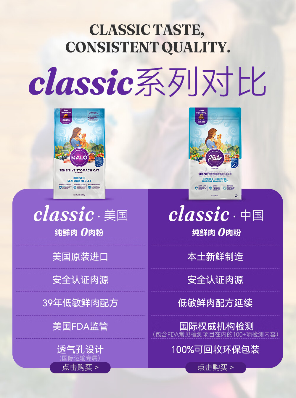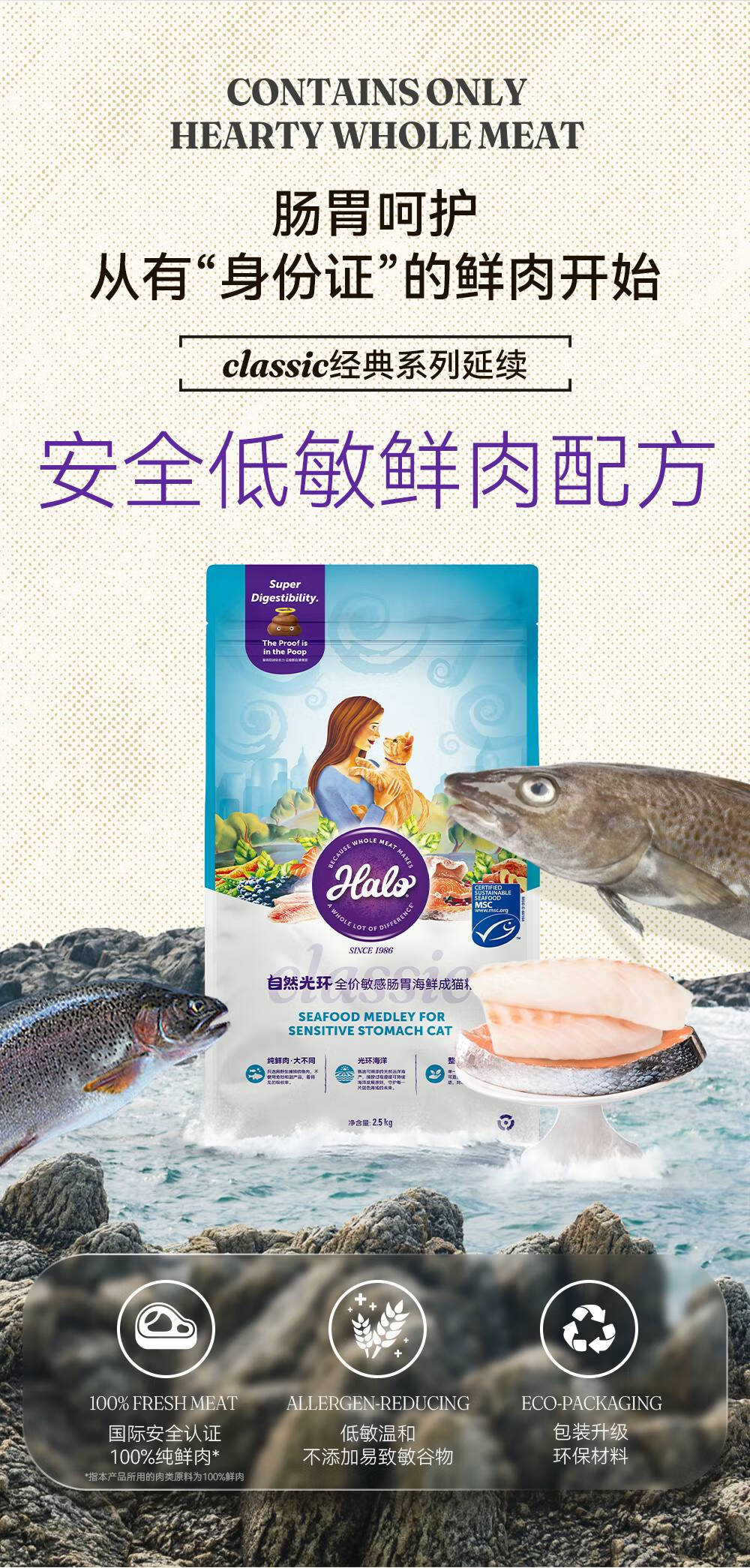 自然光环Halo猫粮【新品】敏感肠胃海鲜味 全价成猫粮 鳕鱼&三文鱼味2.5kg