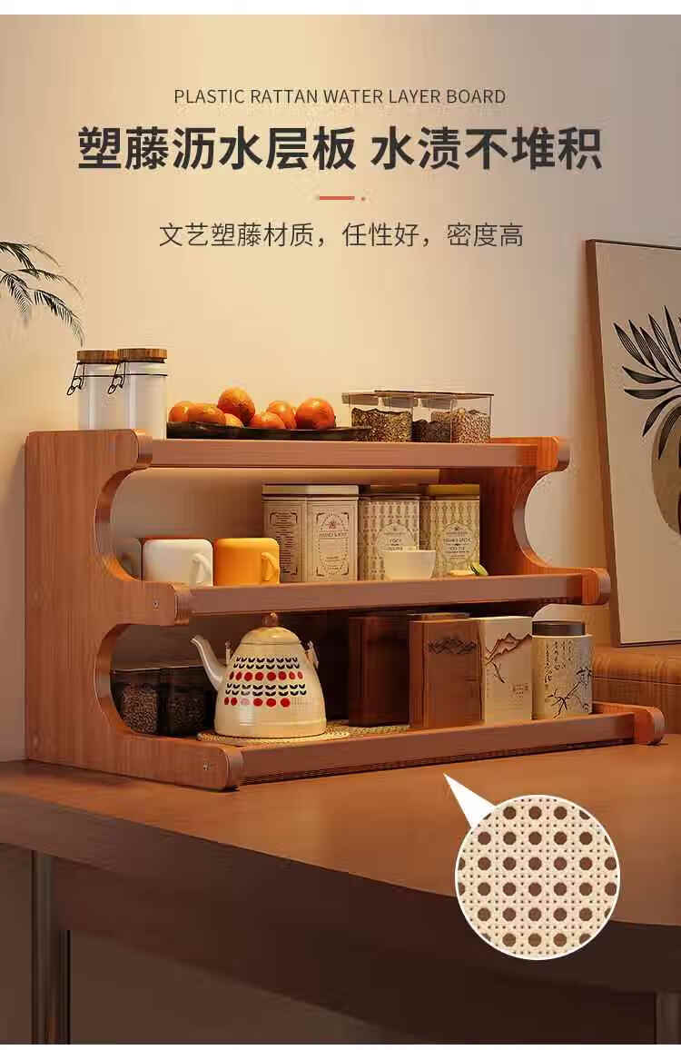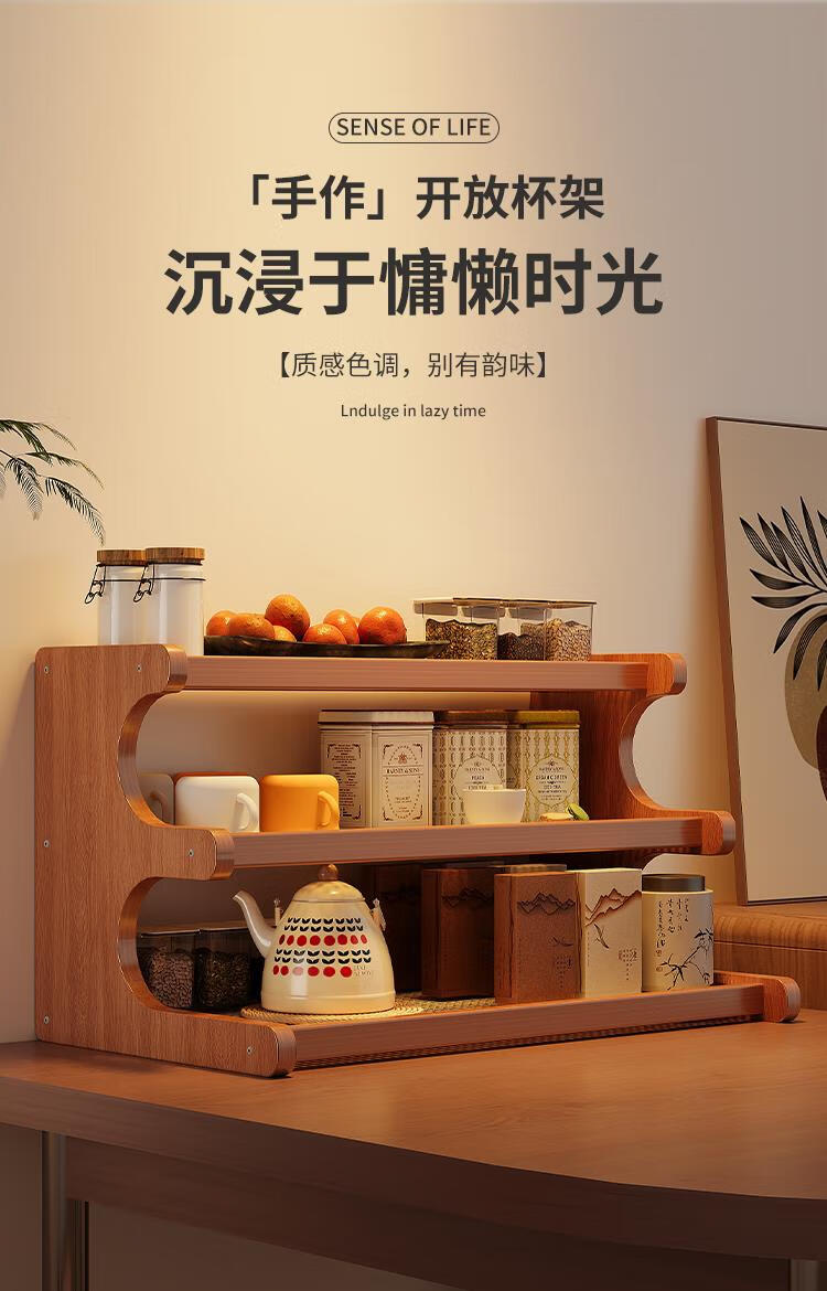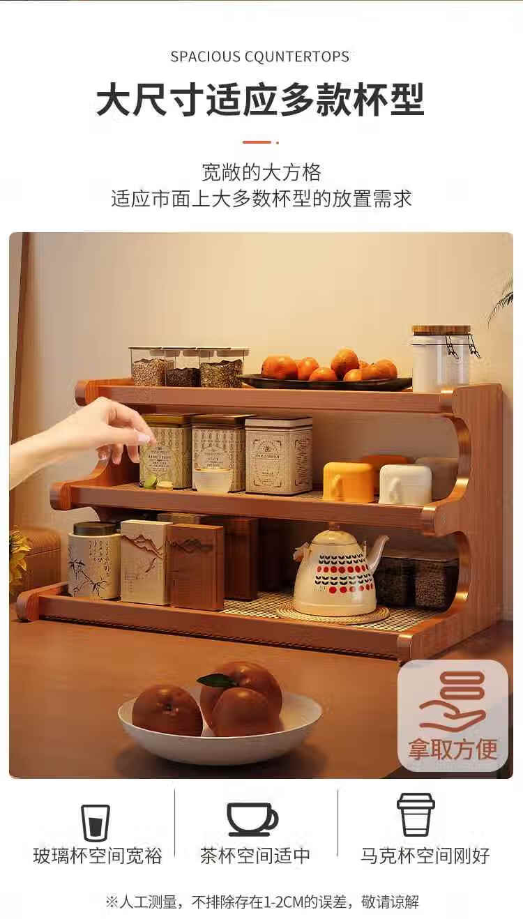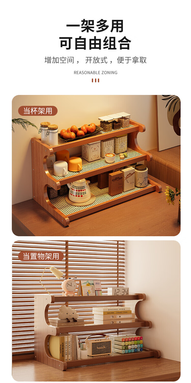 简漾杯架置物架餐桌台面杯架子桌面茶杯水杯咖啡杯茶具收纳桌上放杯子 茶色-塑藤款二层30cm长