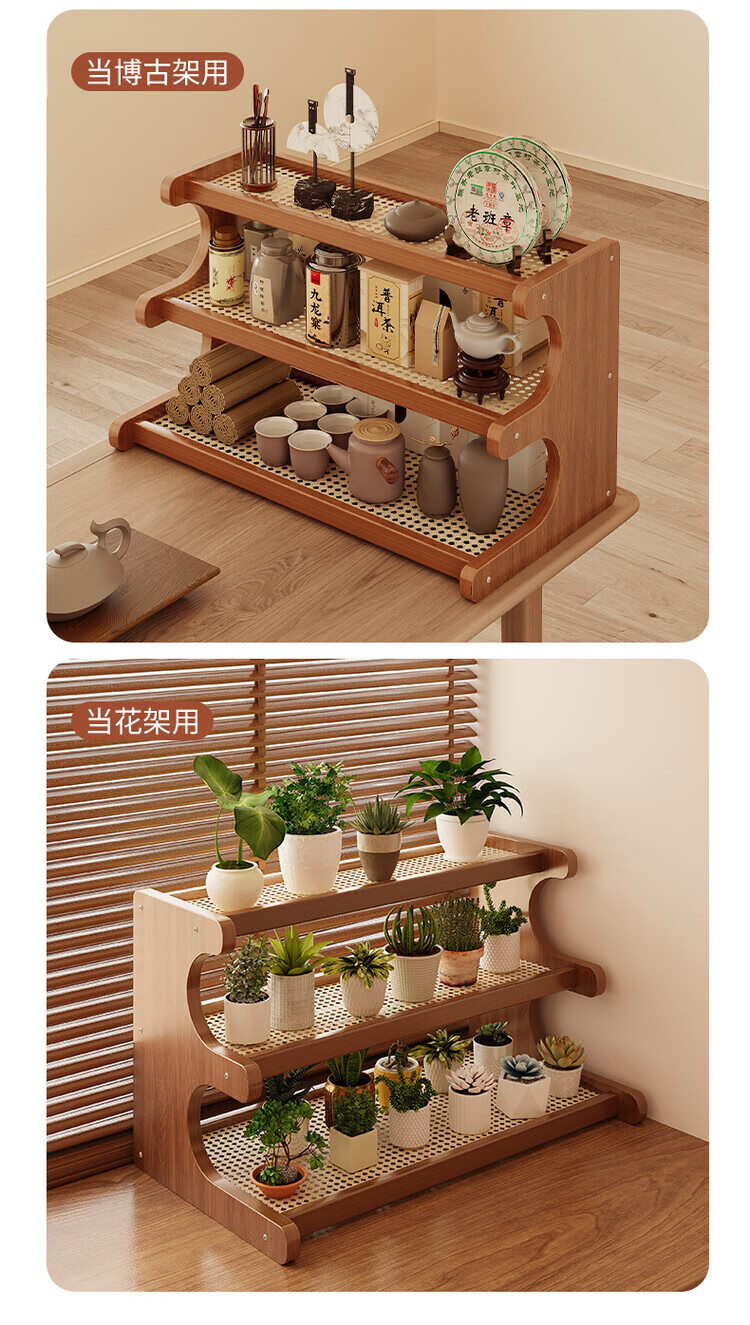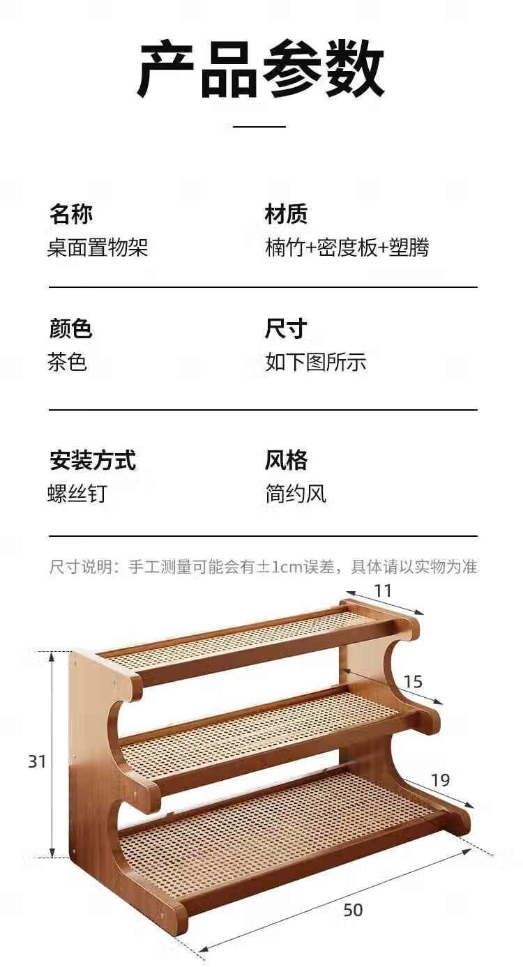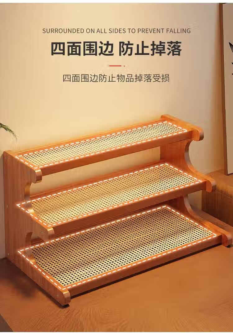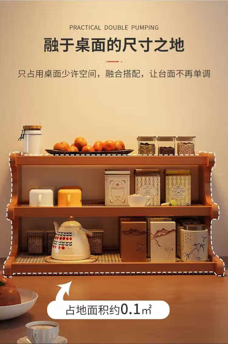 简漾杯架置物架餐桌台面杯架子桌面茶杯水杯咖啡杯茶具收纳桌上放杯子 茶色-塑藤款二层30cm长