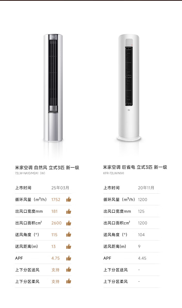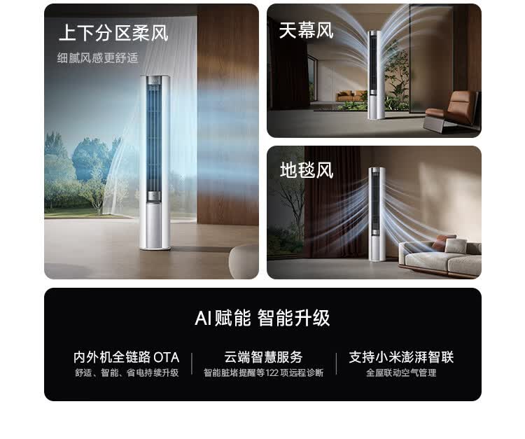 小米 米家空调 自然风 大风口 3匹柜机 新一级能效 空调柜机 72LW-NA10/M2A1(W) 整机十年质保