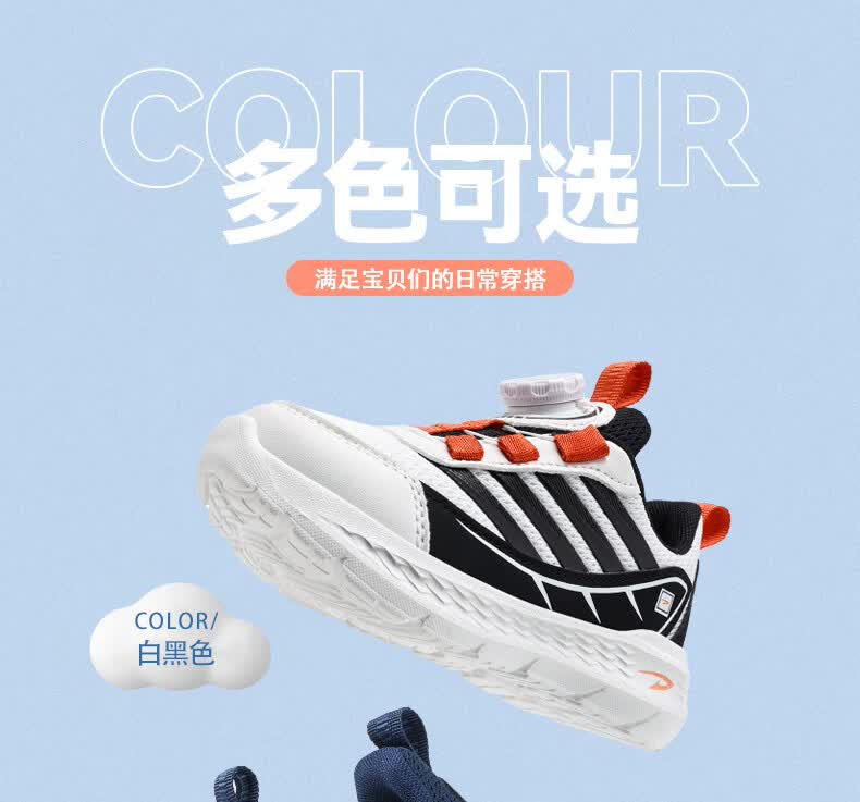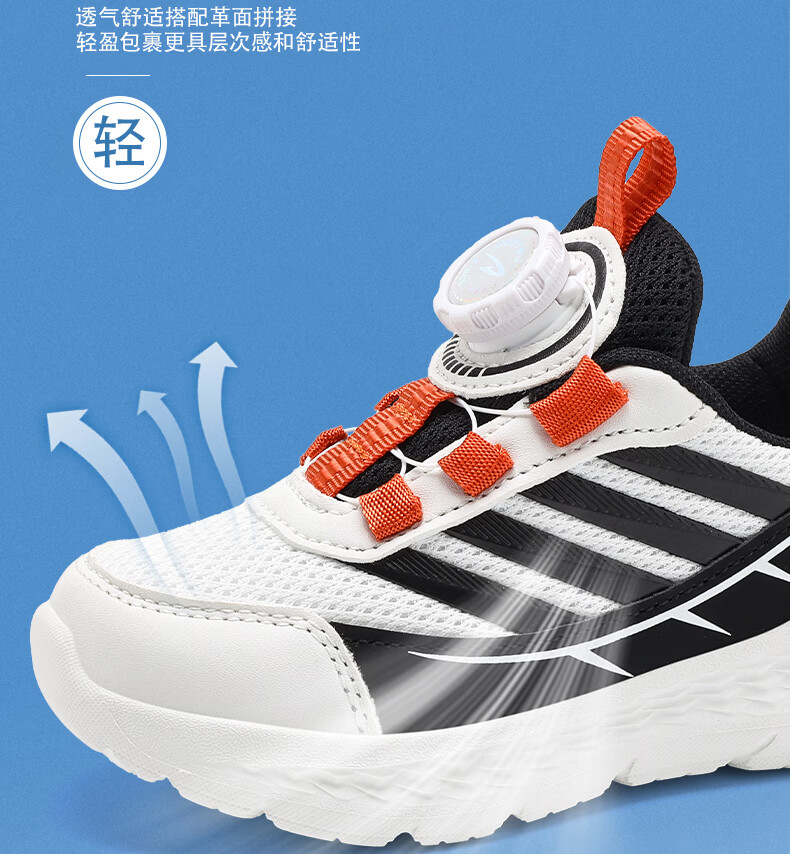 德尔惠儿童运动鞋男中大童26款春夏款女童跑步鞋子网面透气板鞋轻便 D2606白黑色【四季双网】 28 内长17.8/脚16.8