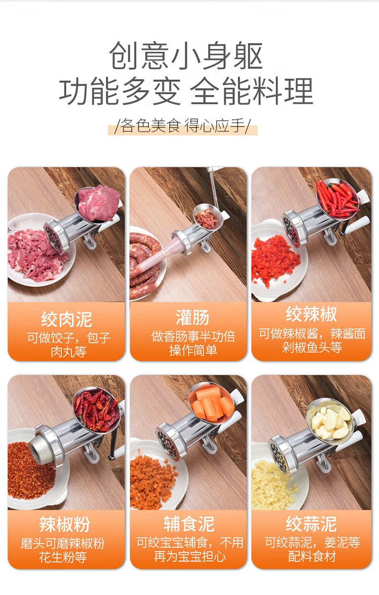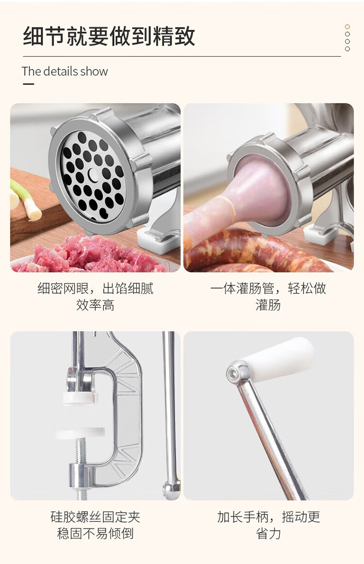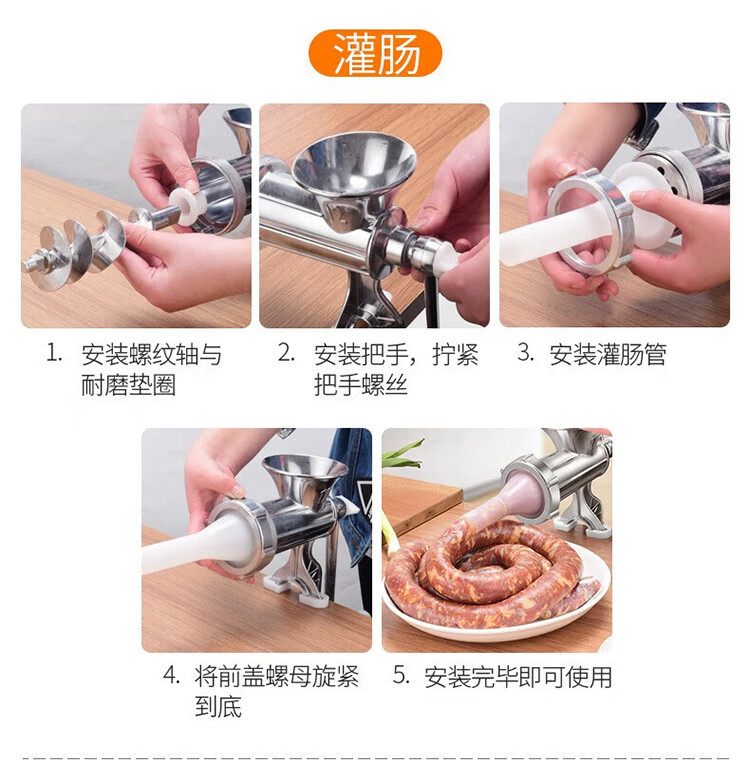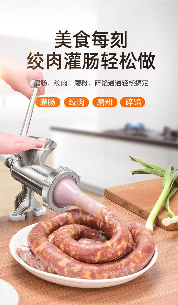 筏芯德国灌香肠器家用香肠机灌肠机手动绞肉神器肠衣工具装罐腊肠机器 加大加厚12号豪华款【绞肉/灌肠/磨粉】