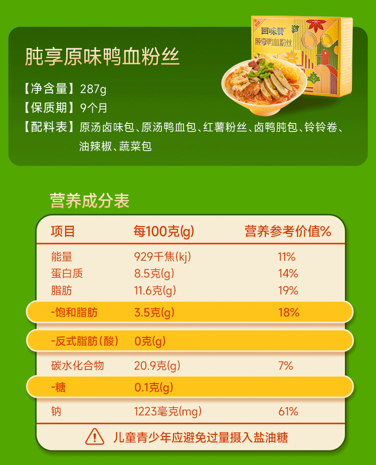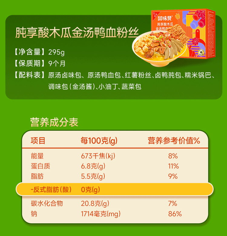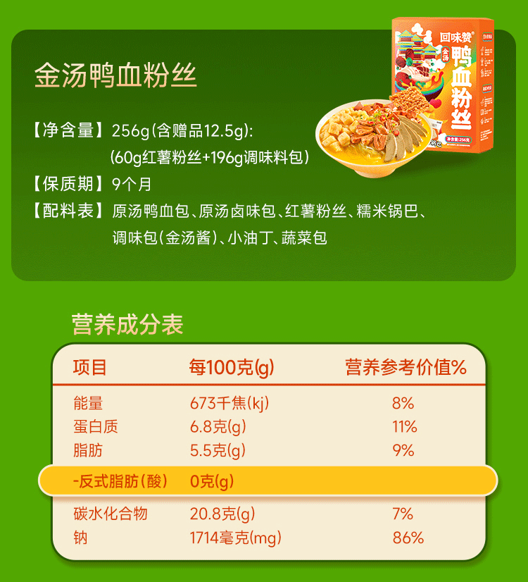 回味赞鸭血粉丝汤256g正宗夜宵特产速食米线炒米粉南京美食 原味6盒